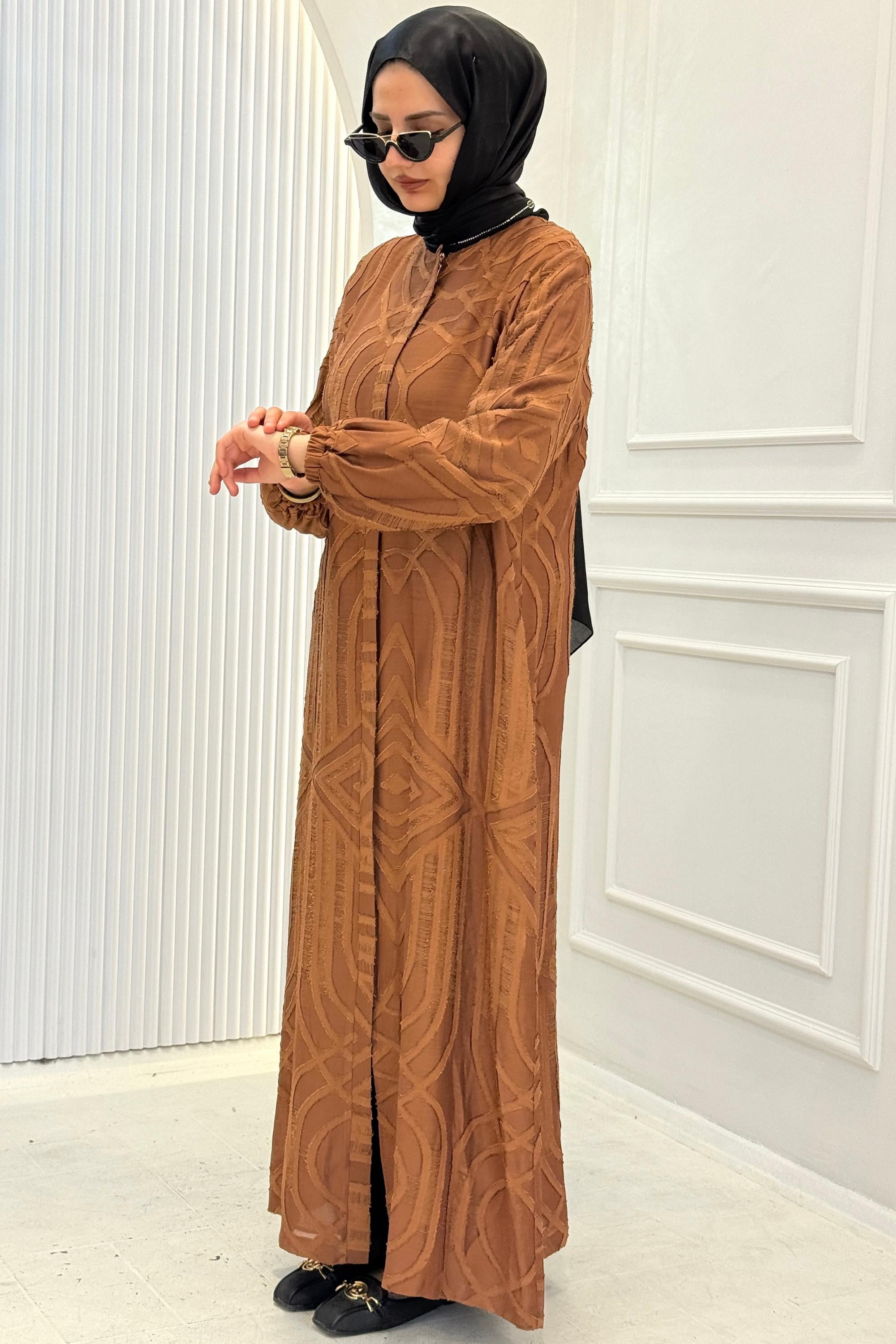 Orhan Store Büyük Beden Desenli Ferace Kahve OTW1160-1