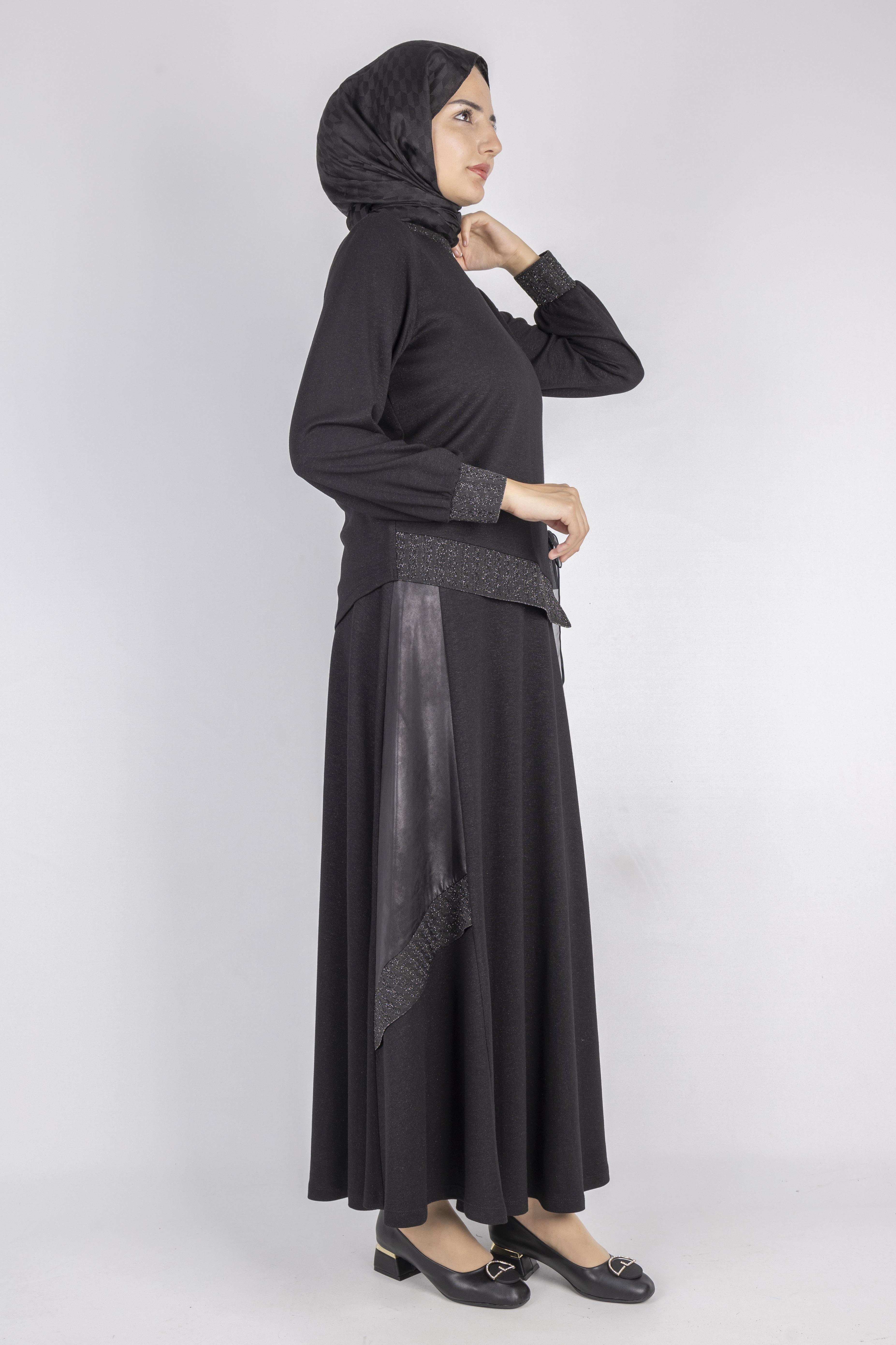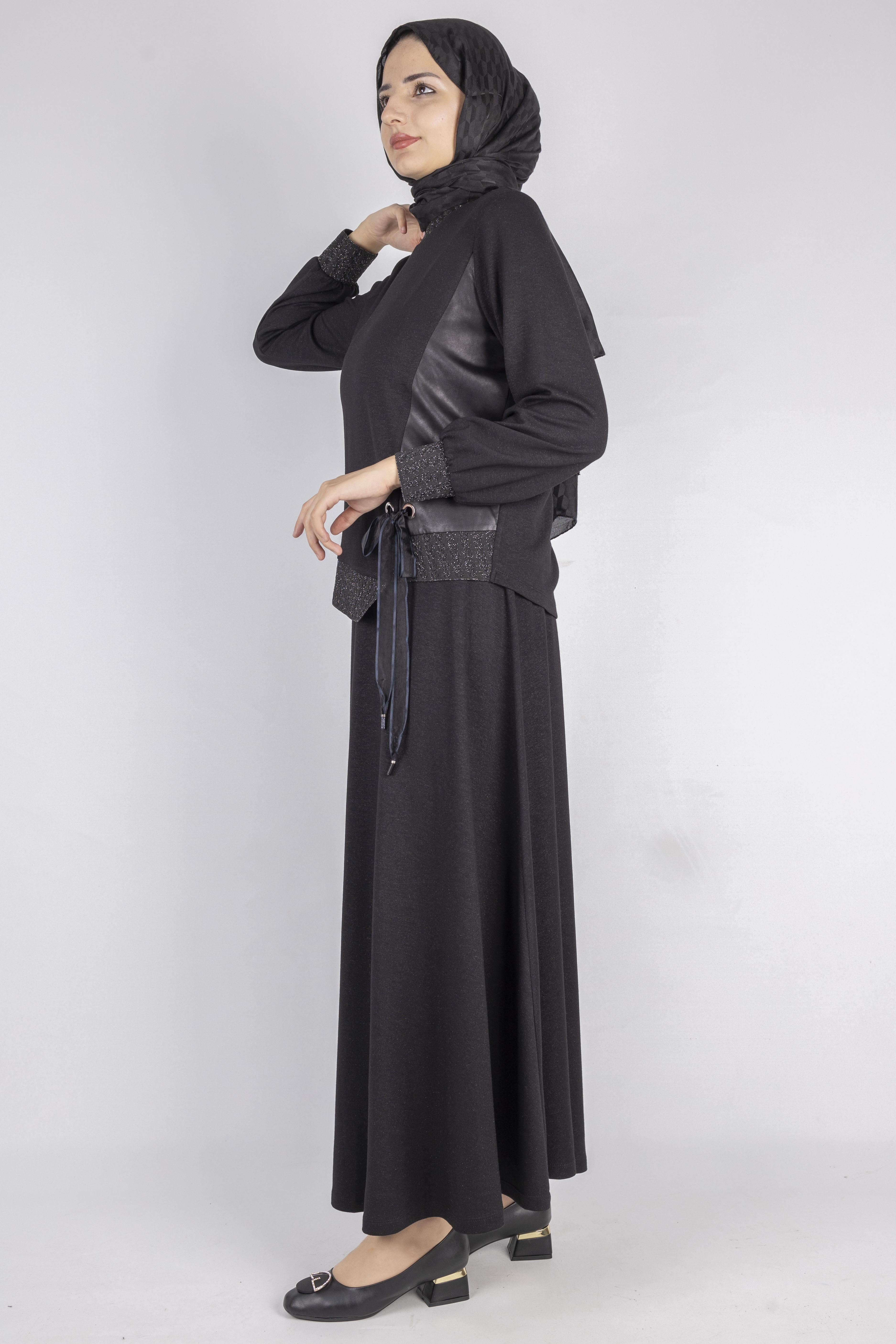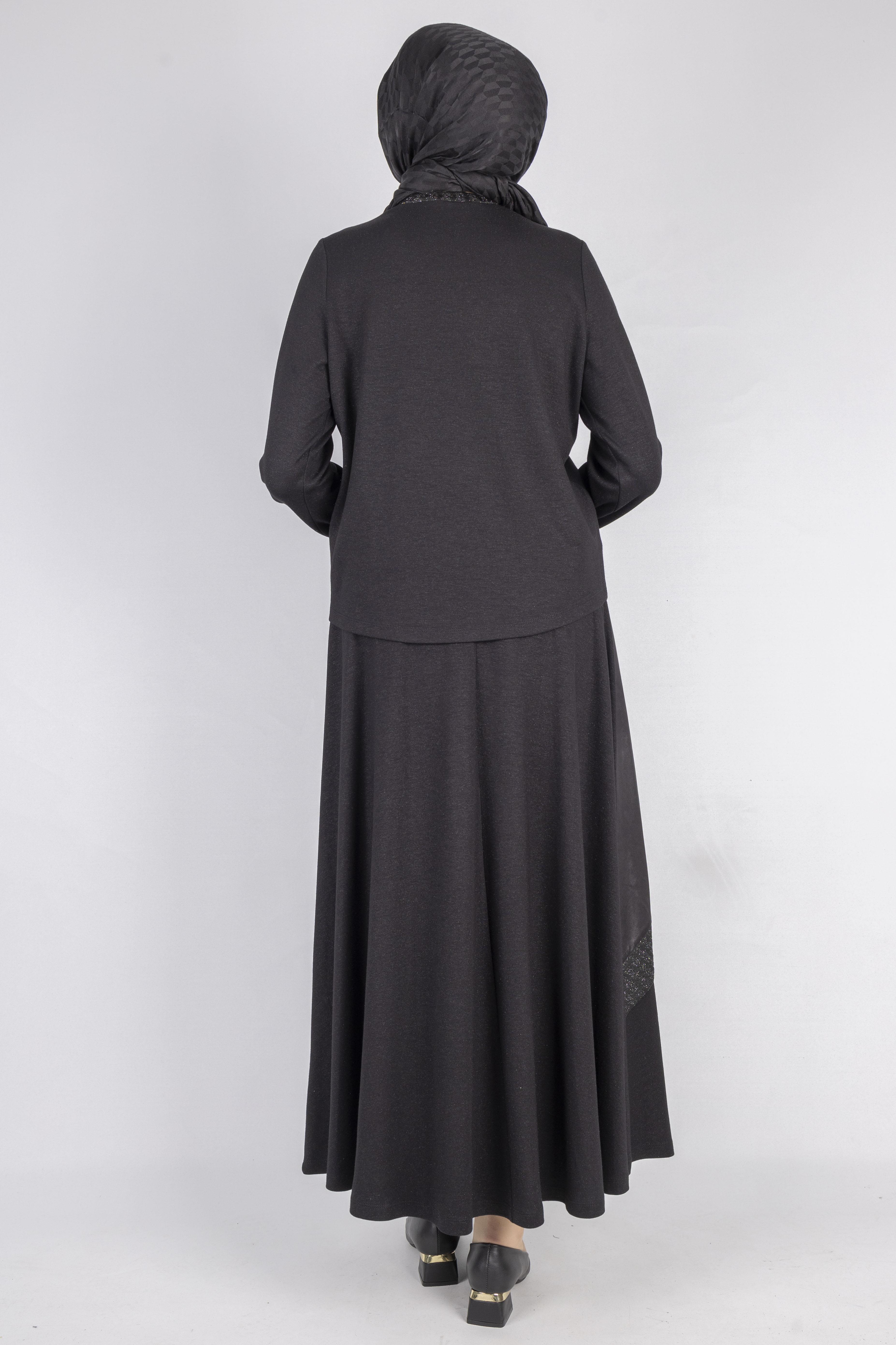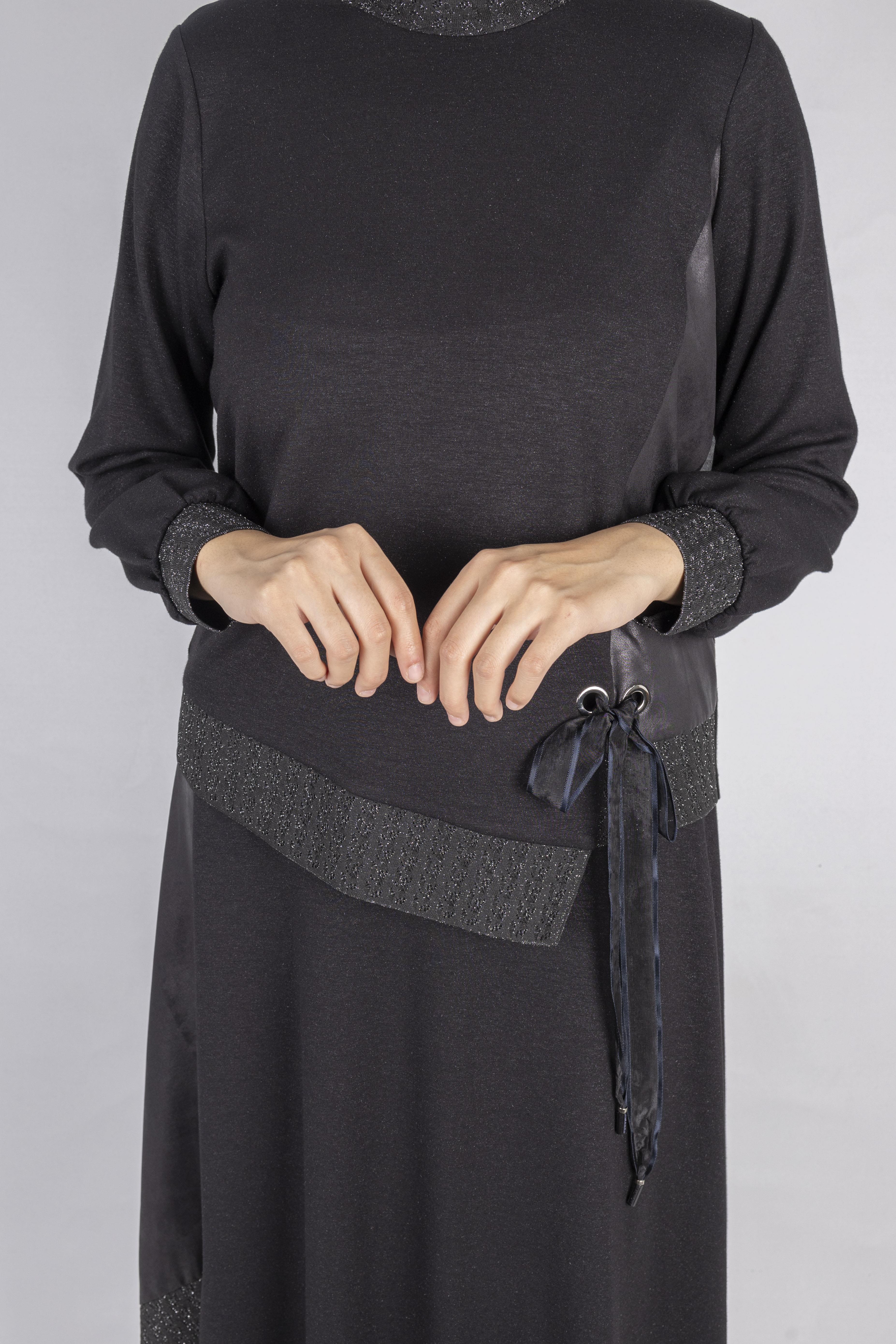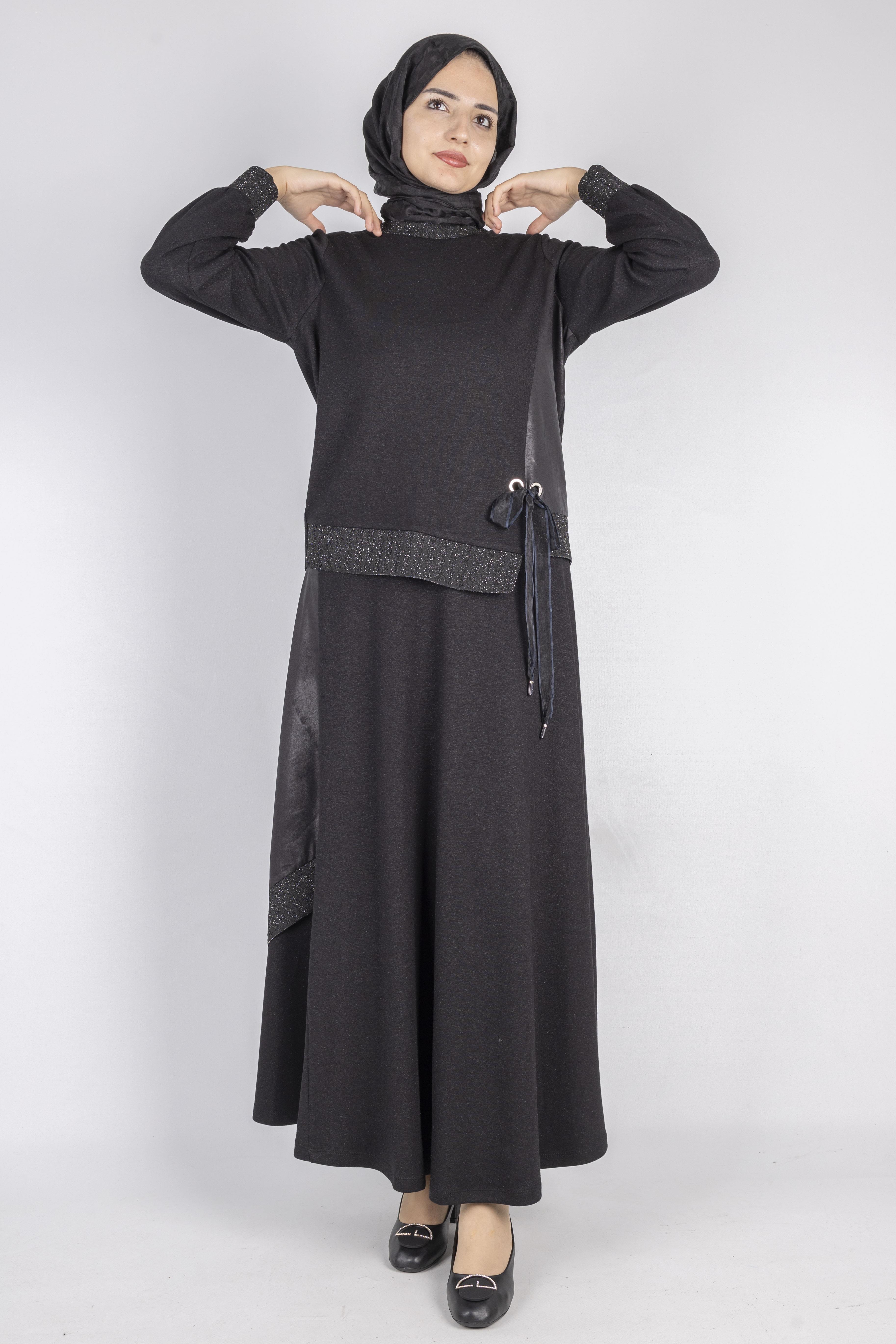 Orhan Store Bağlamalı Kurdele Detaylı Tesettür Etekli Takım Siyah OTW2644