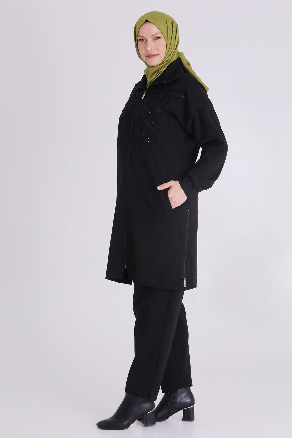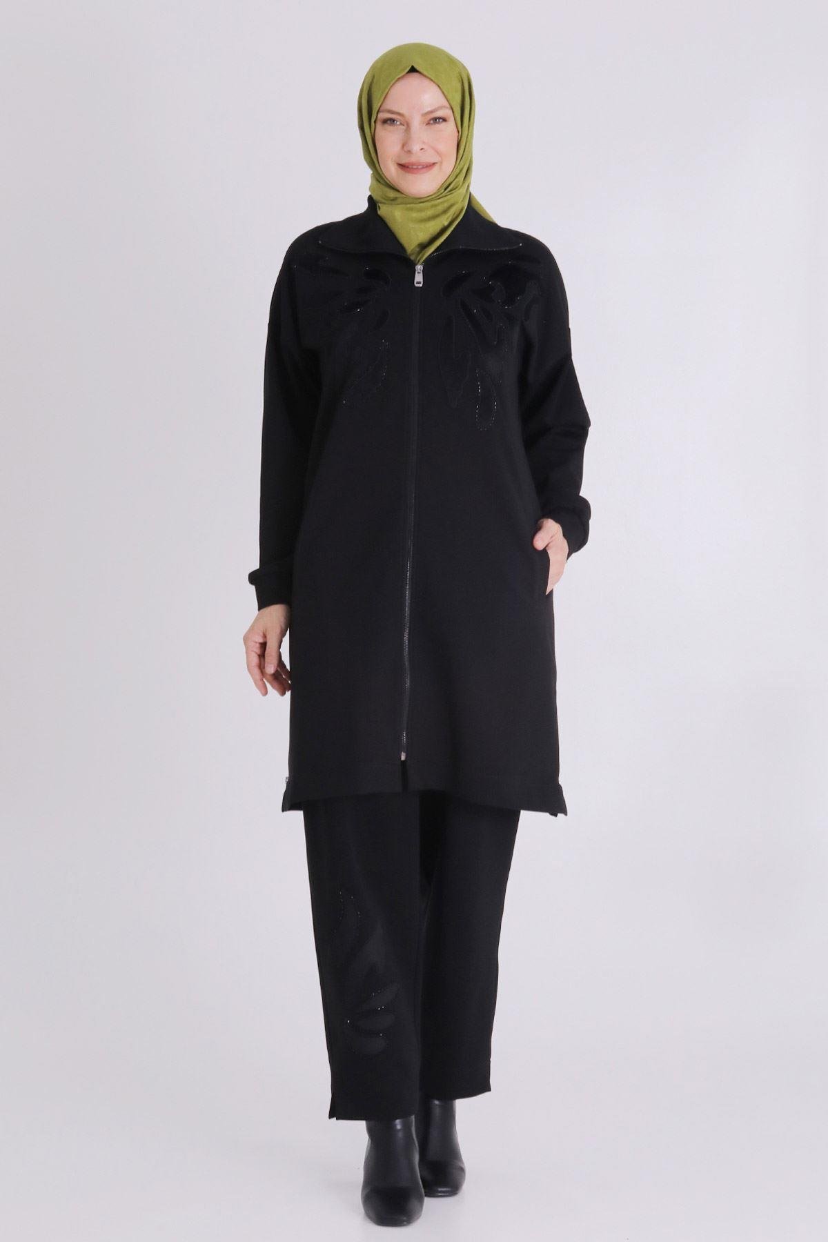 Ürün Detayları: Önden fermuarlı cepli modelimiz iki yandan fermuar ve nakış detaylıdır. Pantolon beli lastikli ve iki yandan cepli olup nakış detaylar ile hareketlendirilmiştir.