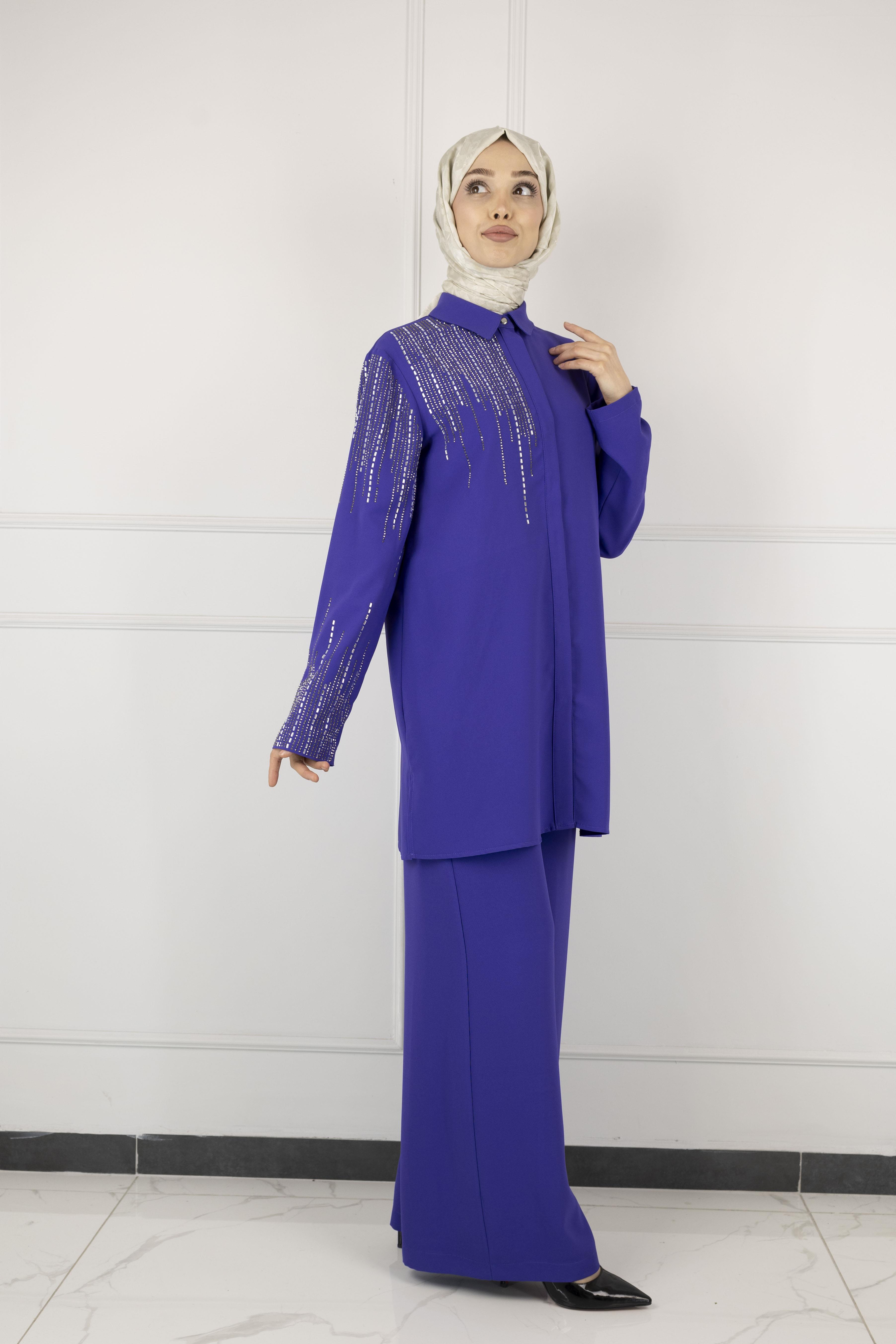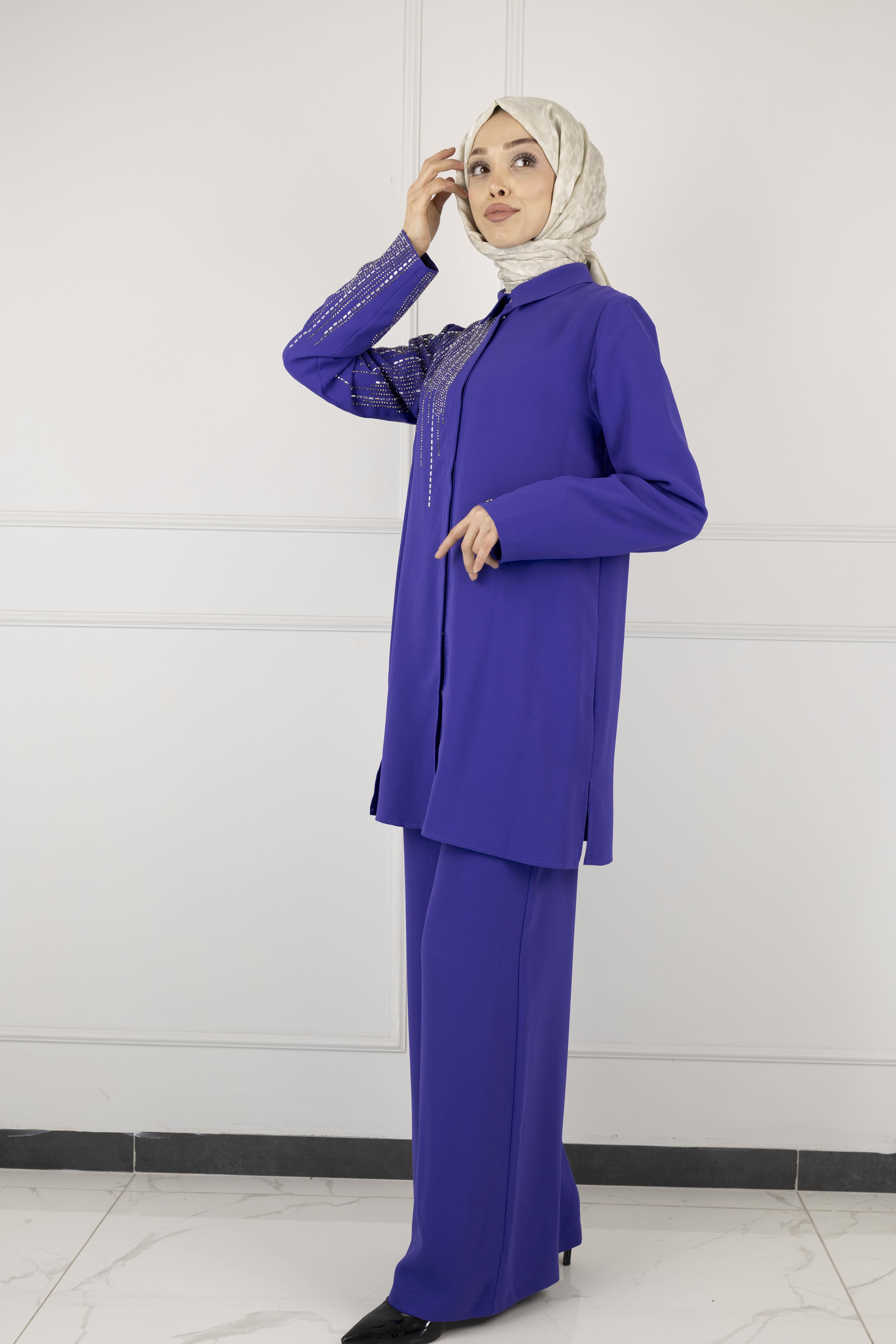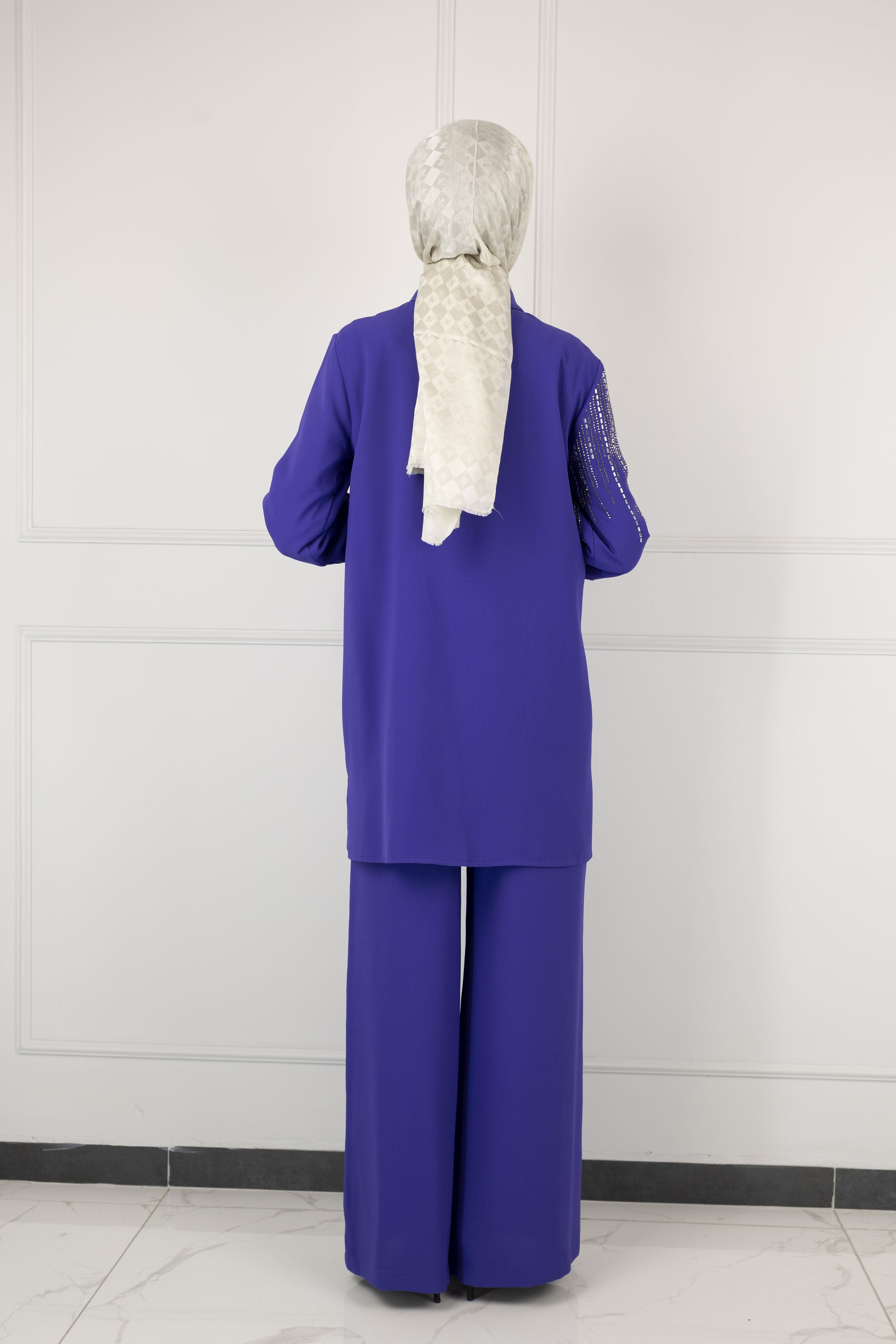 ARMİNE TAŞ DETAYLI ARMİNE PANTOLONLU TAKIM Siyah OTW602 ARMİNE TAŞ DETAYLI ARMİNE PANTOLONLU TAKIM Morcivert OTW602 ARMİNE TAŞ DETAYLI ARMİNE PANTOLONLU TAKIM Lila OTW602