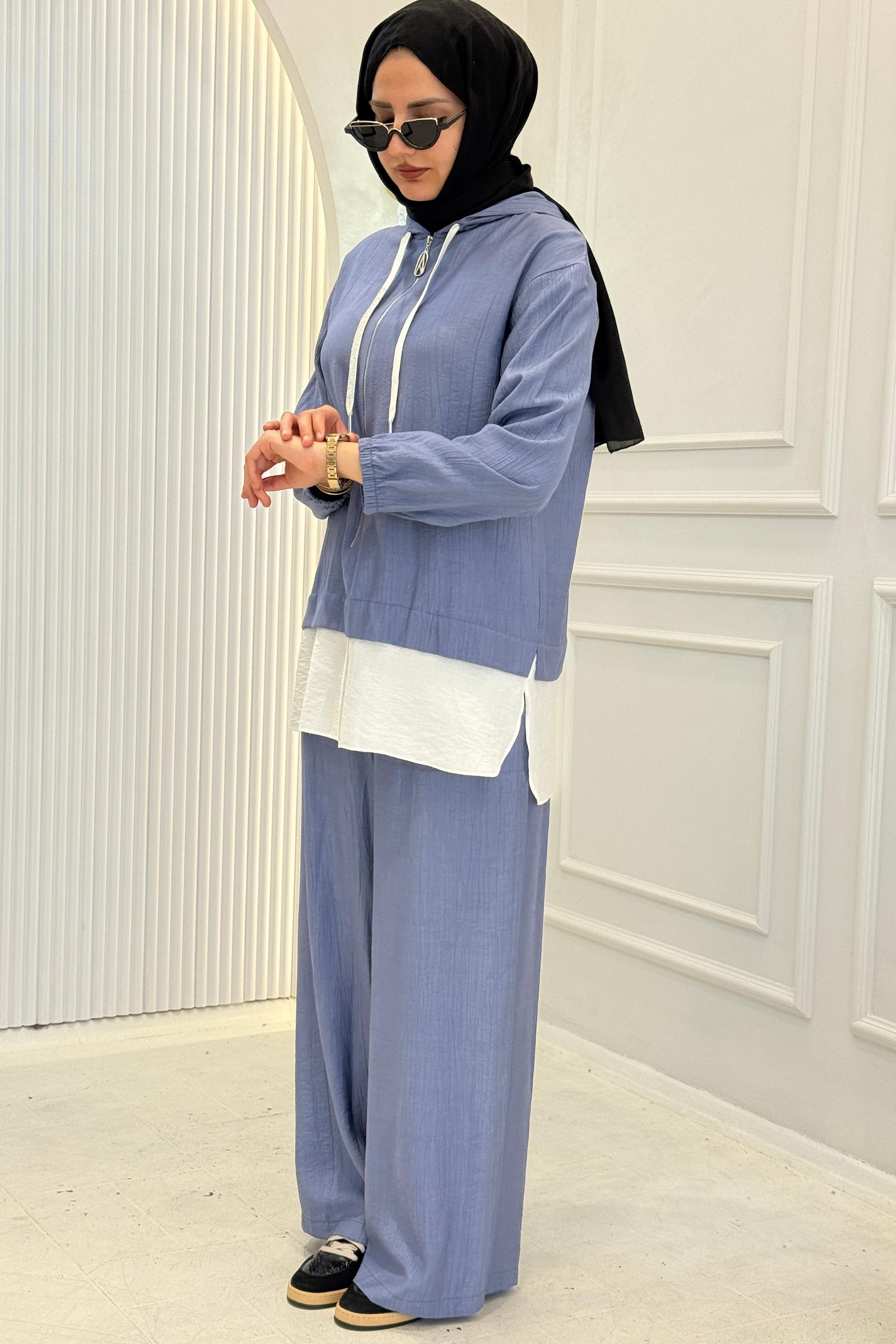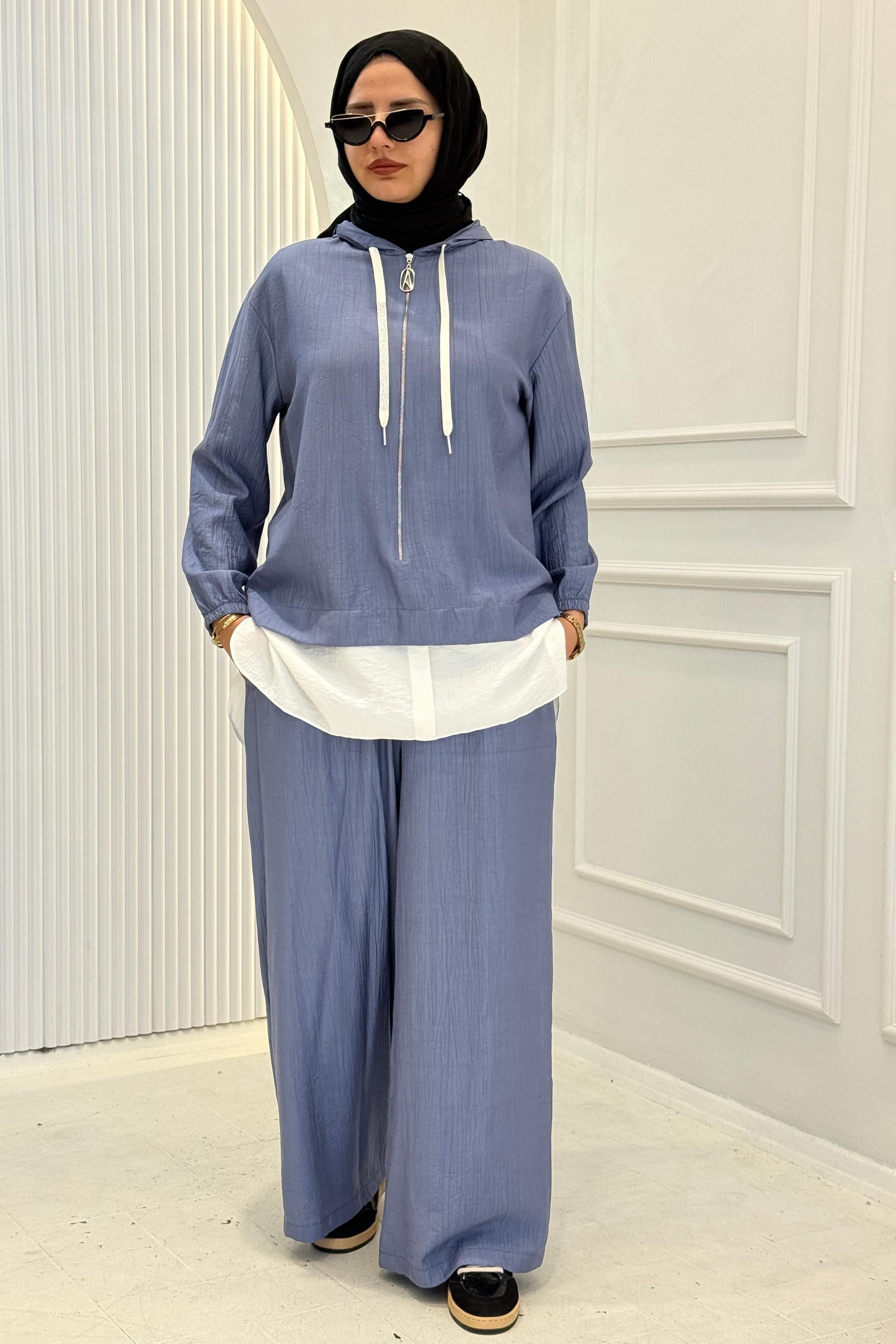 Armine Trend Fermuarlı Kapüşonlu Tesettür Takım İndigo OTW6146