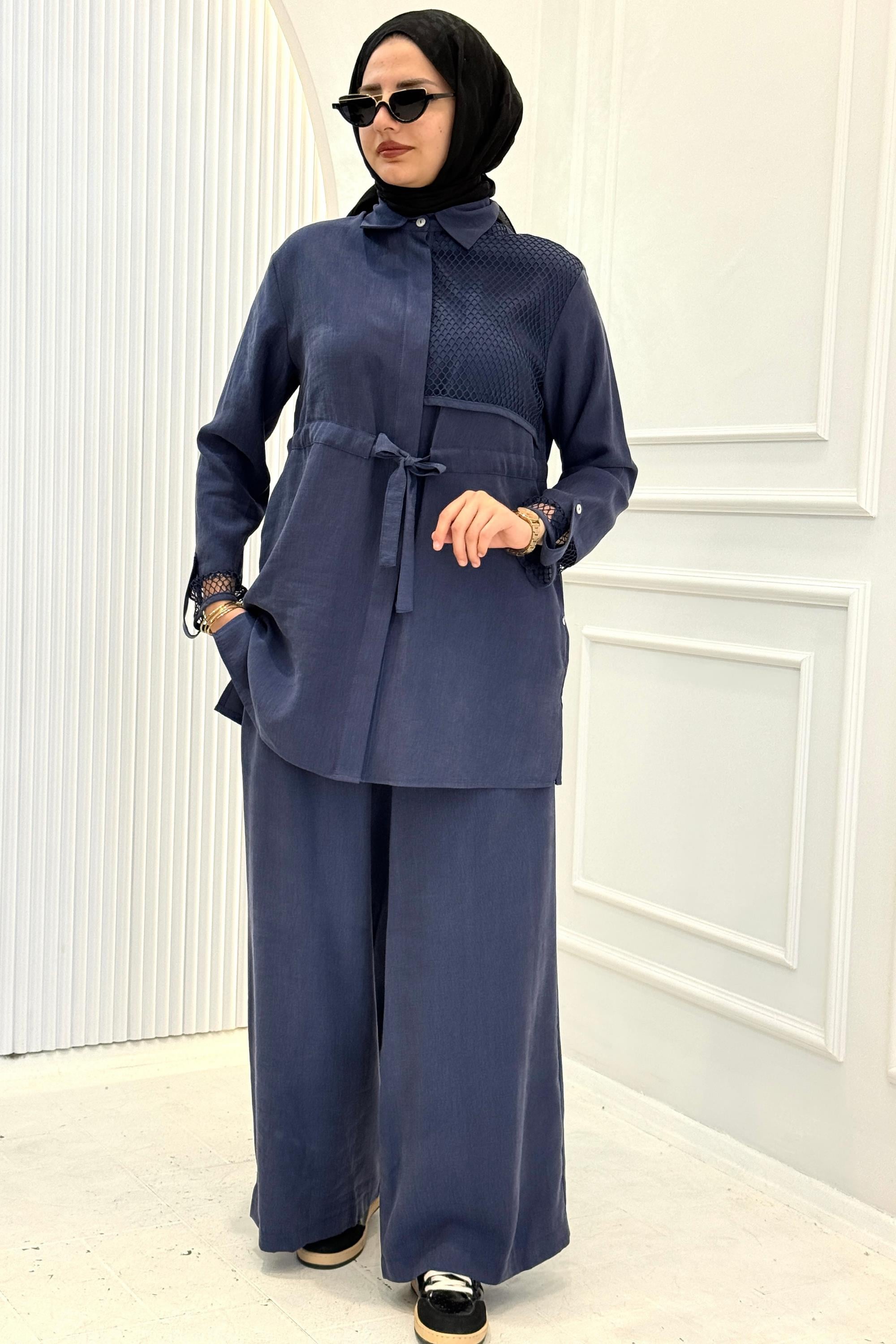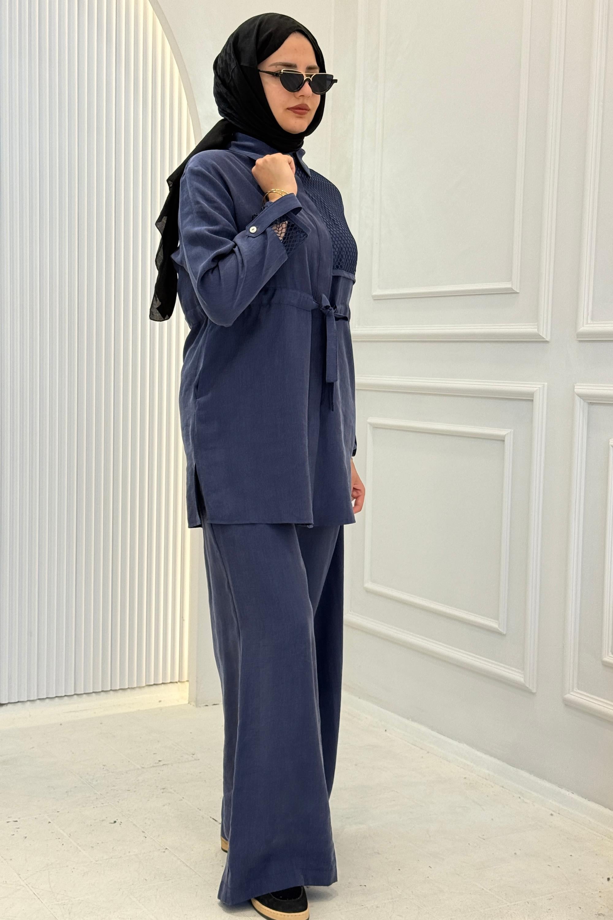 Dökümlü pantolonu ve rahat kesimi sayesinde hareket özgürlüğü sağlar.Günlük kullanımda ve şık kombinlerde rahatlıkla tercih edilebilecek kullanışlı bir takımdır.