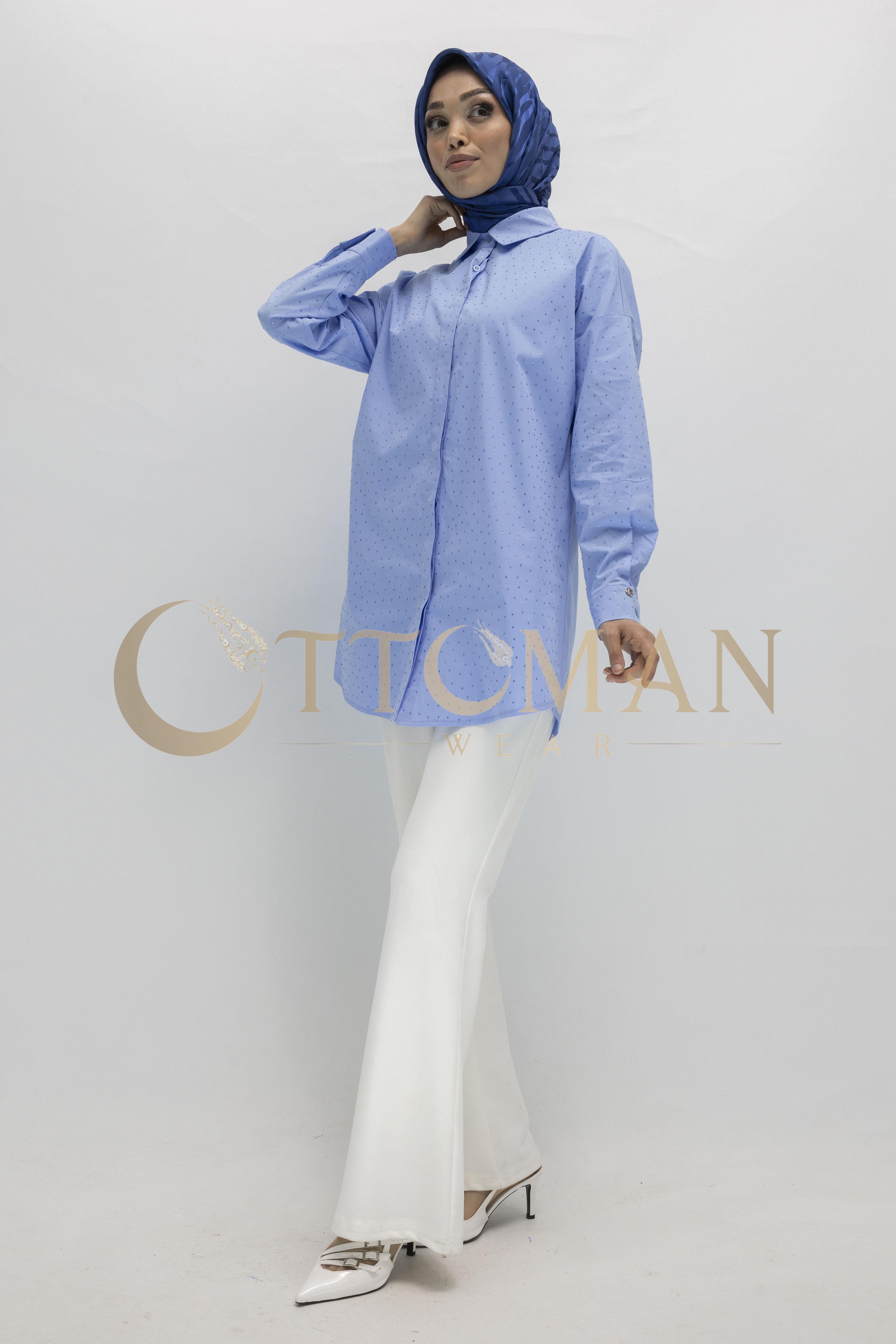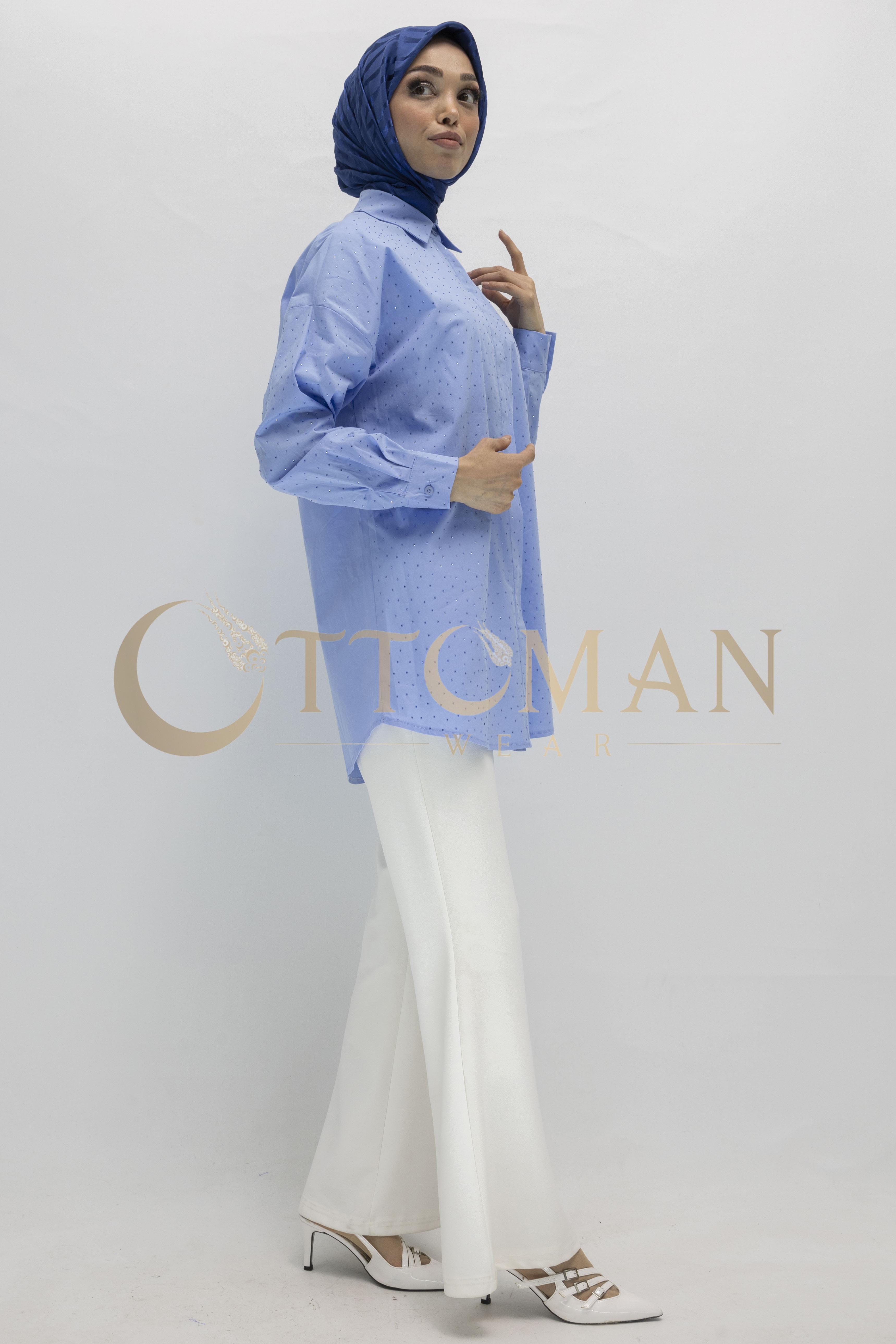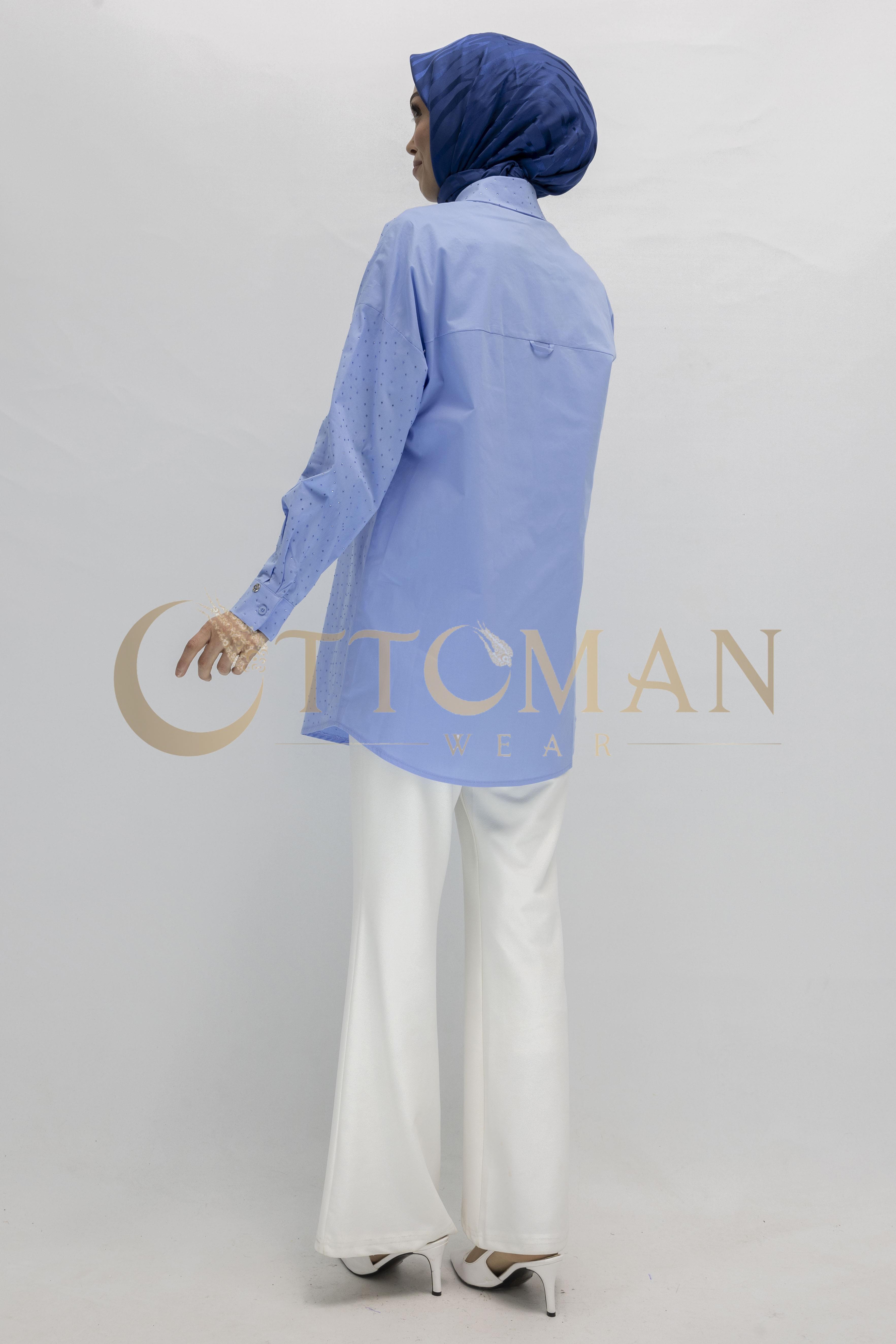 Armine Trend Taş Detaylı Gömlek Mavi OTW311