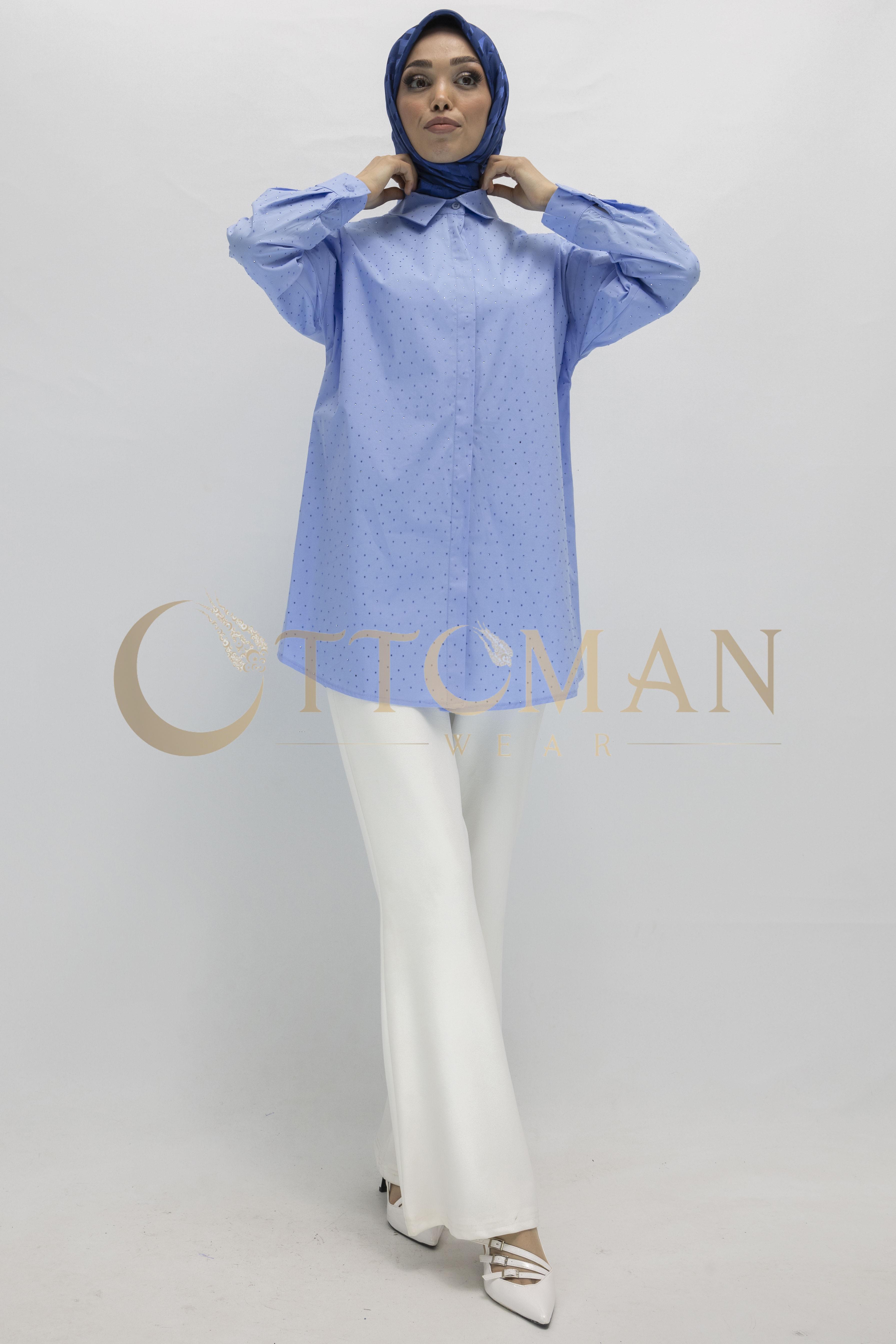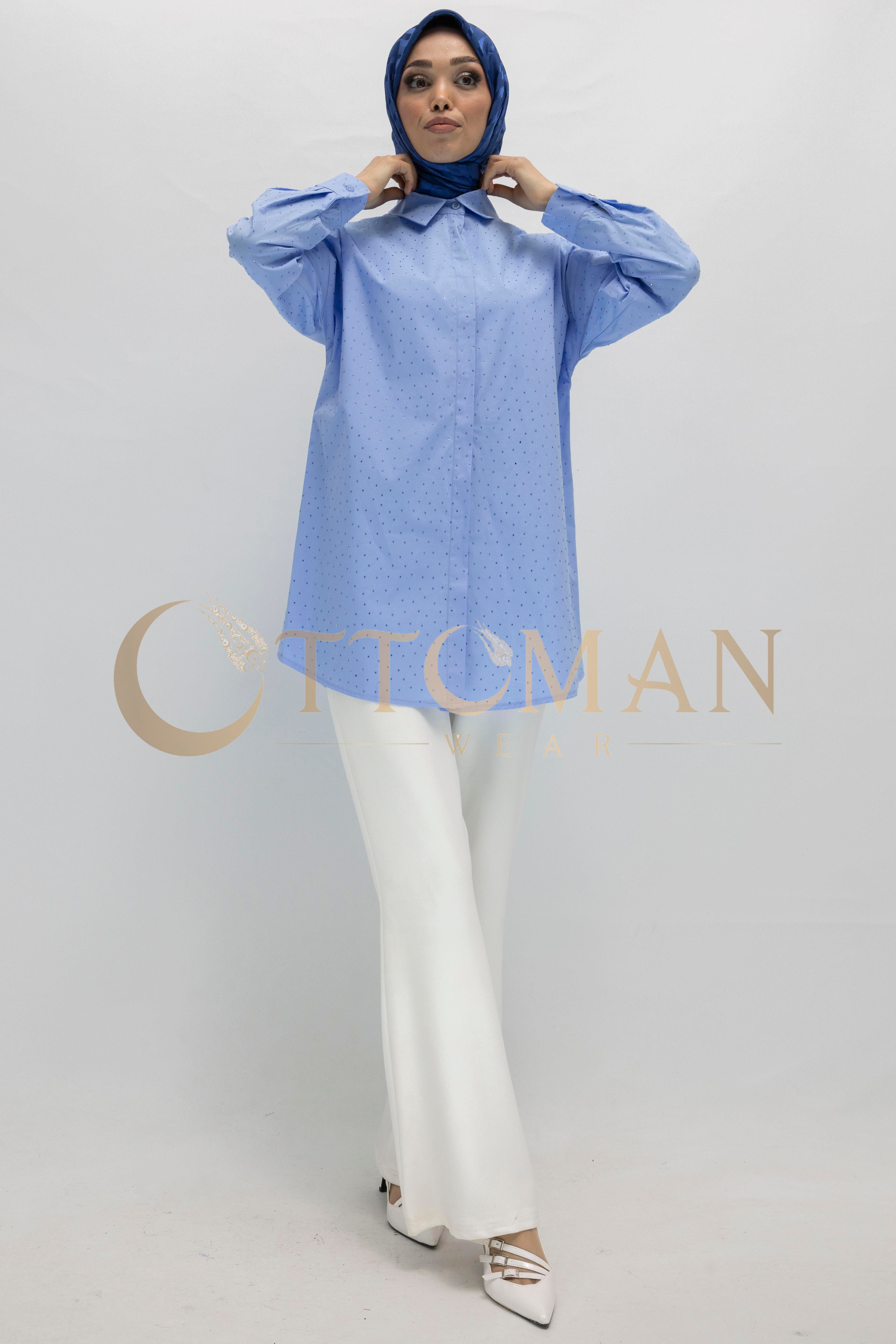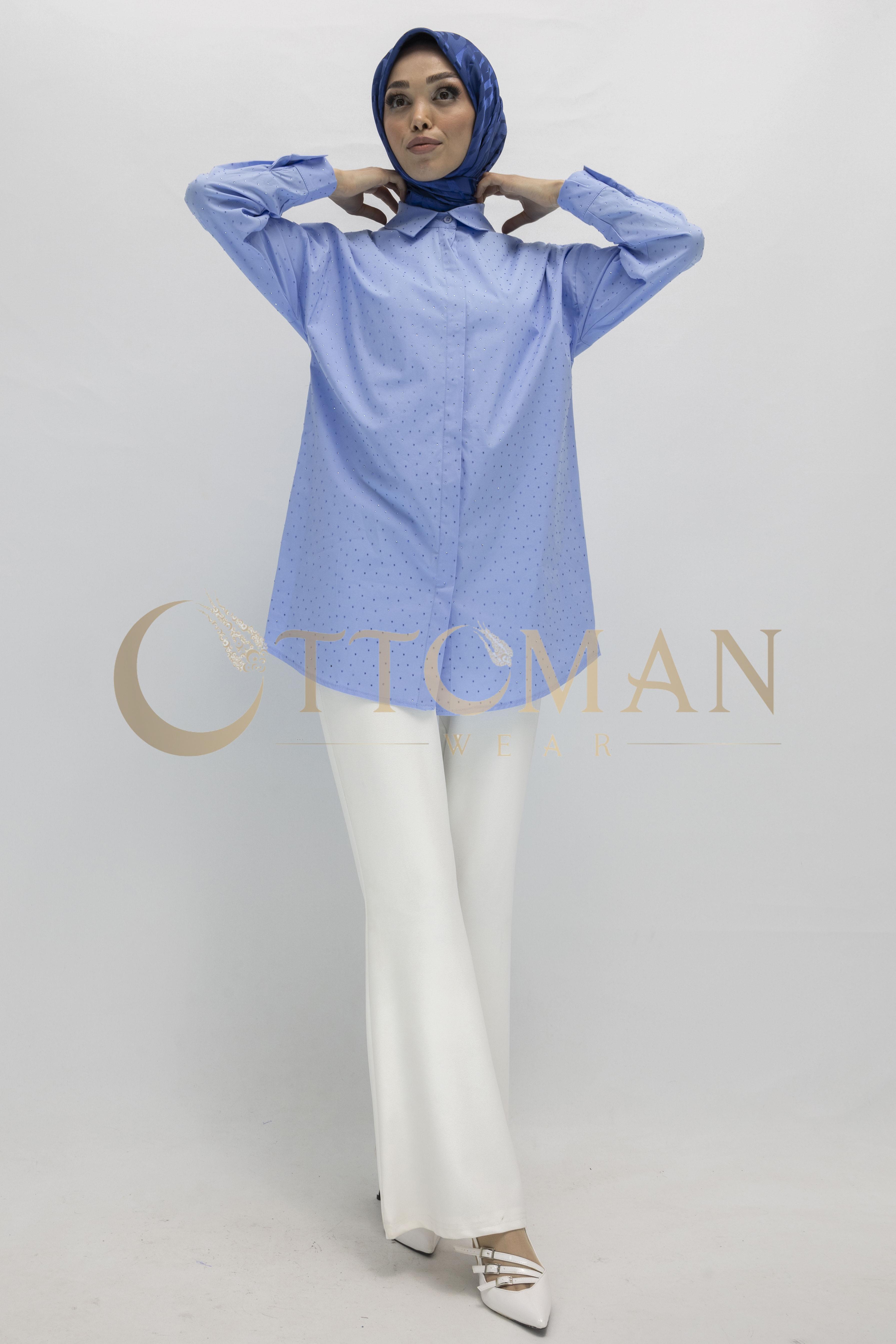 Armine Trend Taş Detaylı Gömlek Mavi OTW311
