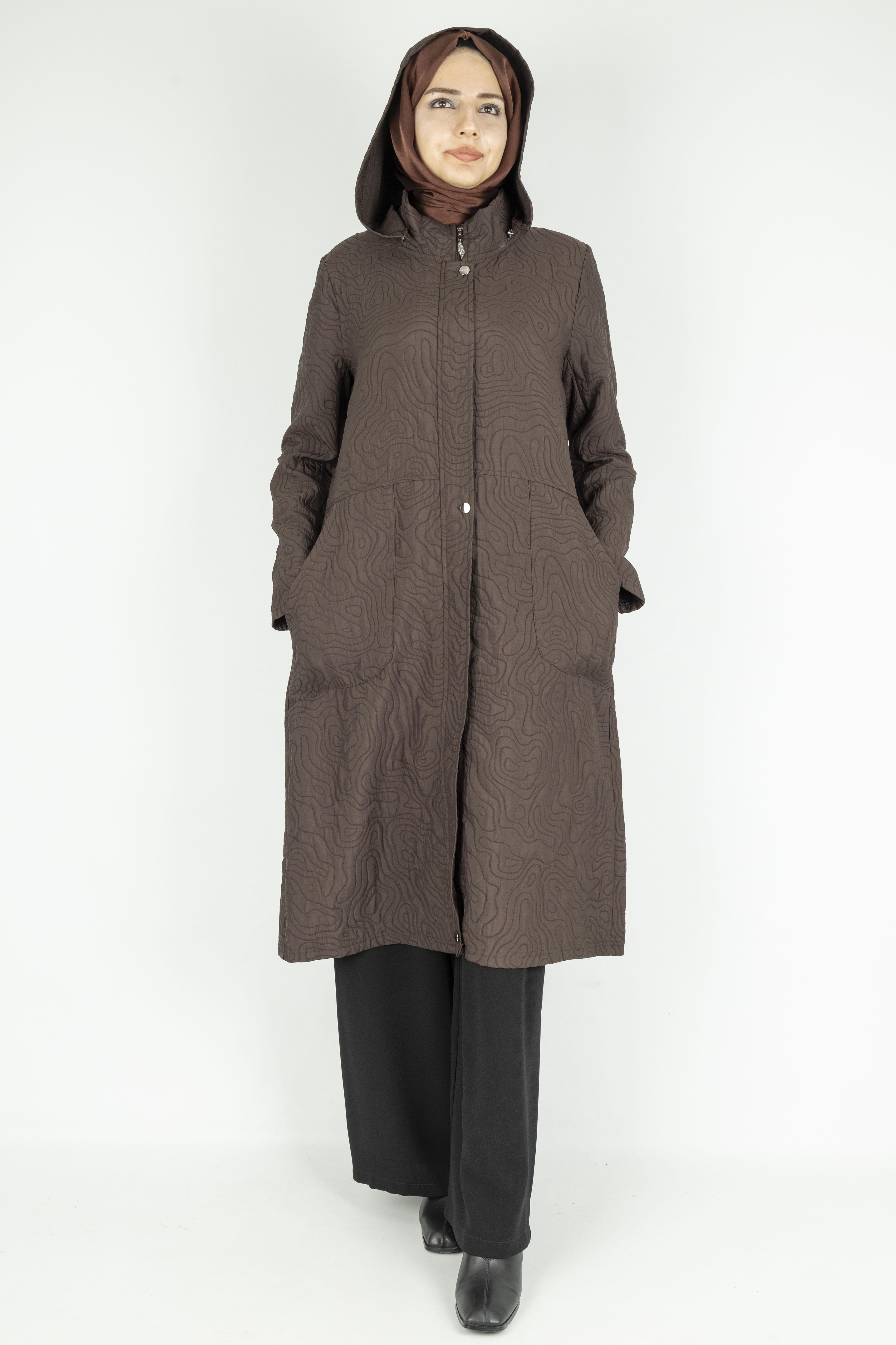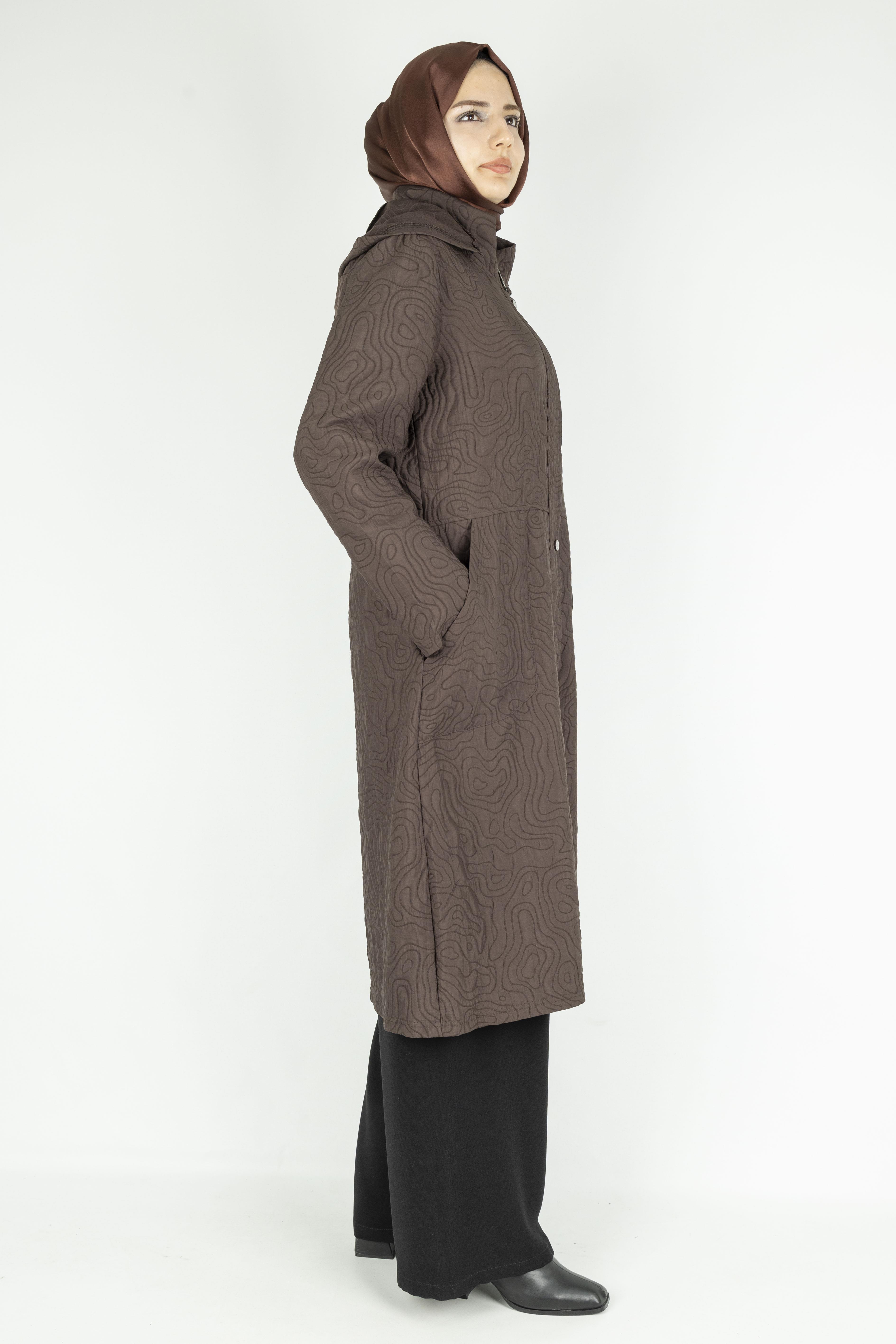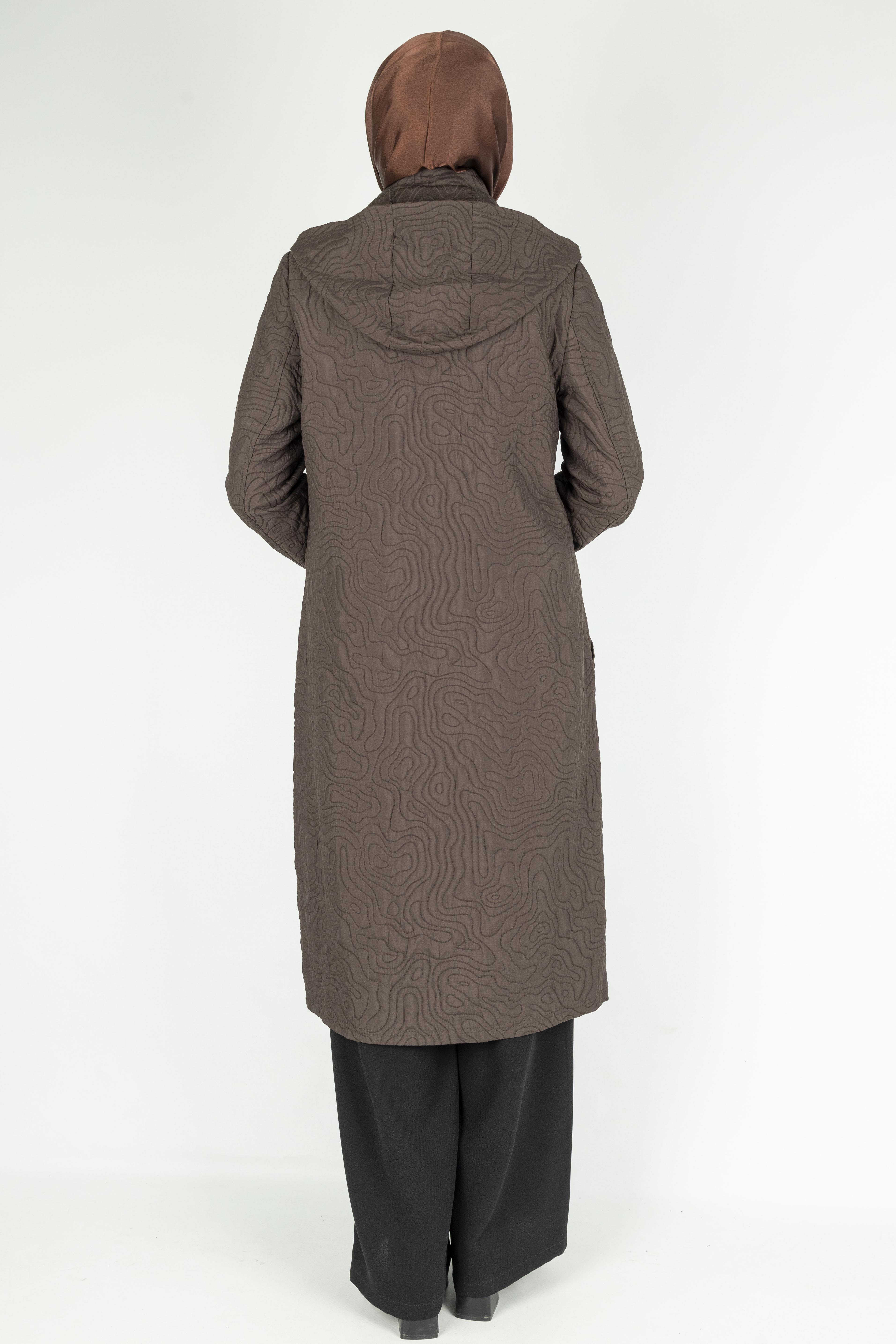 Yüzeyindeki desenli kapitone dokusu, klasik kap modellerinden ayrılarak ürüne özgün ve zarif bir görünüm kazandırır. Pratik kapşon detayı hem stil hem de işlevsellik sunarken, fermuar ve çıtçıtlı kapanışı kullanım kolaylığı sağlar. Günlük kombinlerde, şehir stilinde ya da rahat şıklık isteyen her ortamda rahatlıkla kullanılabilir. Kumaş Türü: Astarsız Kapitone Kumaş
