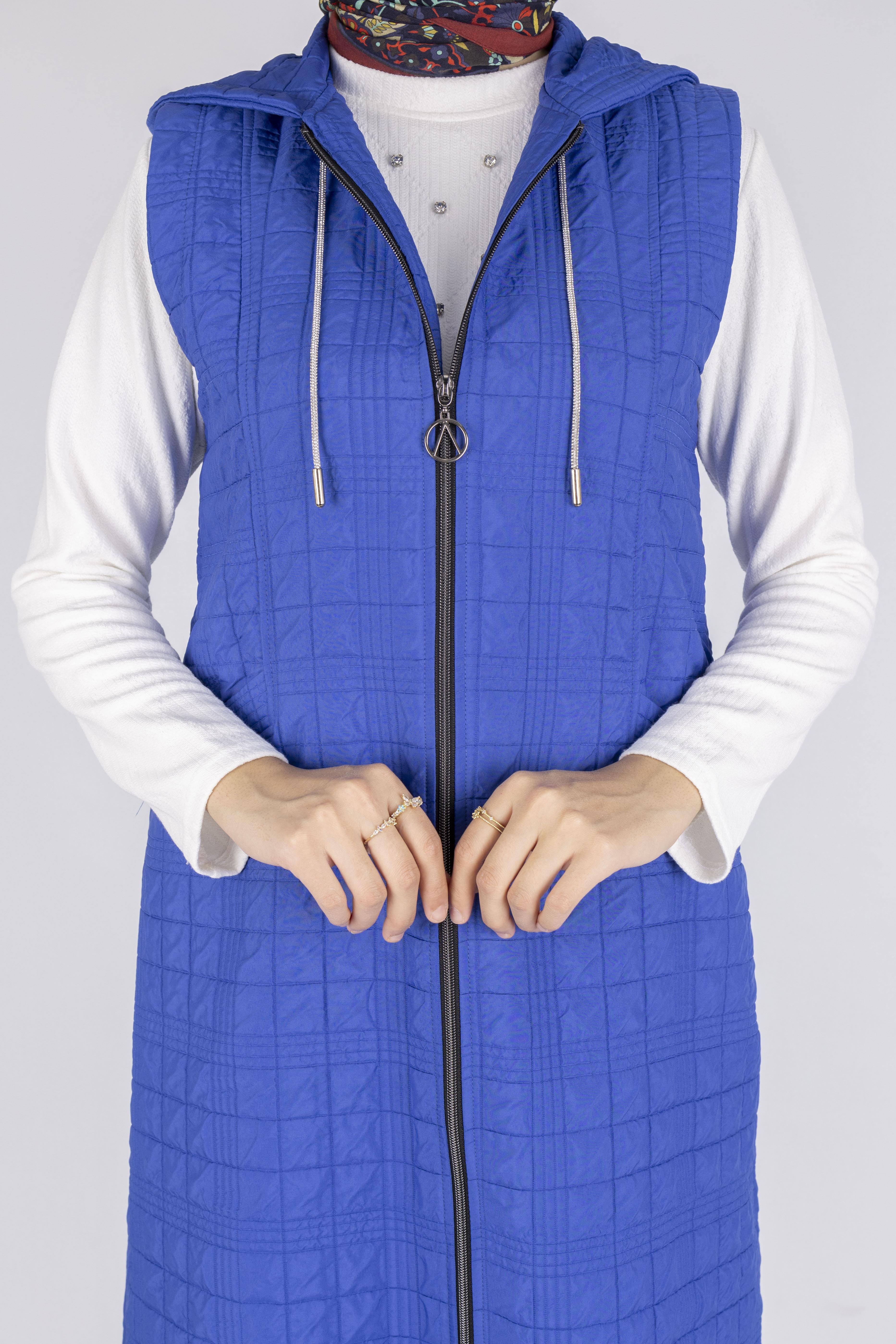 Ayarlanabilir İpli Kapüşonlu Dik Yaka Kapitone Yelek Saks OTW4029