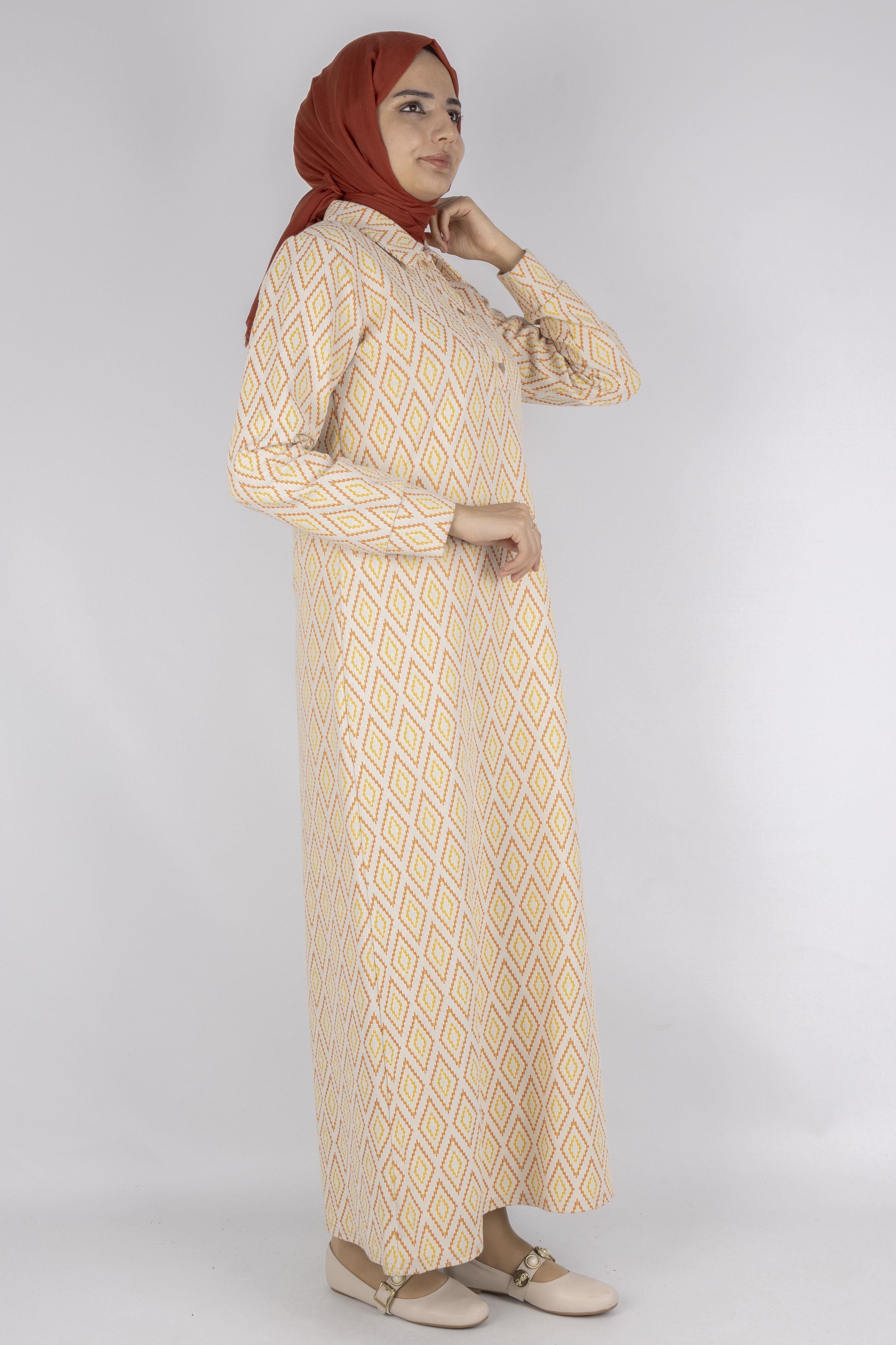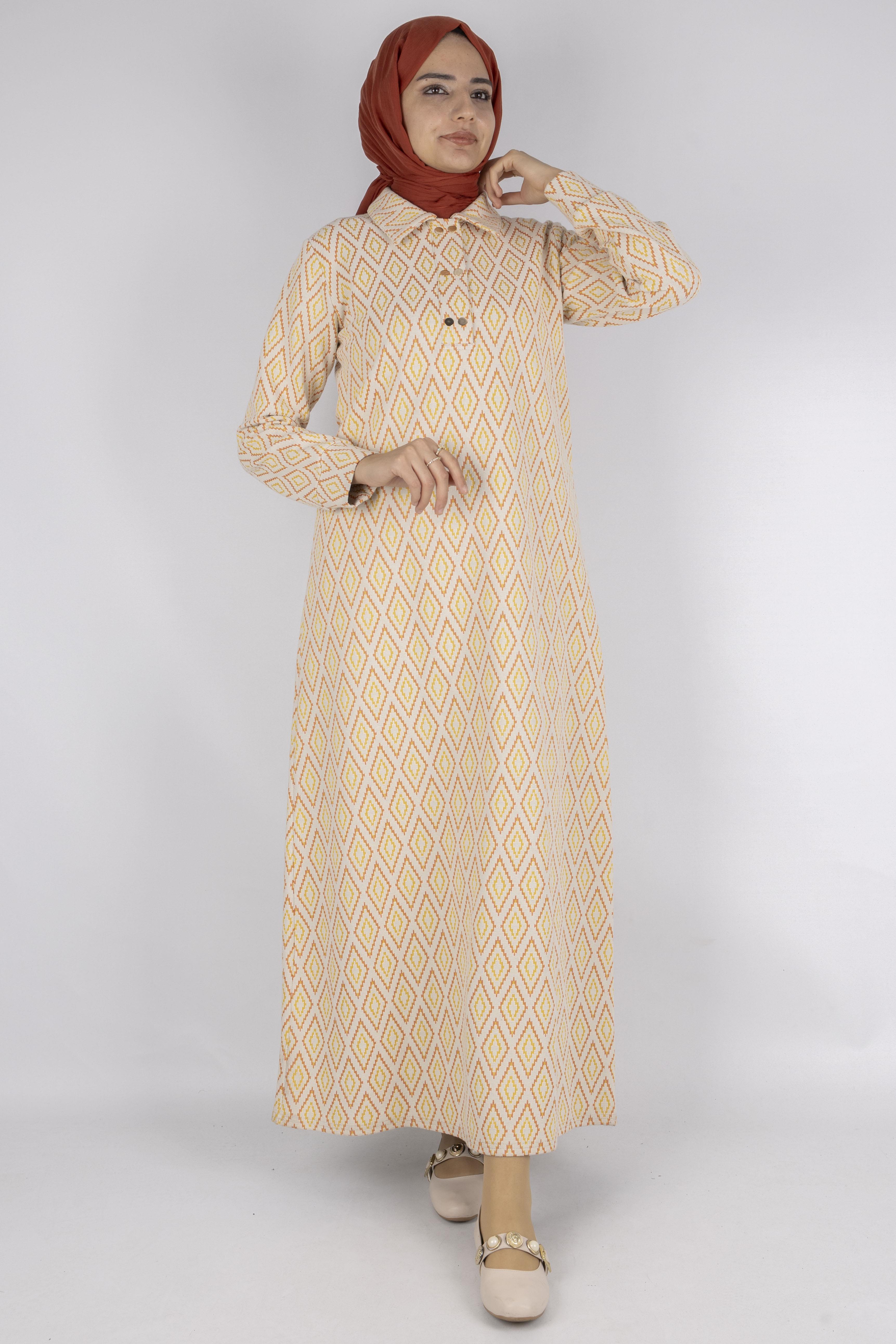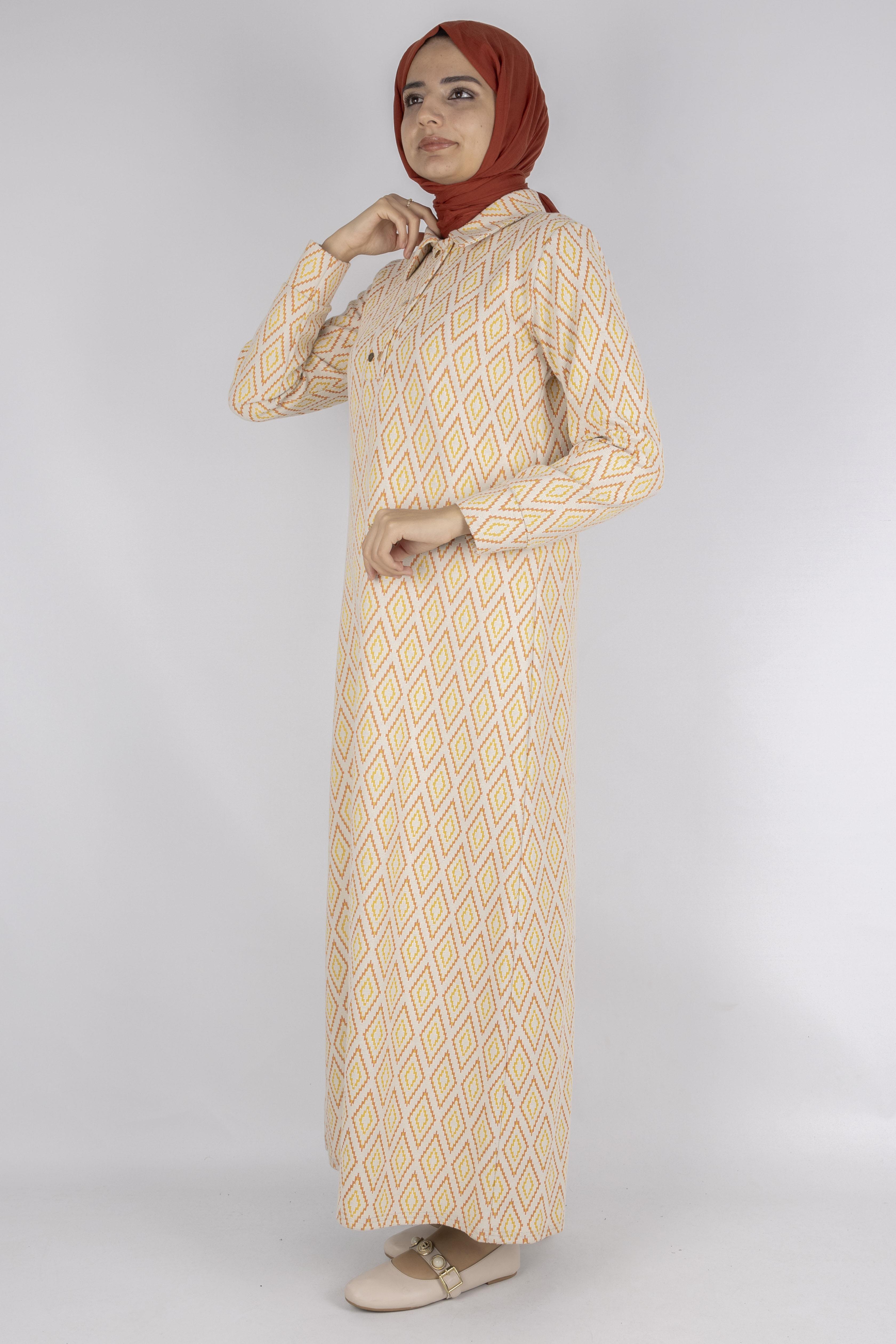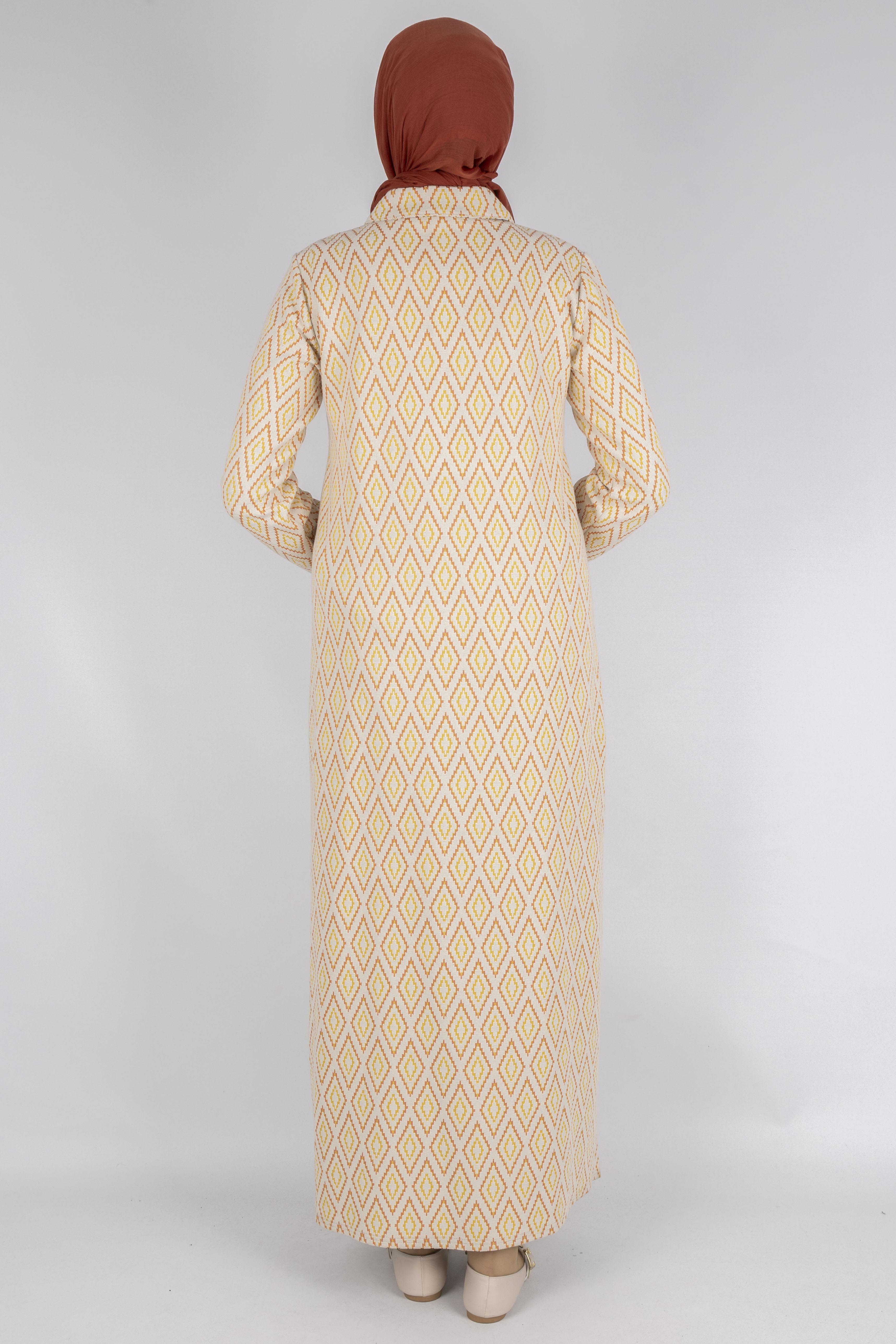 Baklava Desenli Gizli Çıtçıtlı Tam Boy Elbise Taba OTW2146