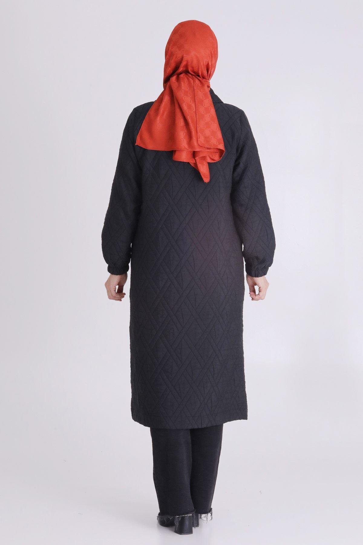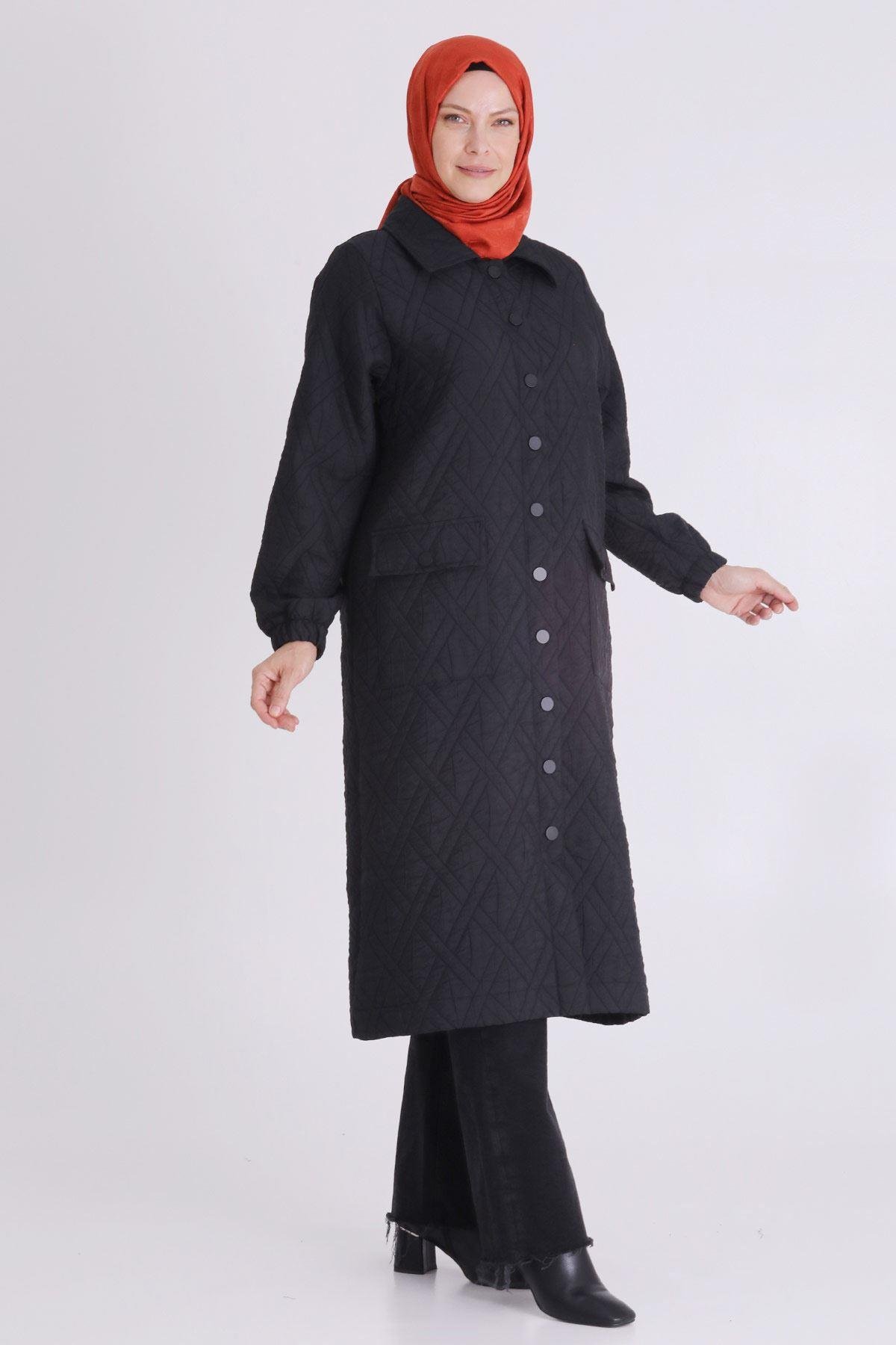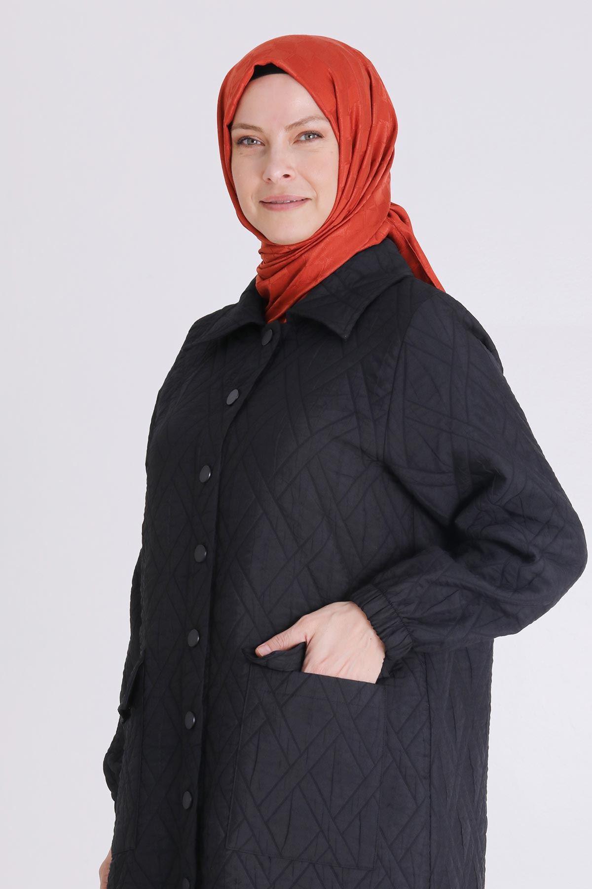 Behrem Baklava Desenli Kapitone Büyük Beden Kapitone Kap Siyah OTW2549
