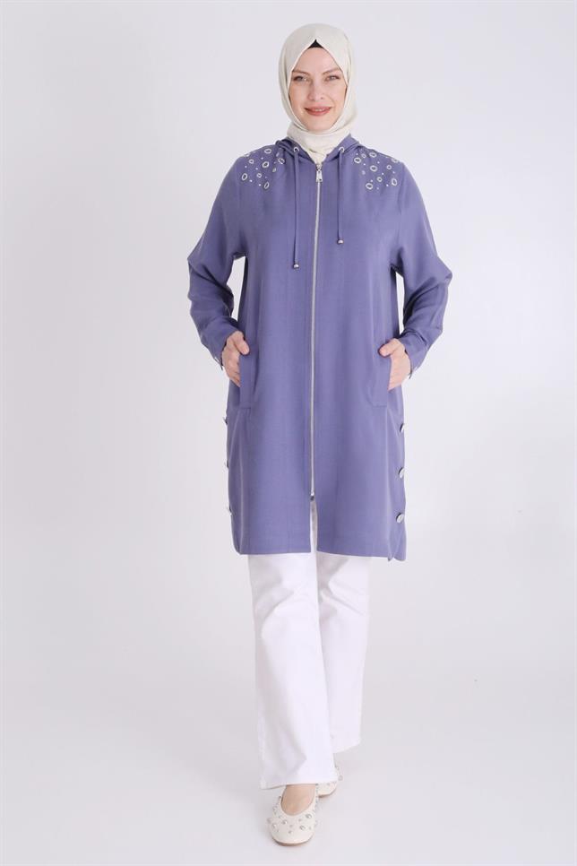Ürün Detayları: Sıfır yaka, pis dikiş detaylı ürünümüz işleme ile hareketlendirilmiştir
