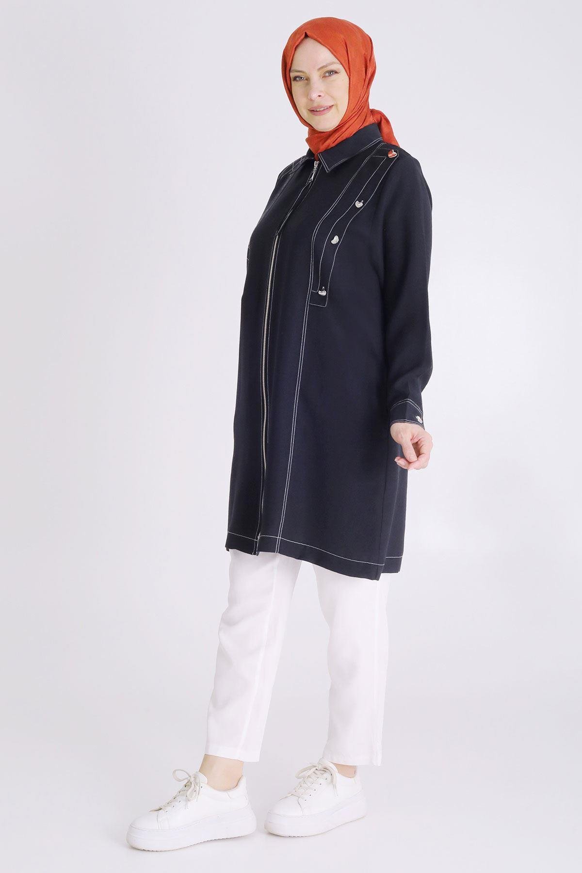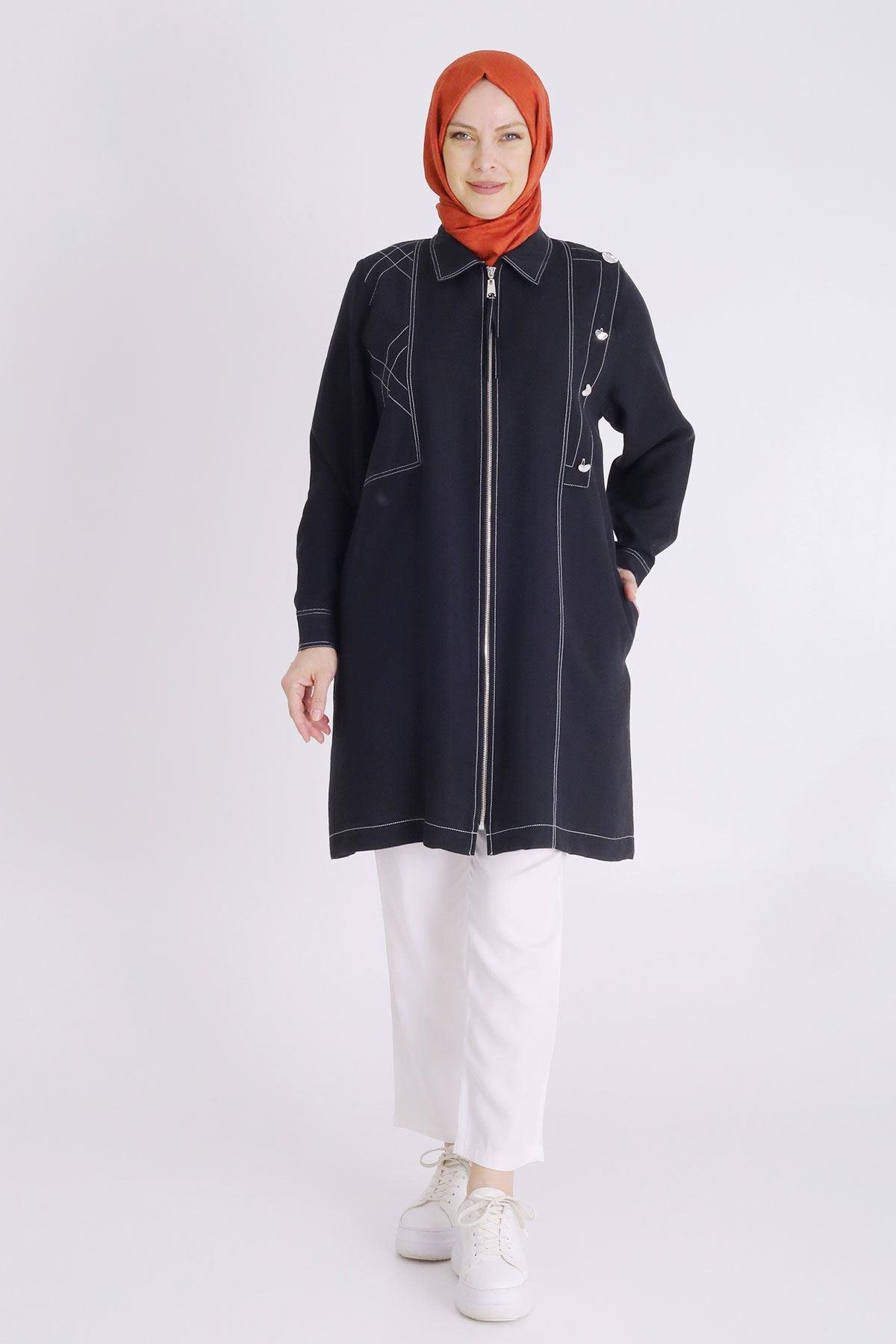 Ürün Detayları: Önden fermuarlı yakalı ürünümüz spor dikiş ve düğme aksesuar detaylıdır, iki yandan ceplidir.