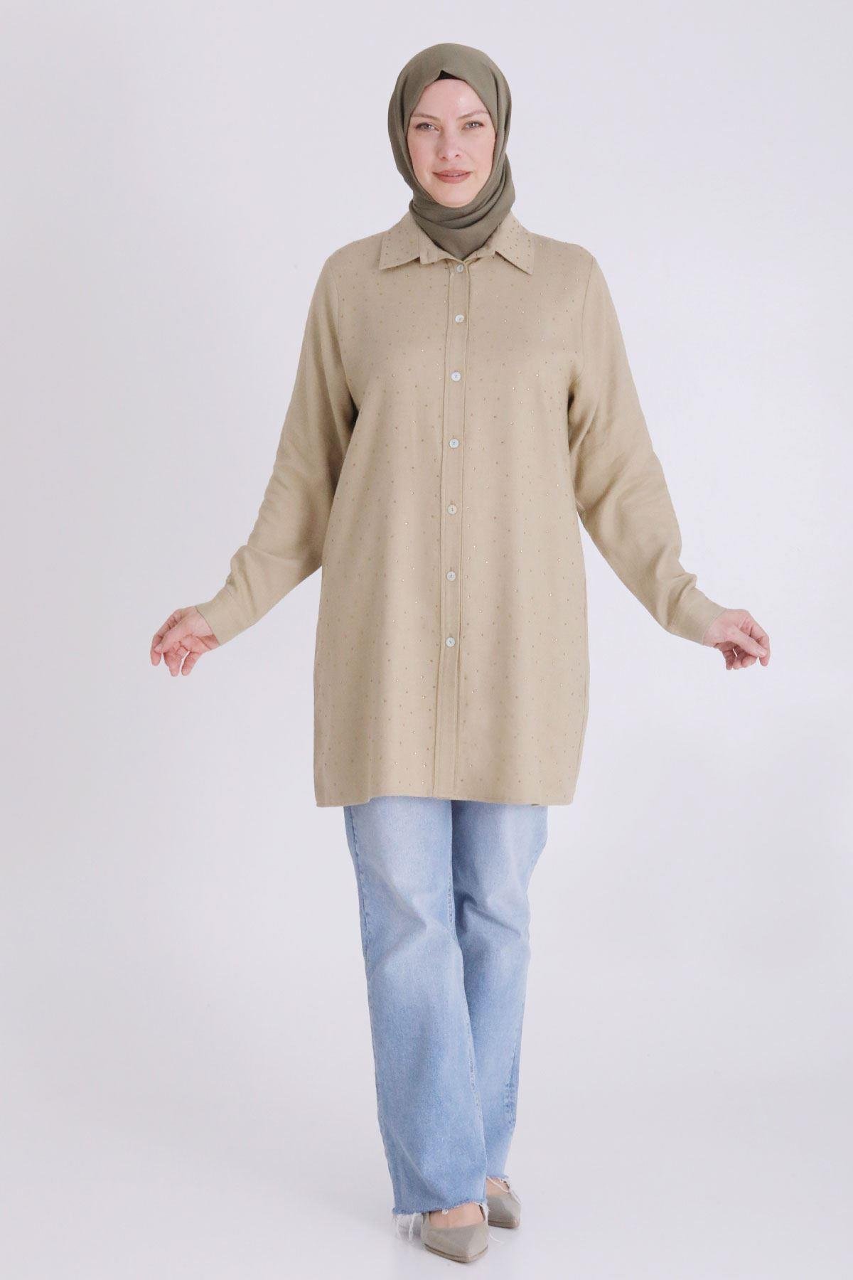 BEHREM BÜYÜK BEDEN TESETTÜR TAŞLI TUNİK Camel OTW23033
