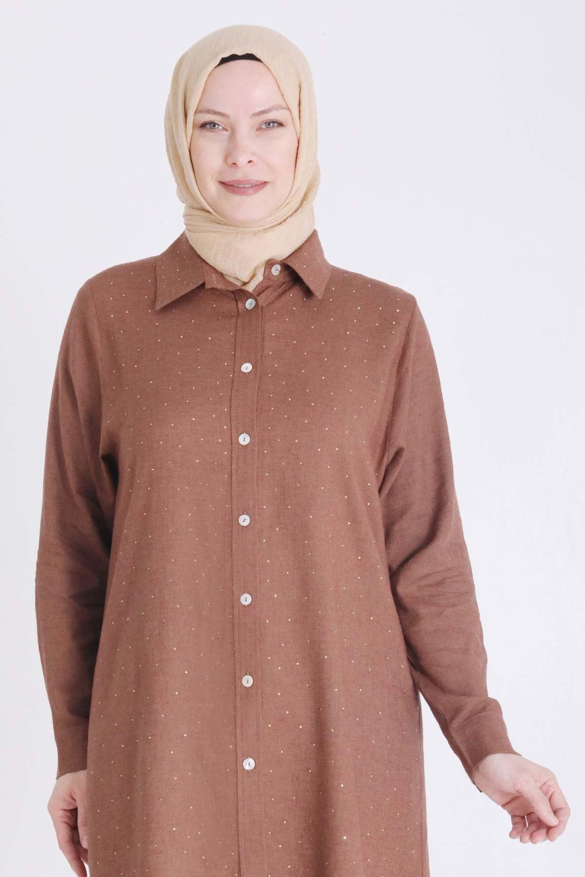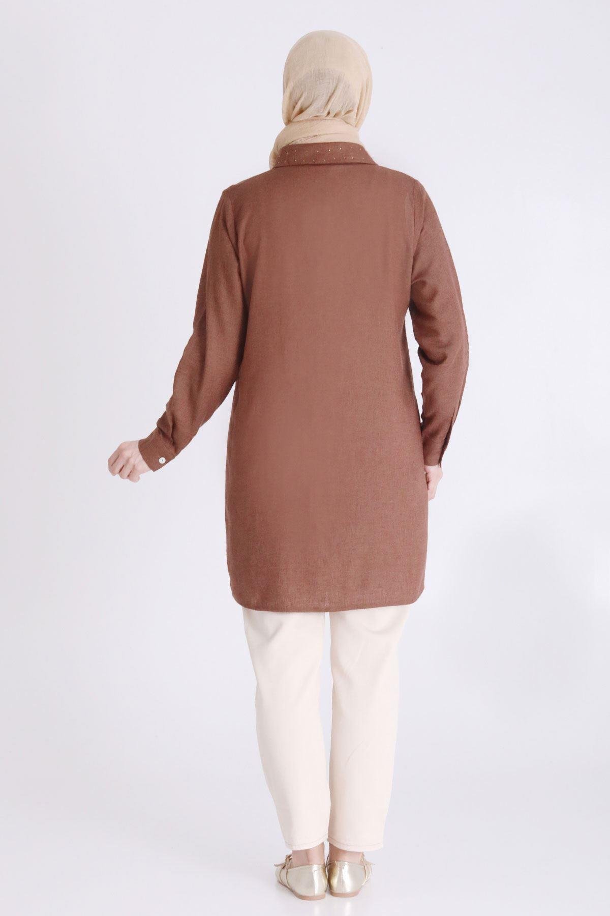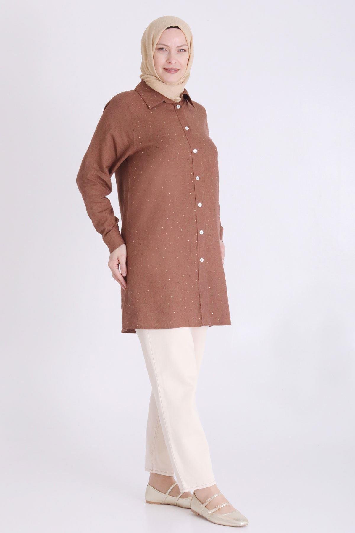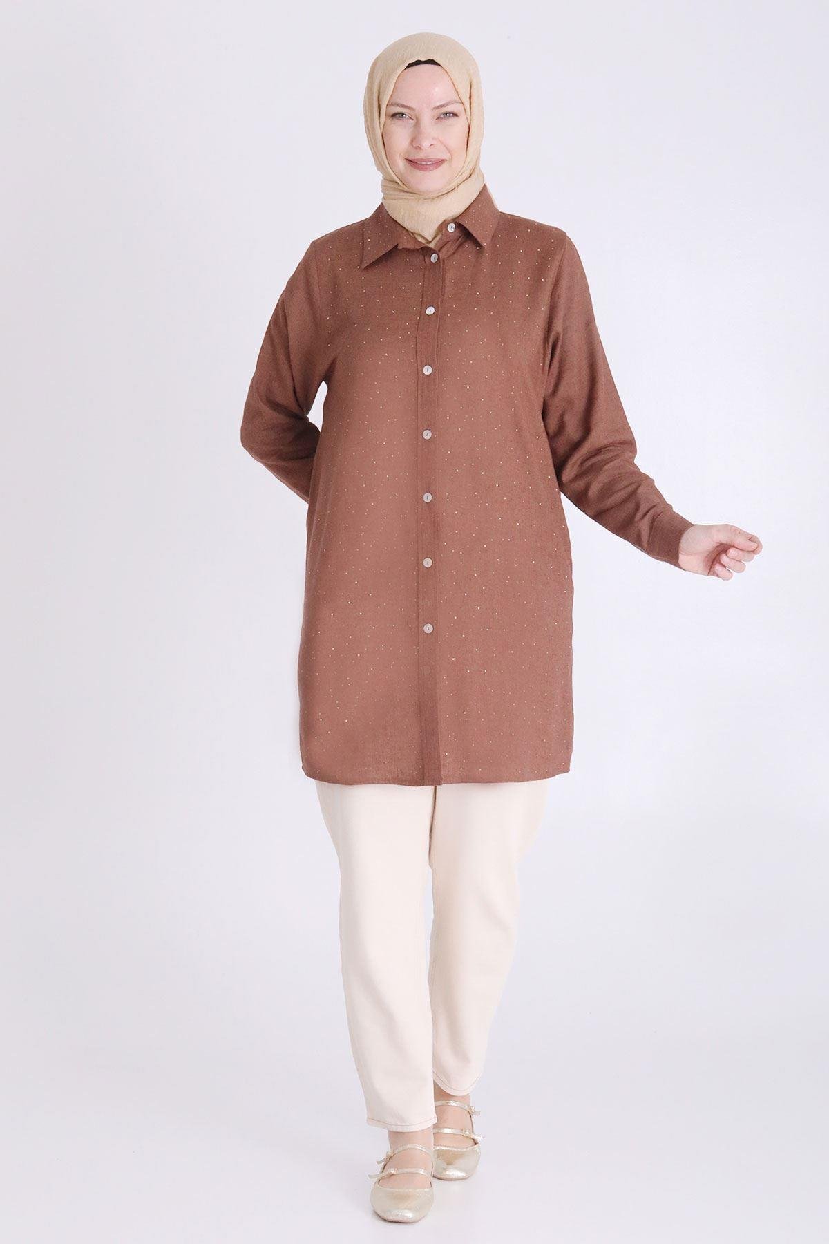 Ürün Detayları: Yakalı modelimiz önden sedef düğmeli ve kol ucu manşetlidir. Önü taş baskı detay ile hareketlendirilmiştir.