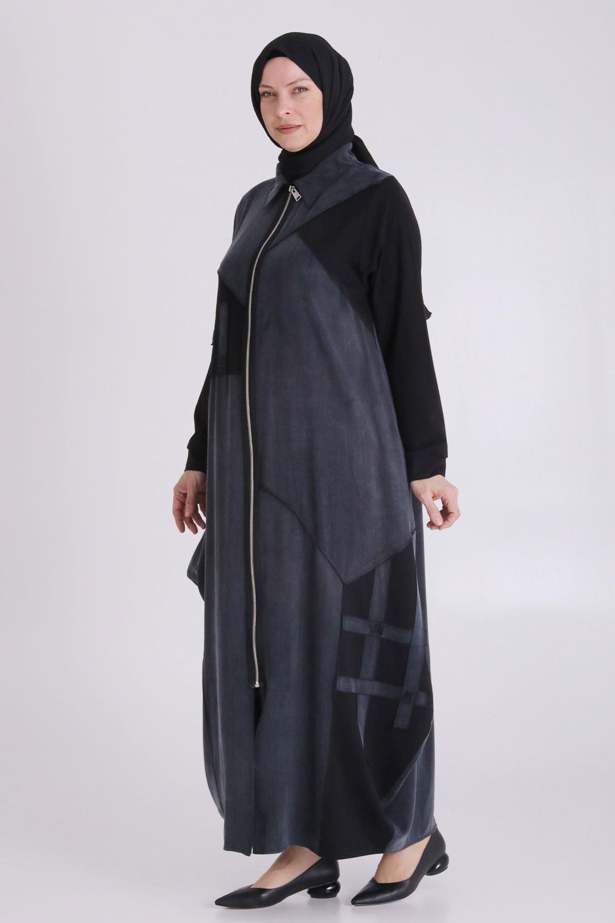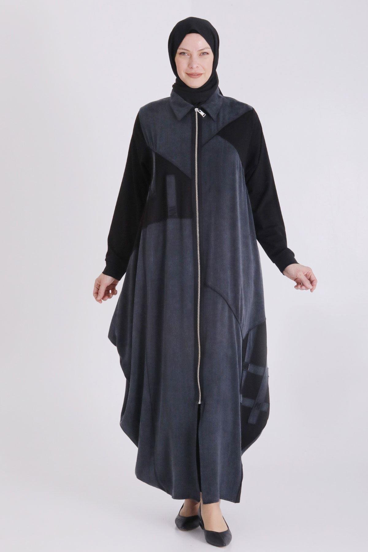 Ürün Detayları: Yakalı modelimiz önden fermuarlı ve iki yandan ceplidir. Balon kesim olup boncuk işleme detaylıdır. Kumaş Türü: İpek Kupra Kumaş İçeriği: %56 Lyocell- %44 Viskon