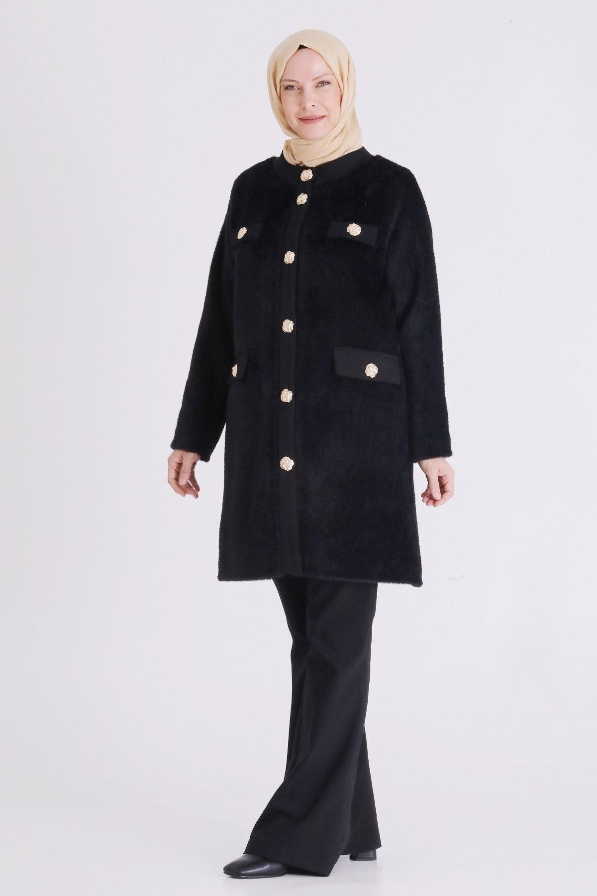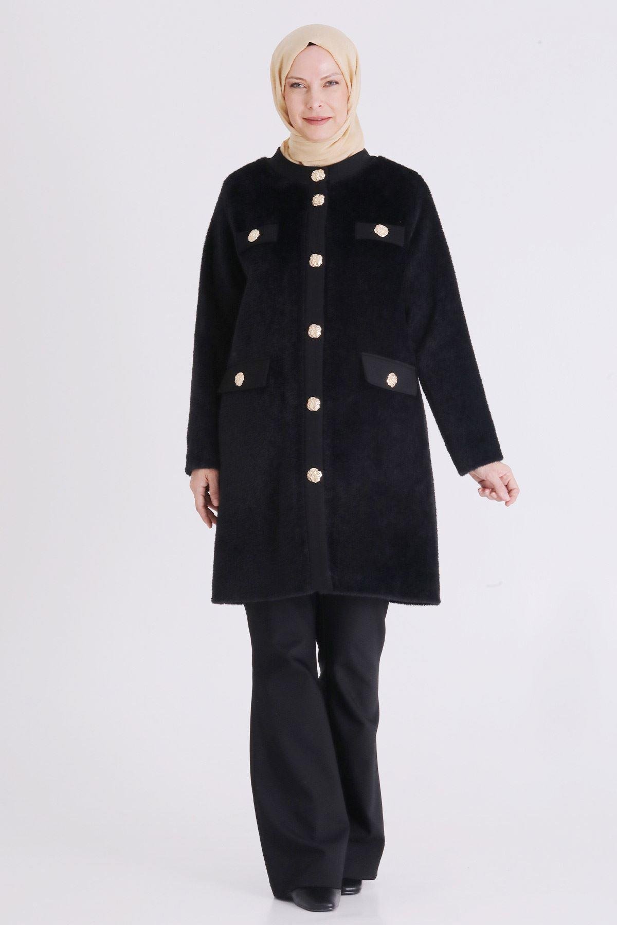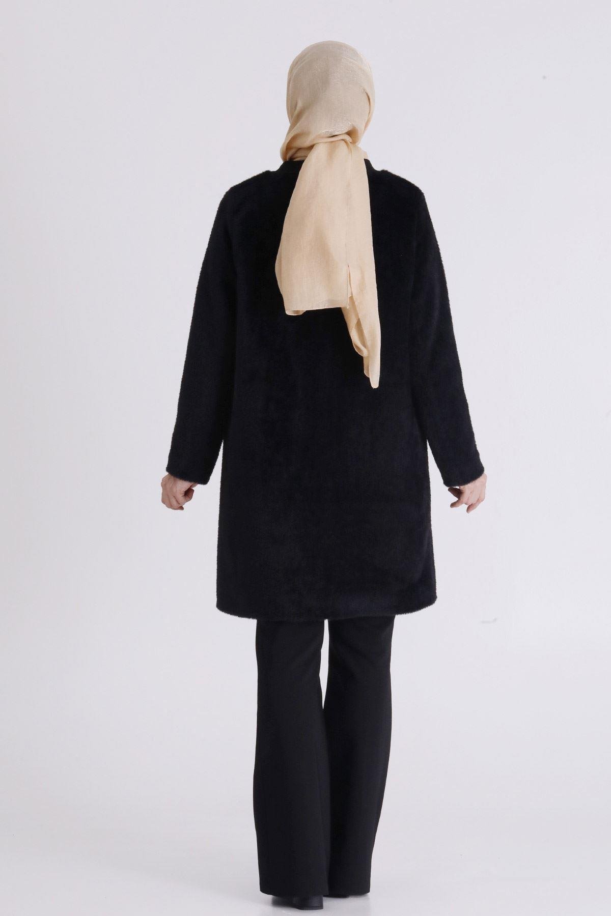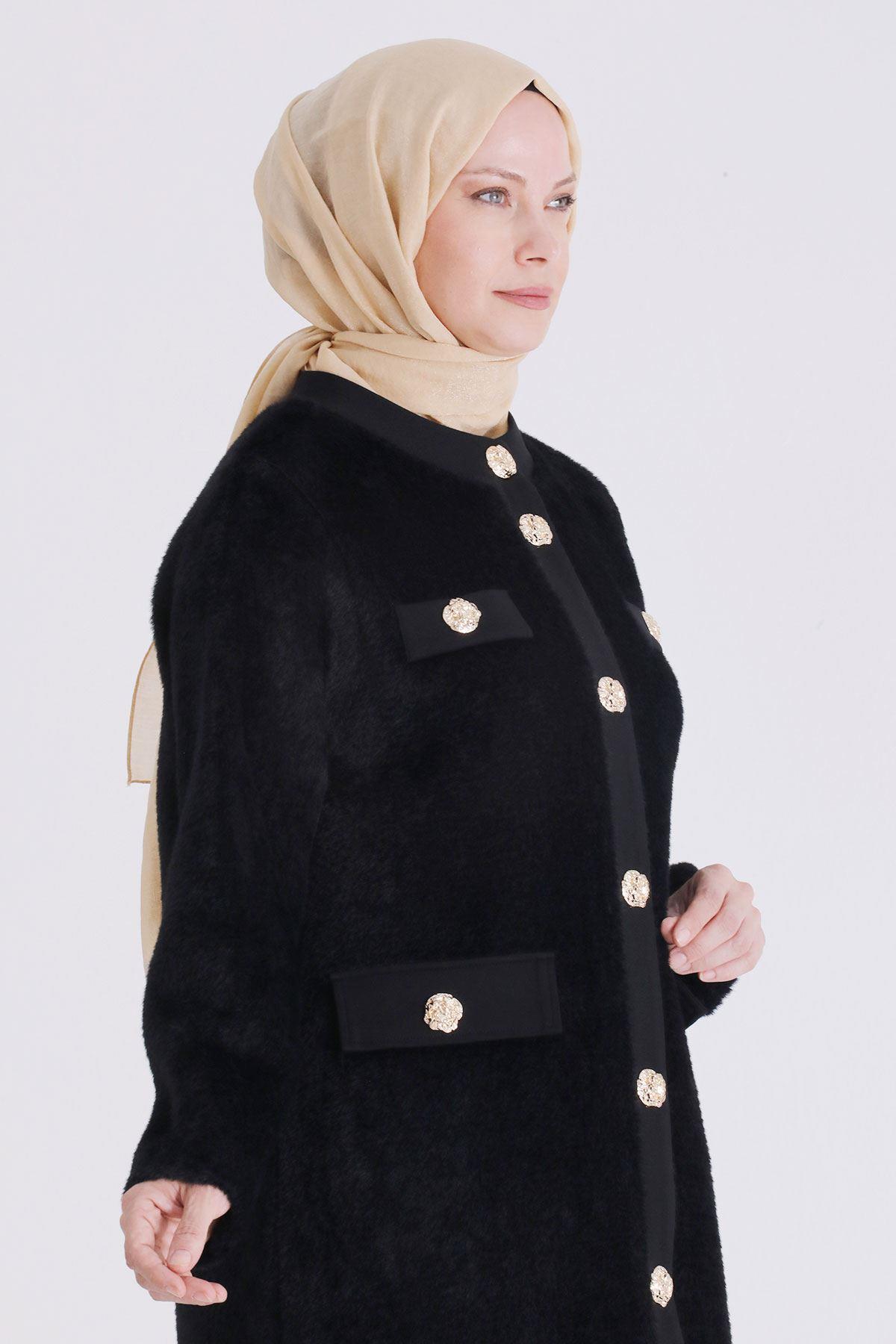 Behrem Kürk Dokulu Düğme Detaylı Tesettür Kap Siyah OTW25142