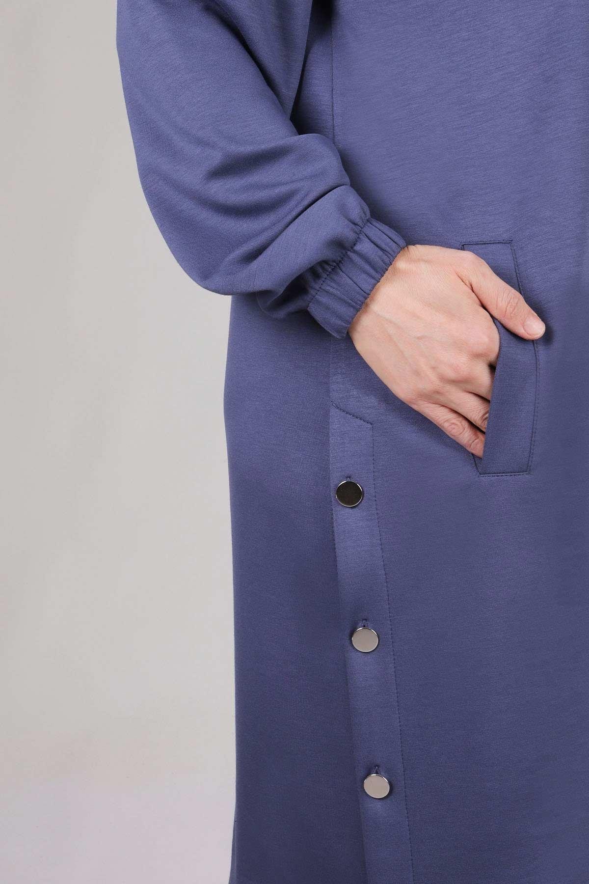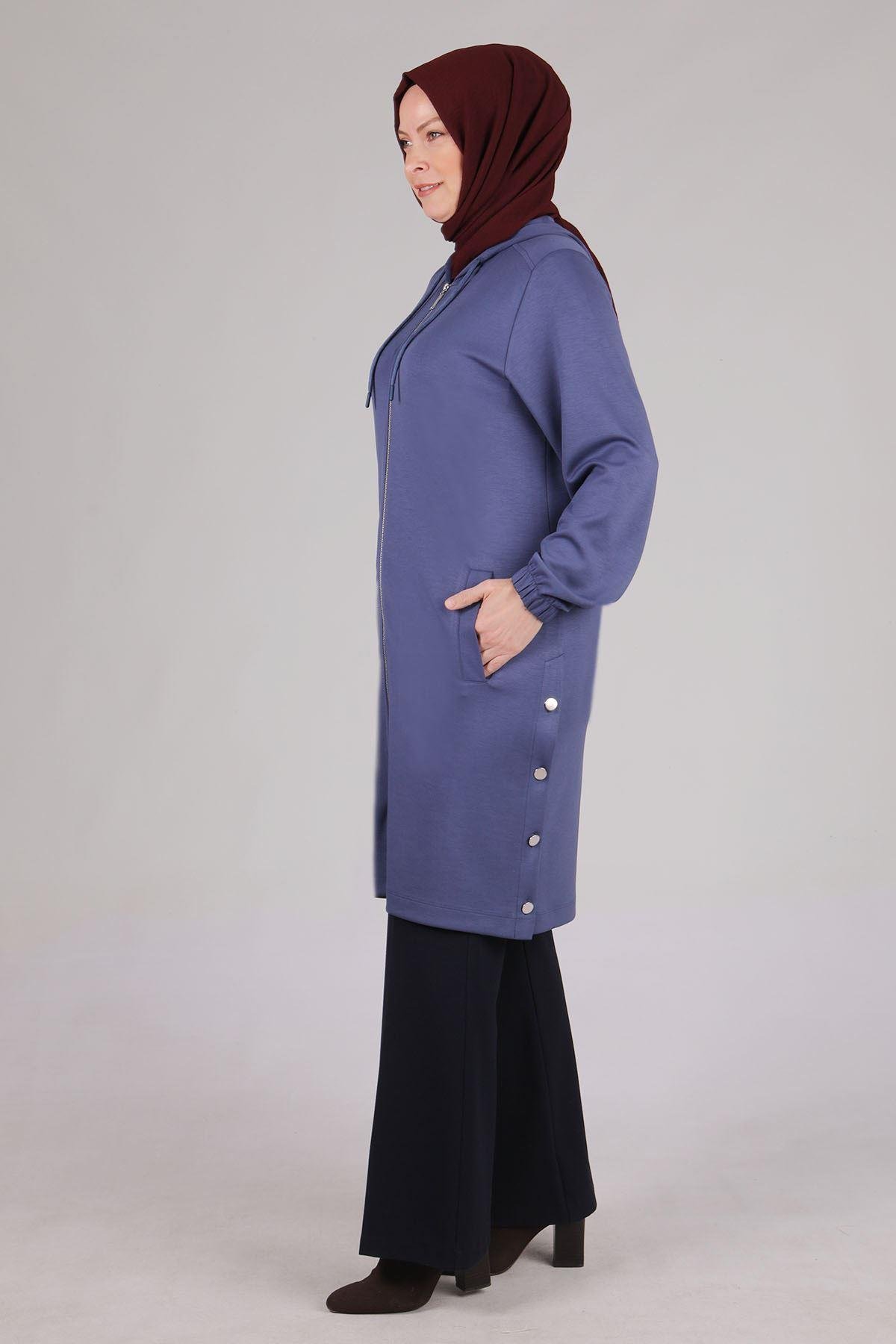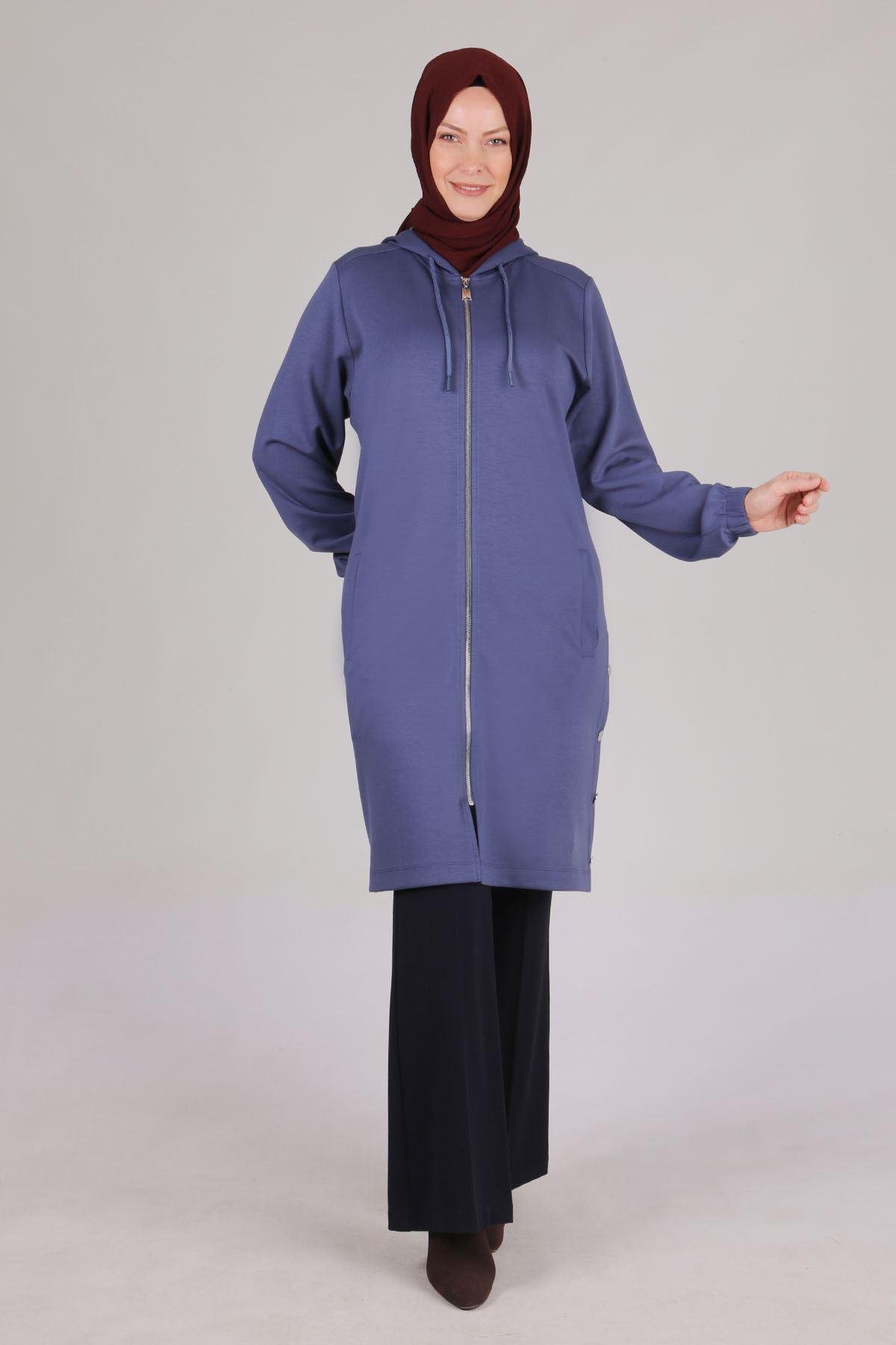 Behrem Rahat Form Fermuarlı Kapüşonlu Kap Morcivert OTW2539