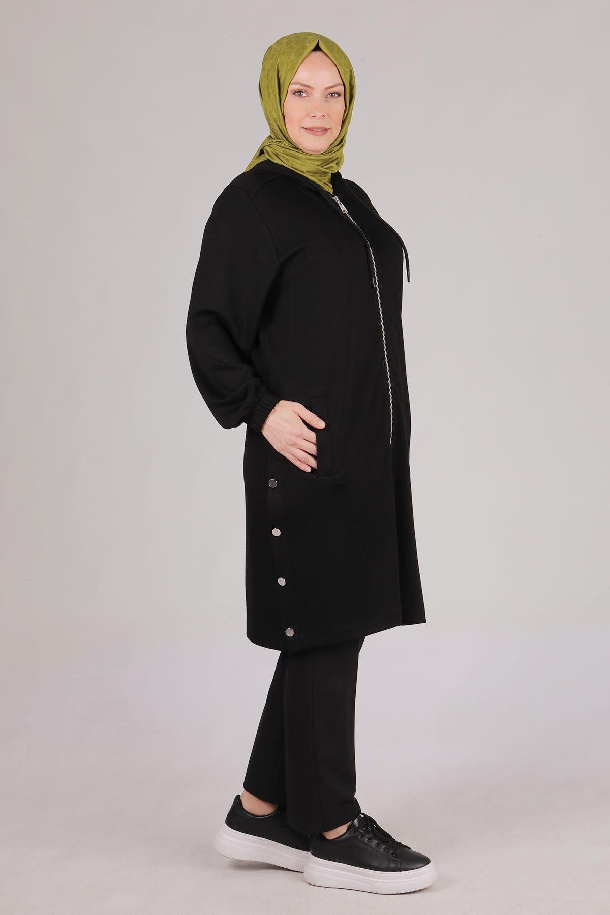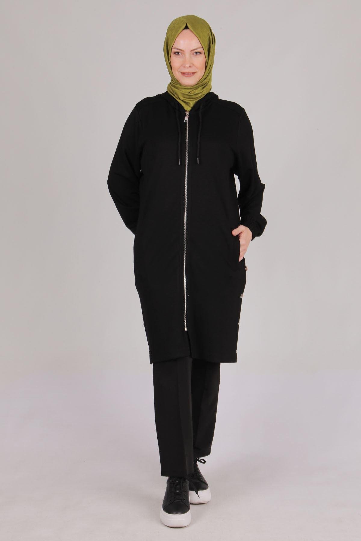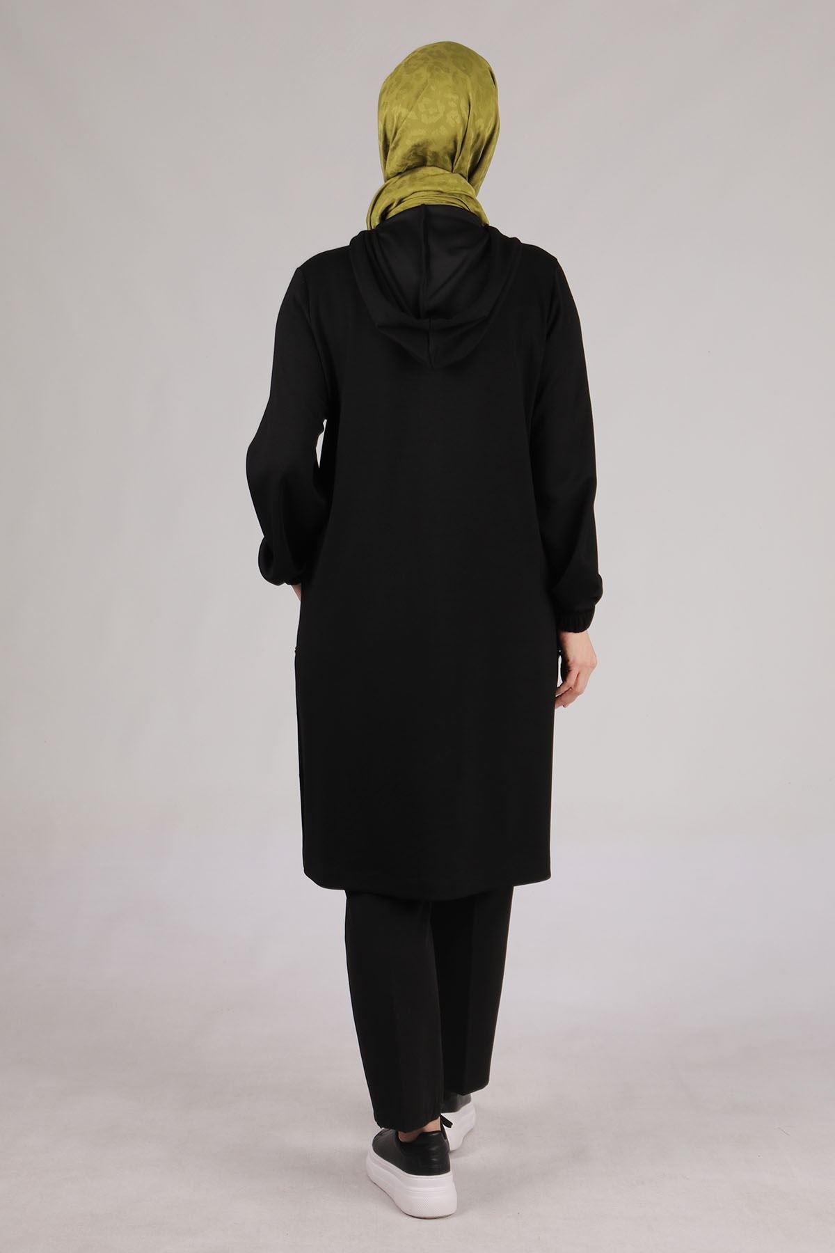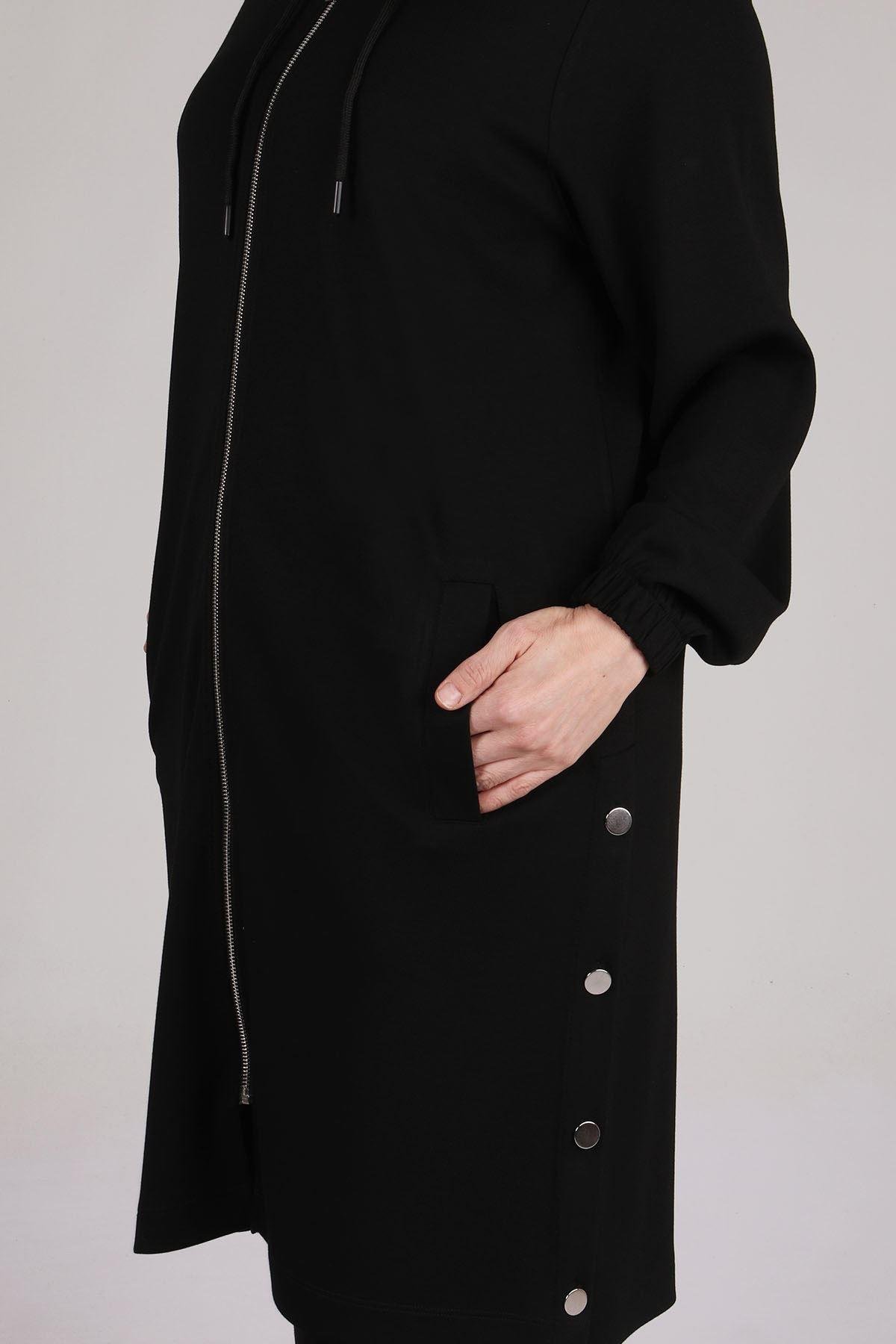 Behrem Rahat Form Fermuarlı Kapüşonlu Kap Siyah OTW2539