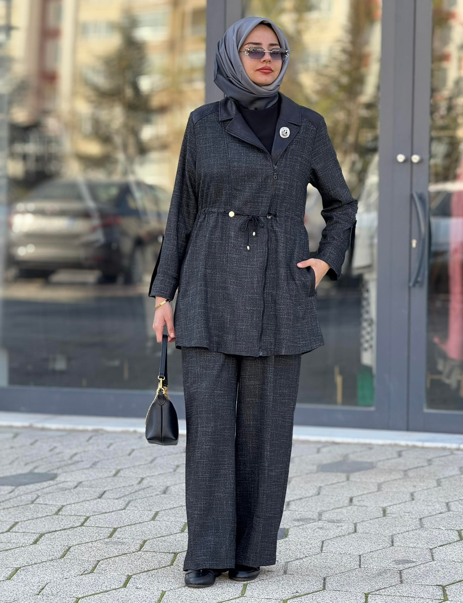 Bel Bağcıklı Pantolonlu Takım Siyah OTW45816