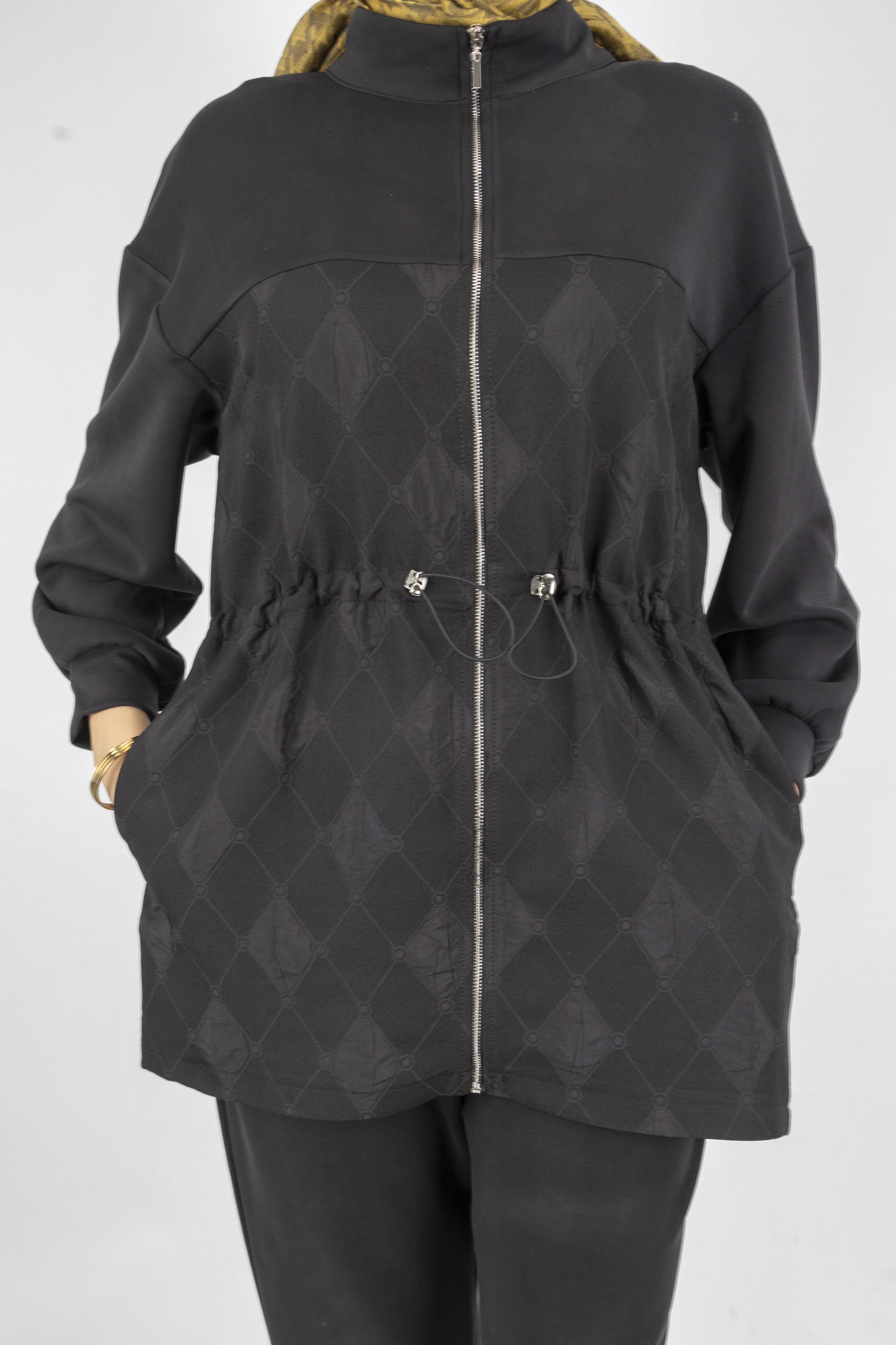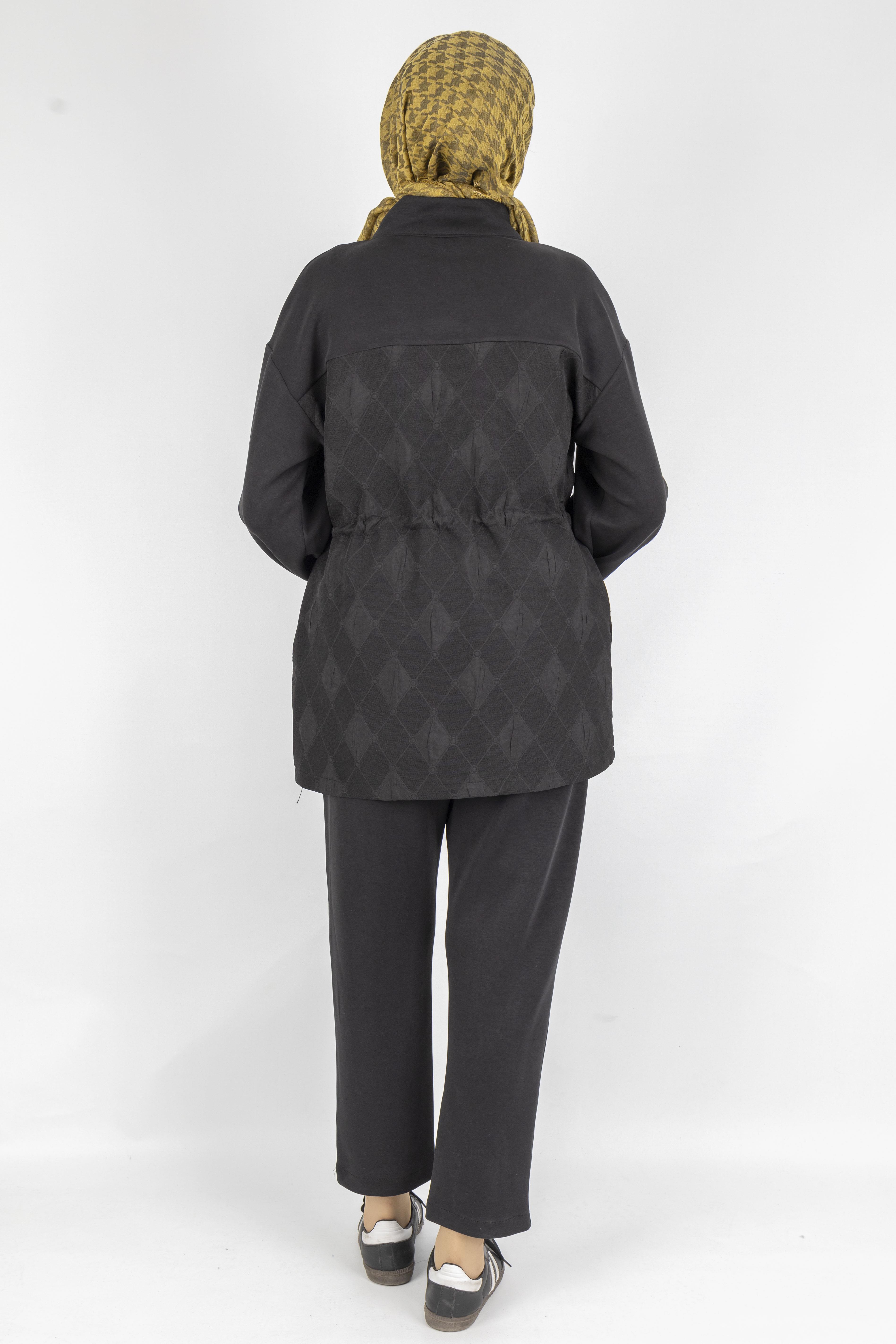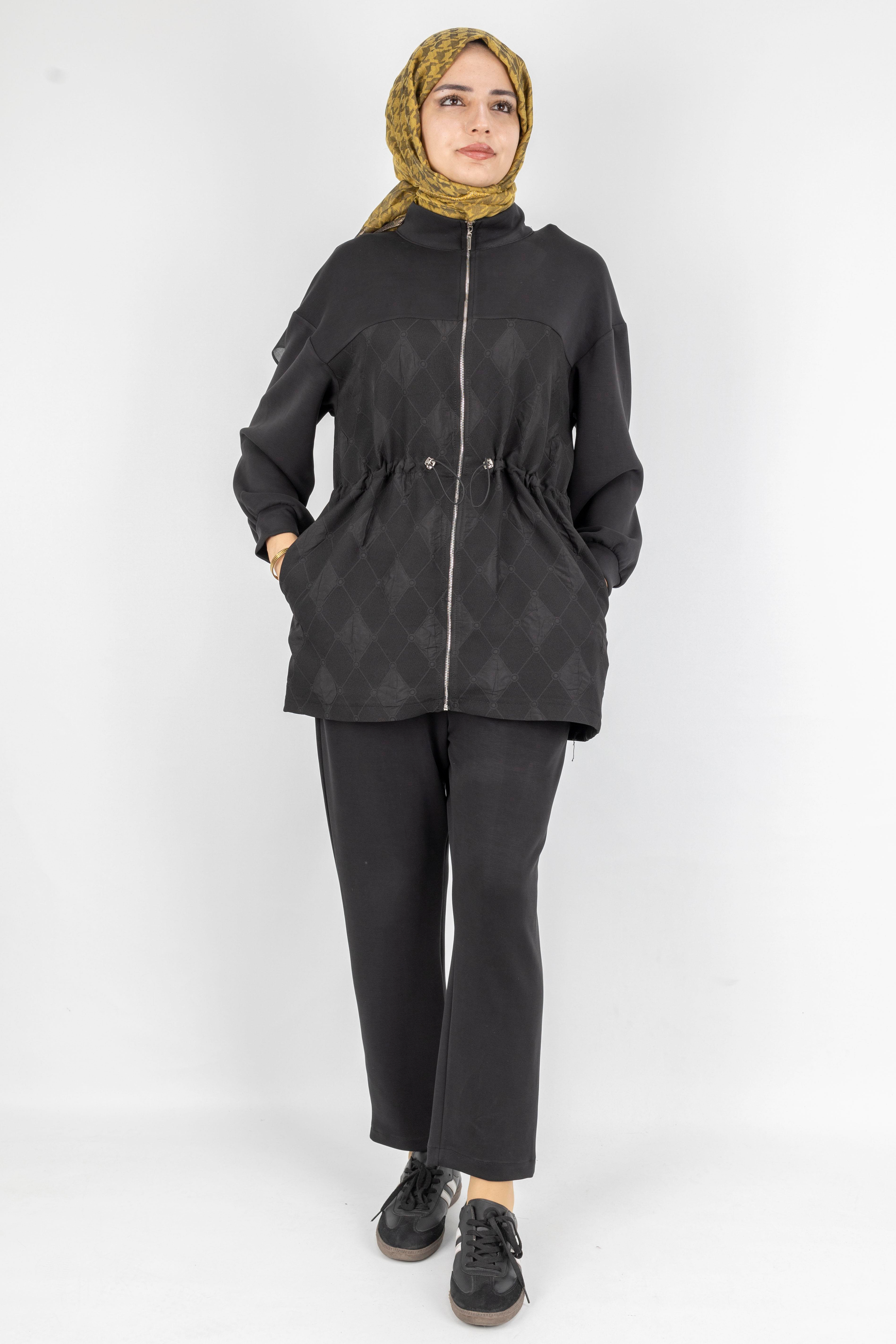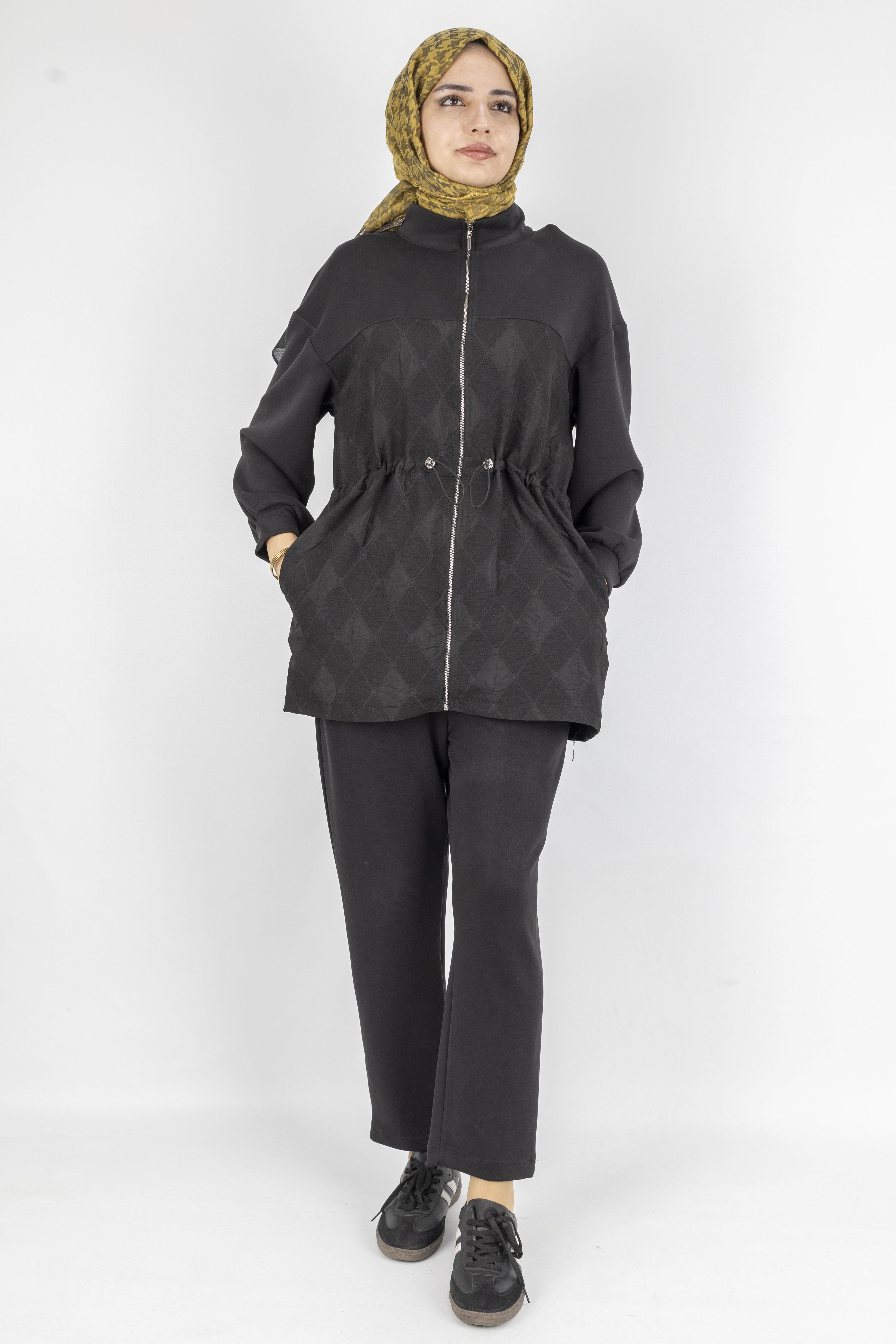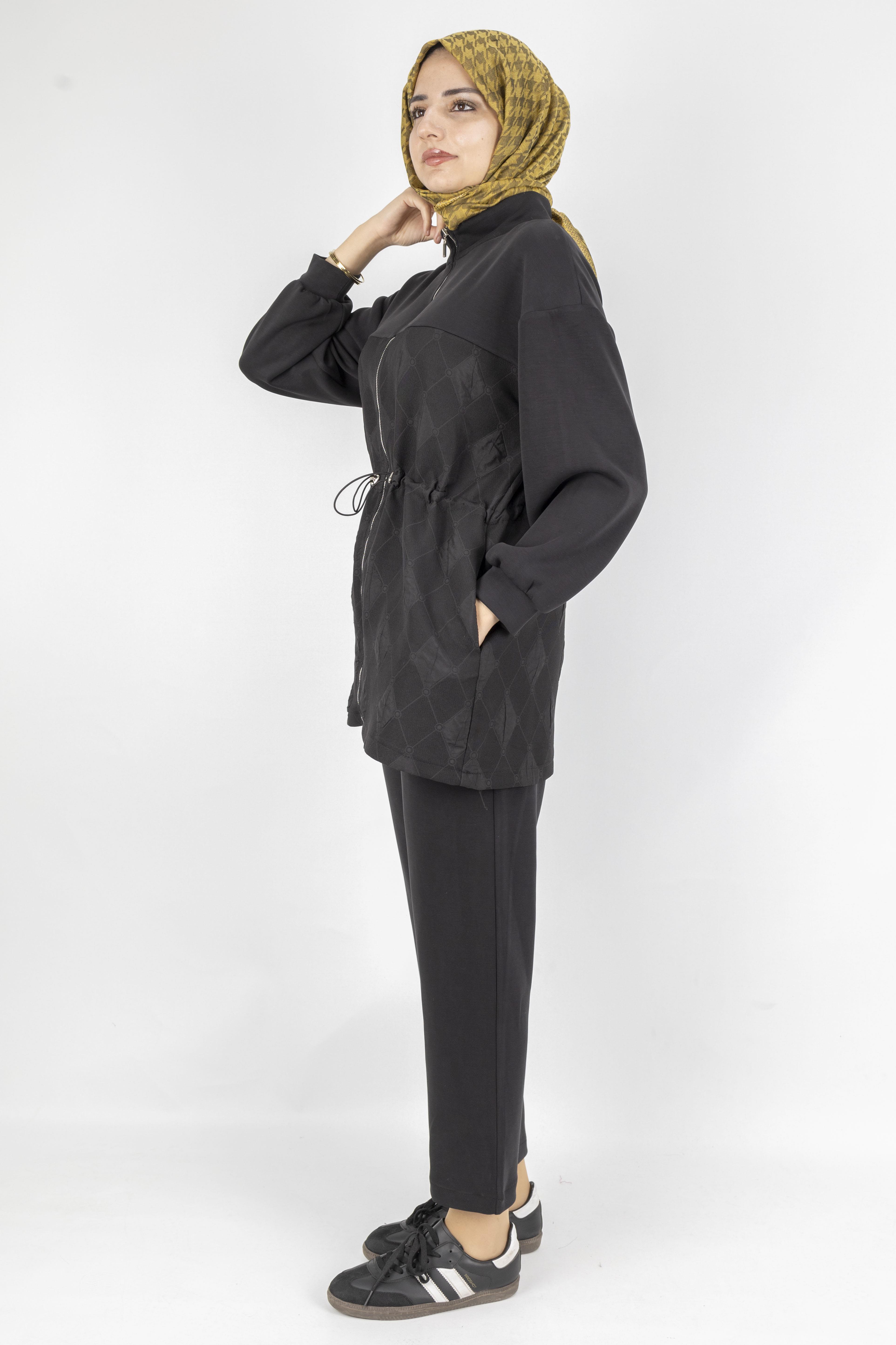 Bel Büzgülü Modern Tasarım Tesettür Takım Siyah OTW8584