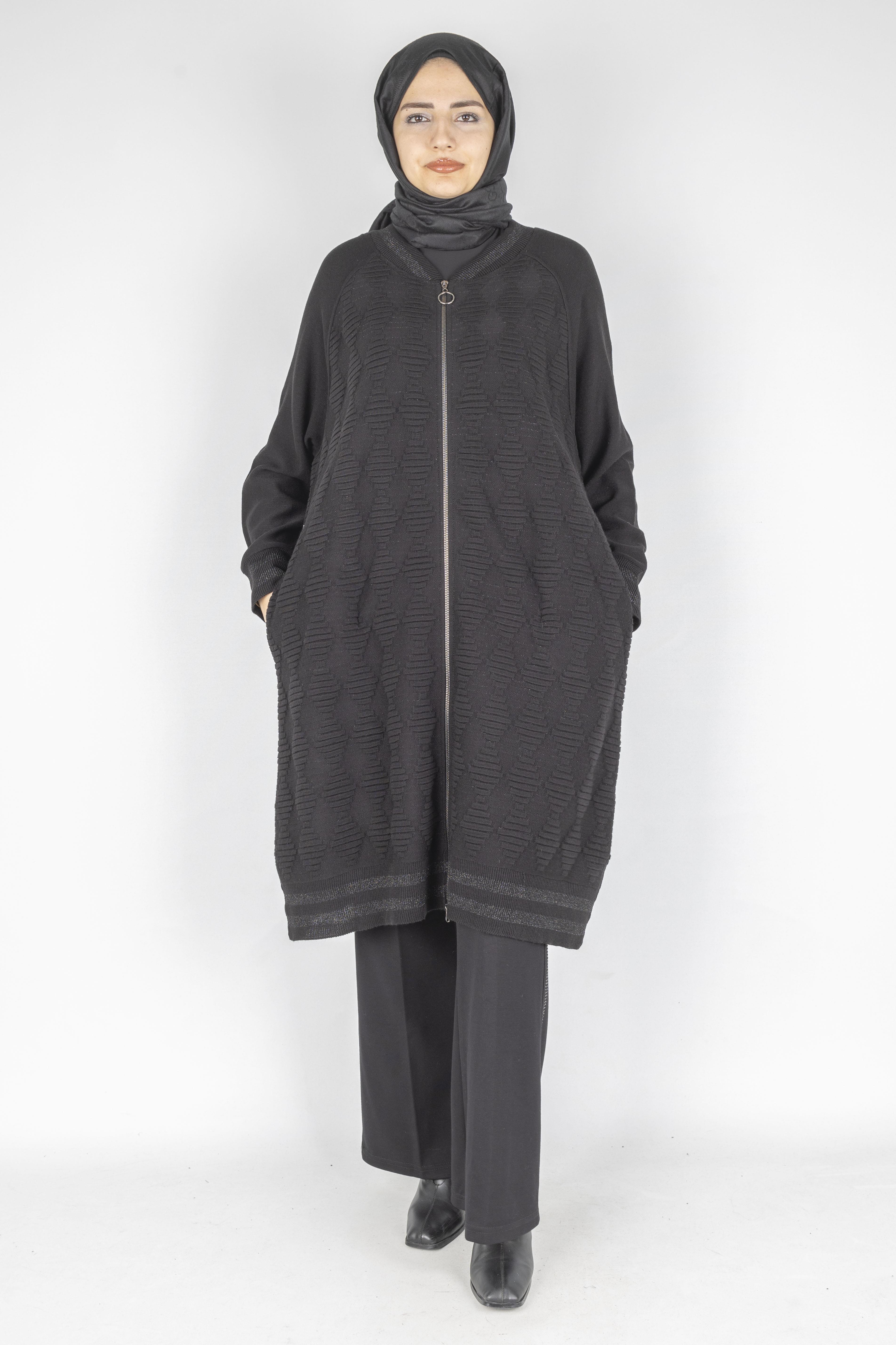 Tok duran çelik örme dokusuyla hem şık hem de konforlu bir görünüm sunan büyük beden çelik örme fermuarlı kap, günlük kullanımda ve şehir hayatında modern bir duruş sağlar. Oversize rahat kesimi vücudu kusursuz şekilde sararken, fermuarlı kapama pratik kullanım sunar. Kalın örme dokusu sayesinde serin havalarda sıcak tutan, şık ve kullanışlı bir dış giyim modelidir.
