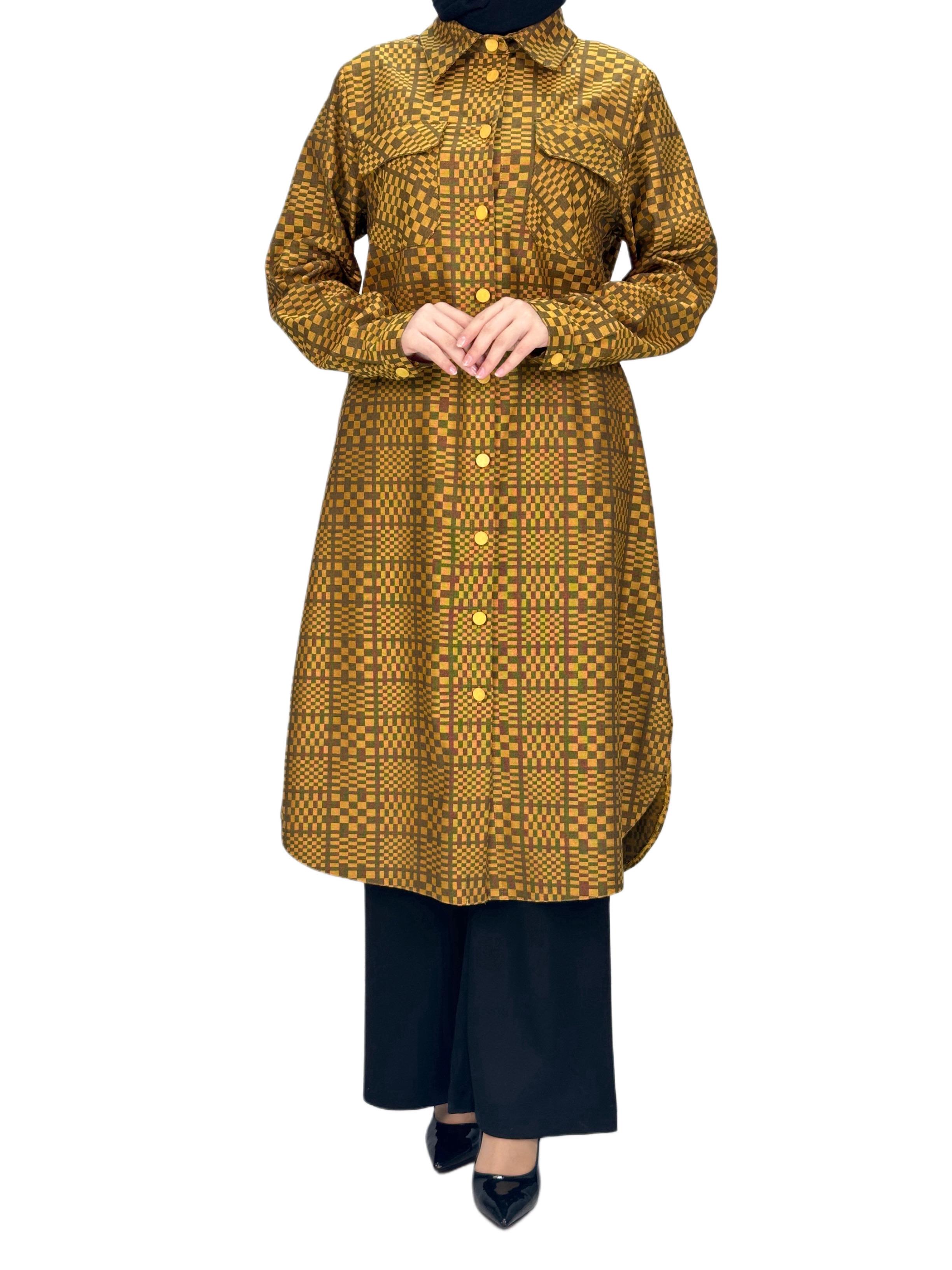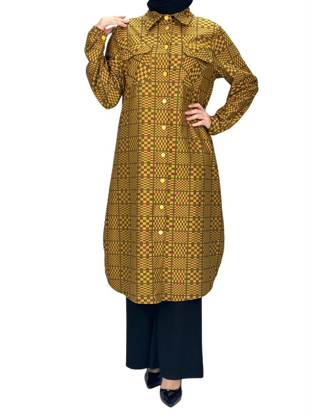 Büyük Beden Cepli Tunik Hardal OTW2102