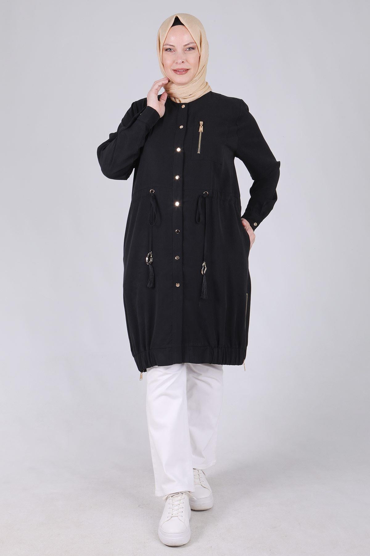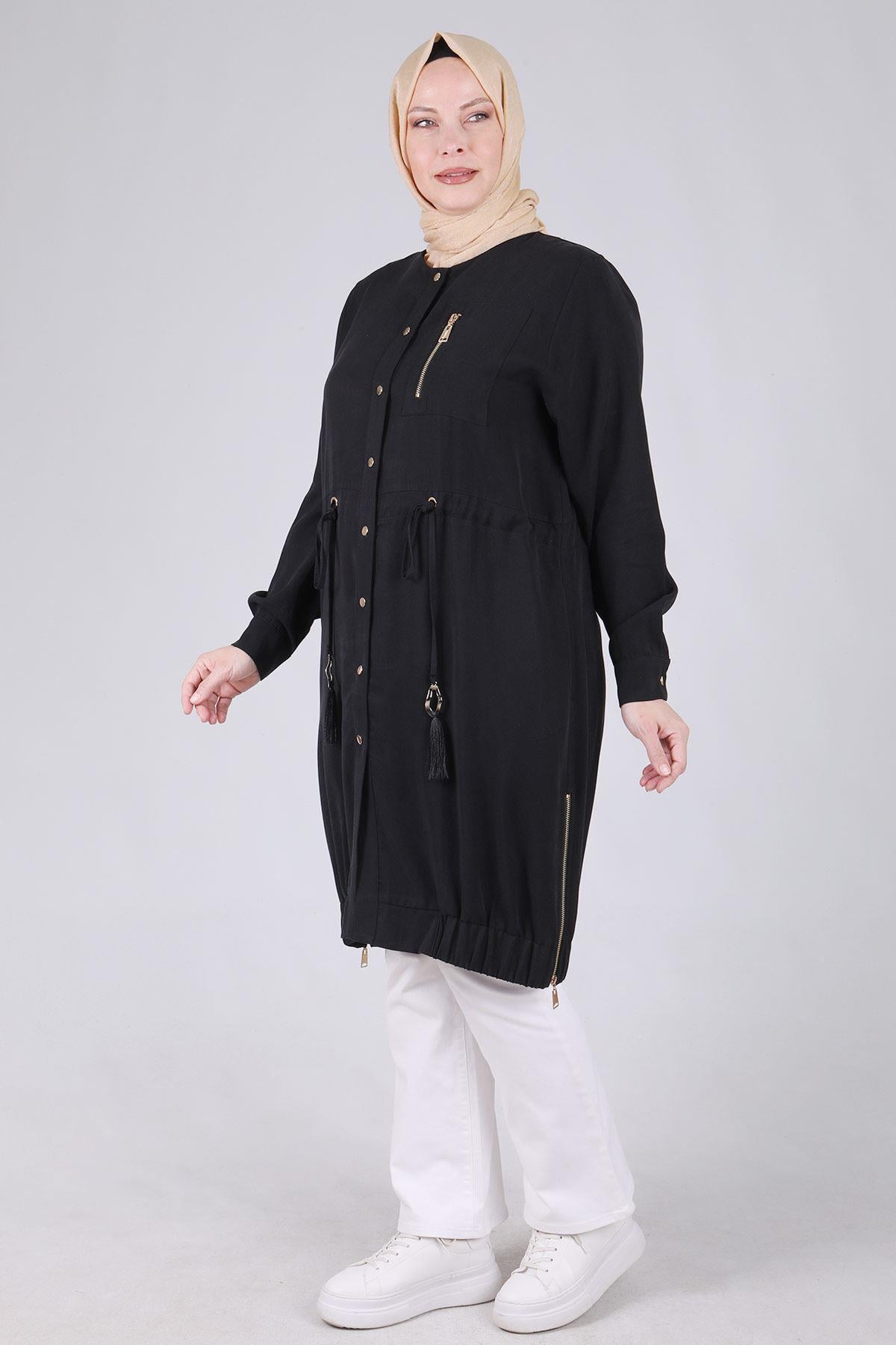 Behrem Büyük Beden Çıtçıtlı Kap Siyah OTW25097