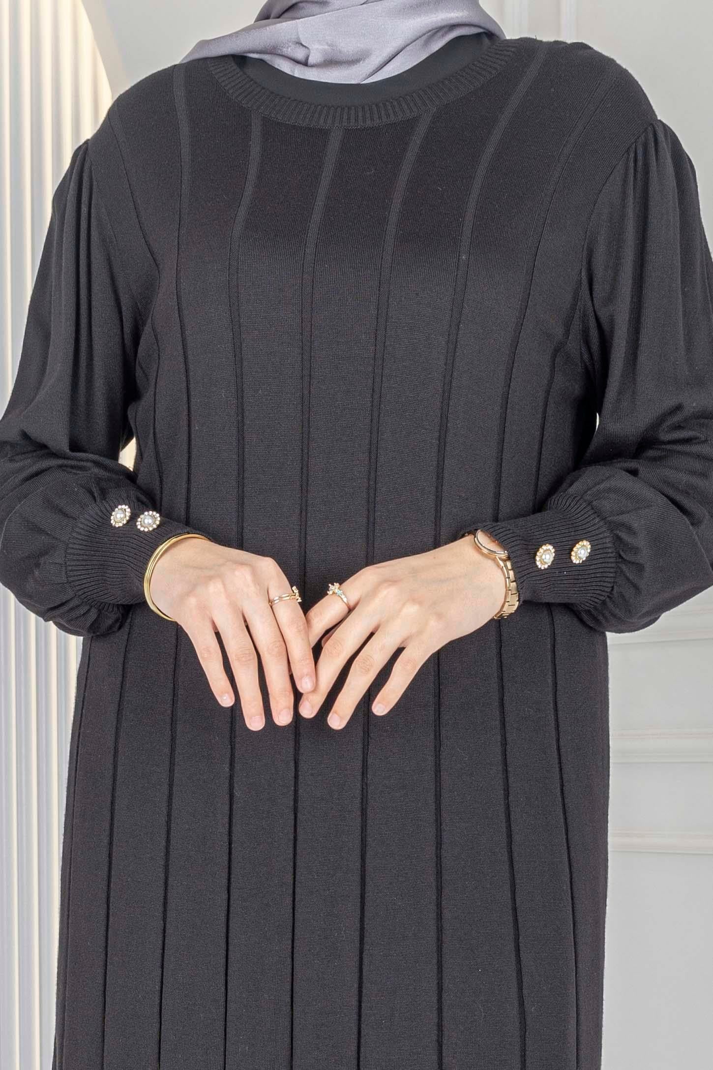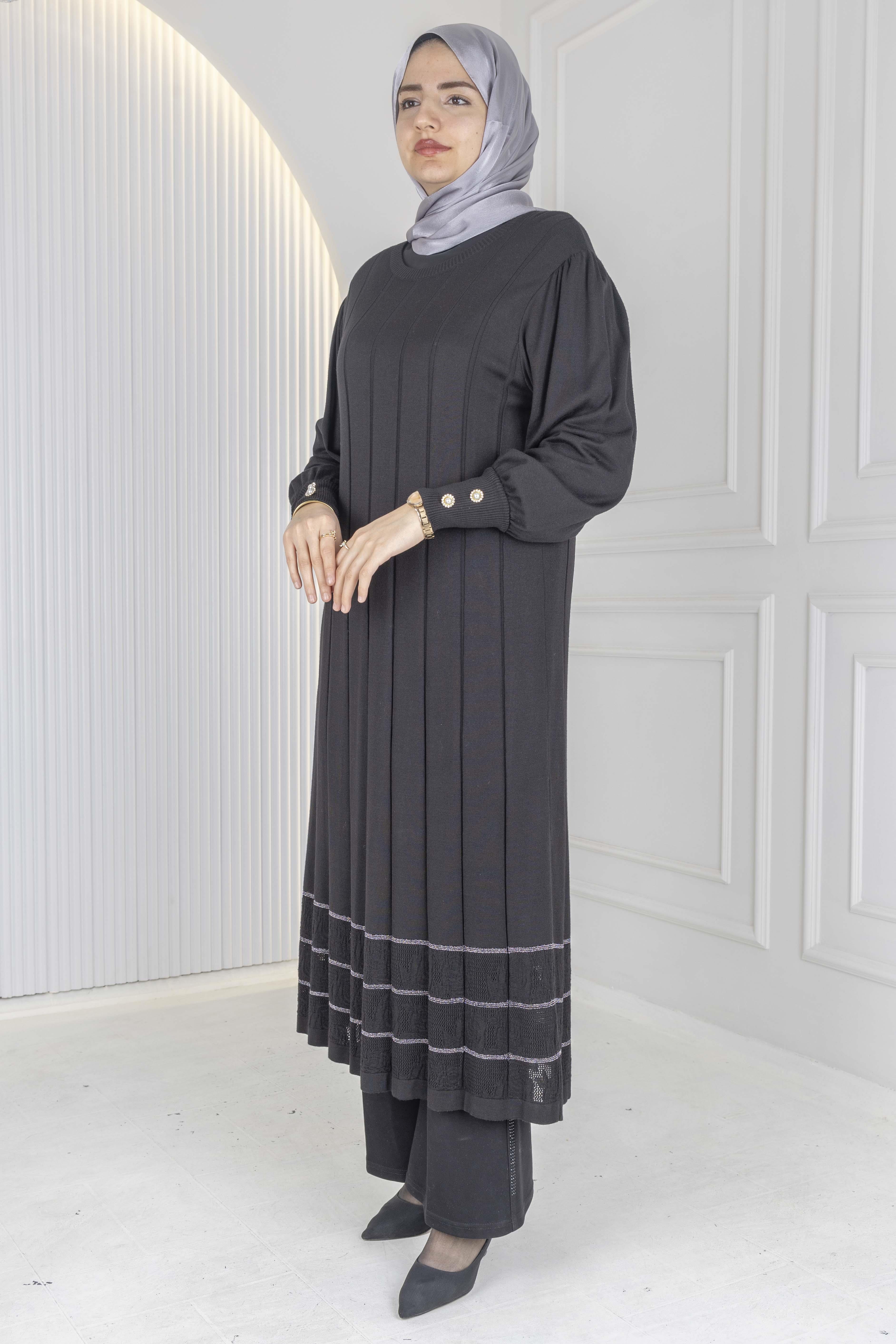 Büyük Beden Çizgili Merserize Triko Elbise & Tunik Siyah-Gümüş OTW13939 Büyük Beden Çizgili Merserize Triko Elbise & Tunik Siyah-Gold OTW13939