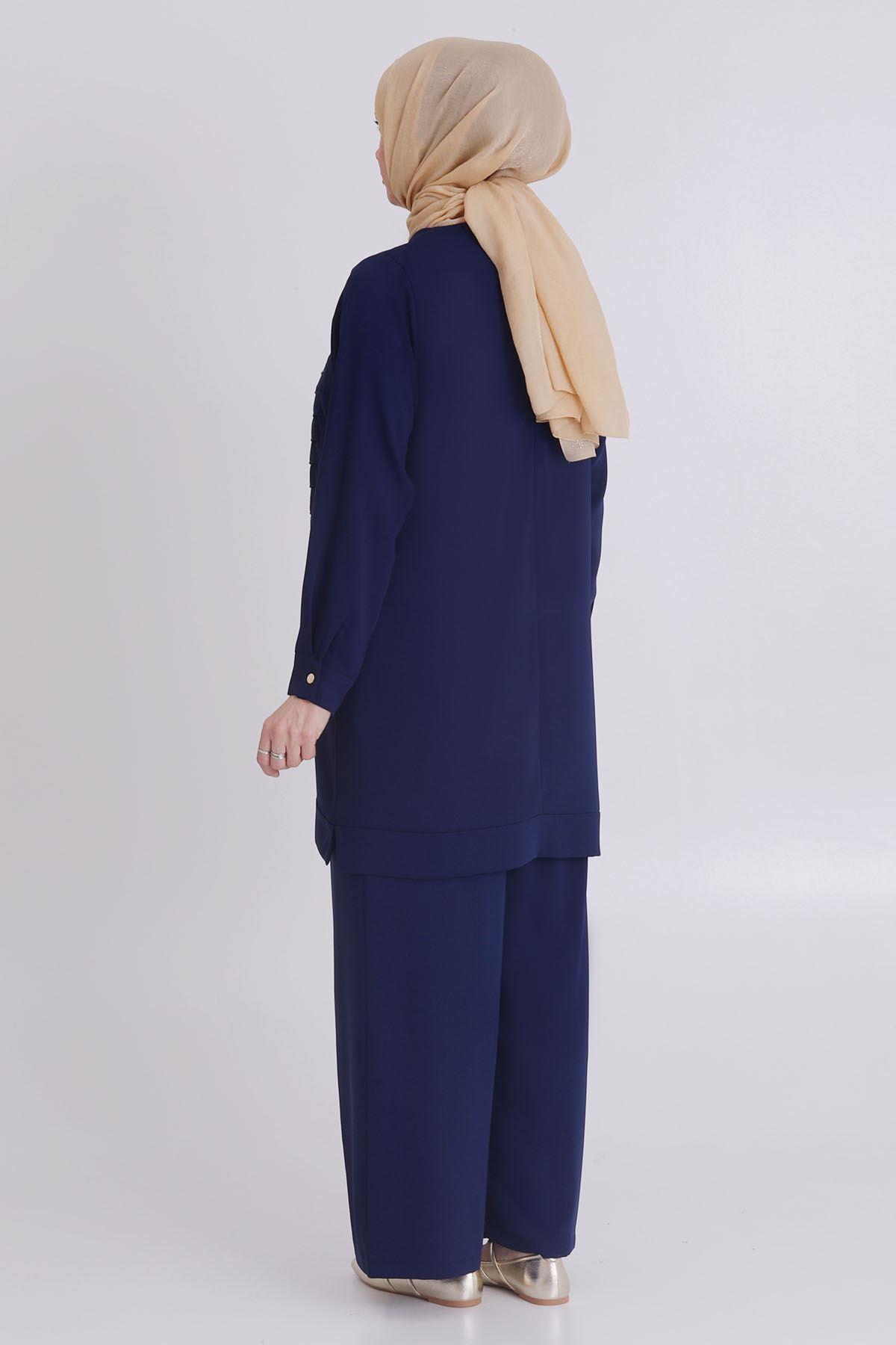 Ürün Detayları: Sıfır yaka modelimizin kolları manşetlidir. Arkası fermuarlıdır. Çıt çıt aksesuarlıdır. Pantolon beli lastikli ve iki yandan ceplidir