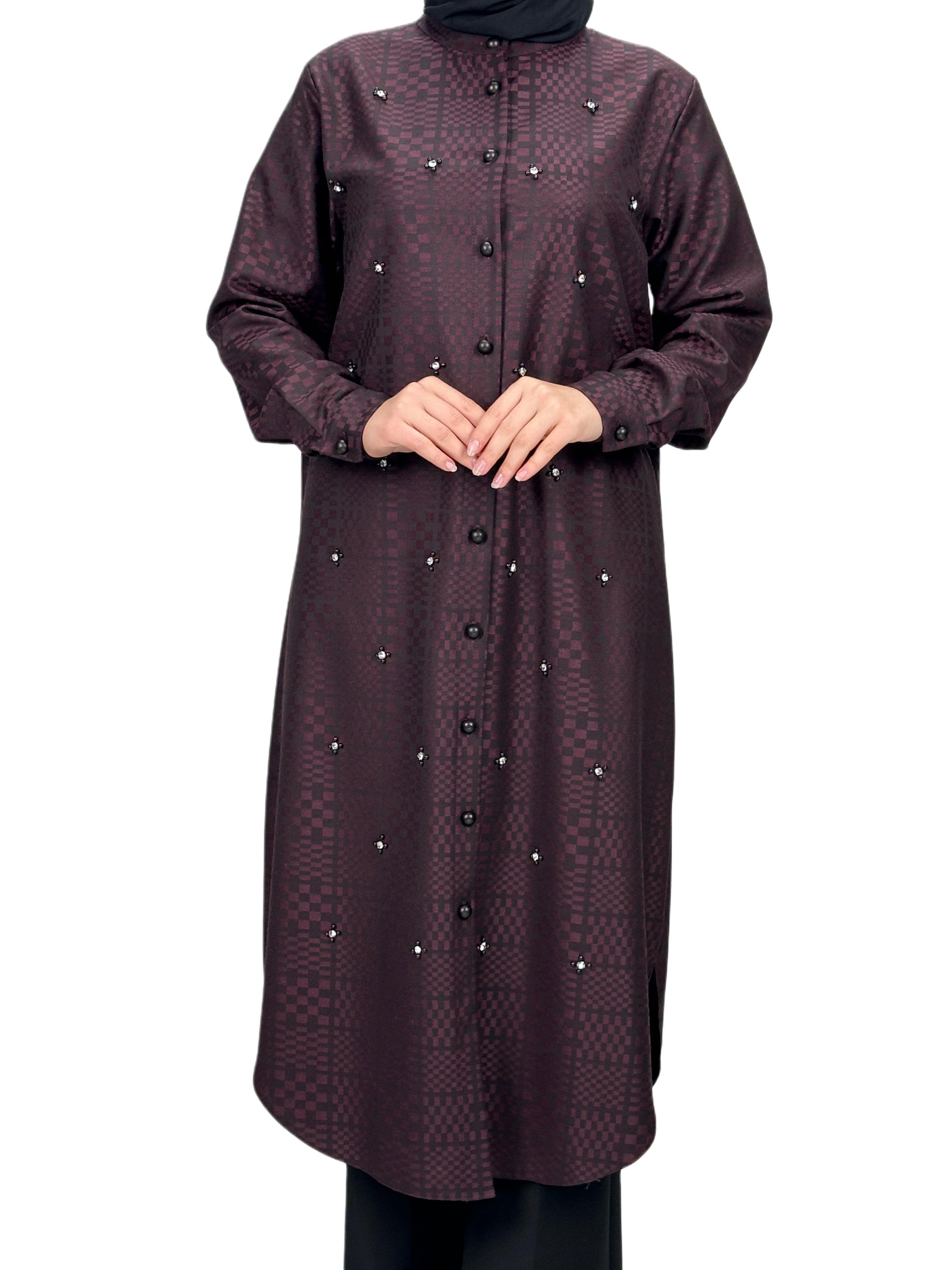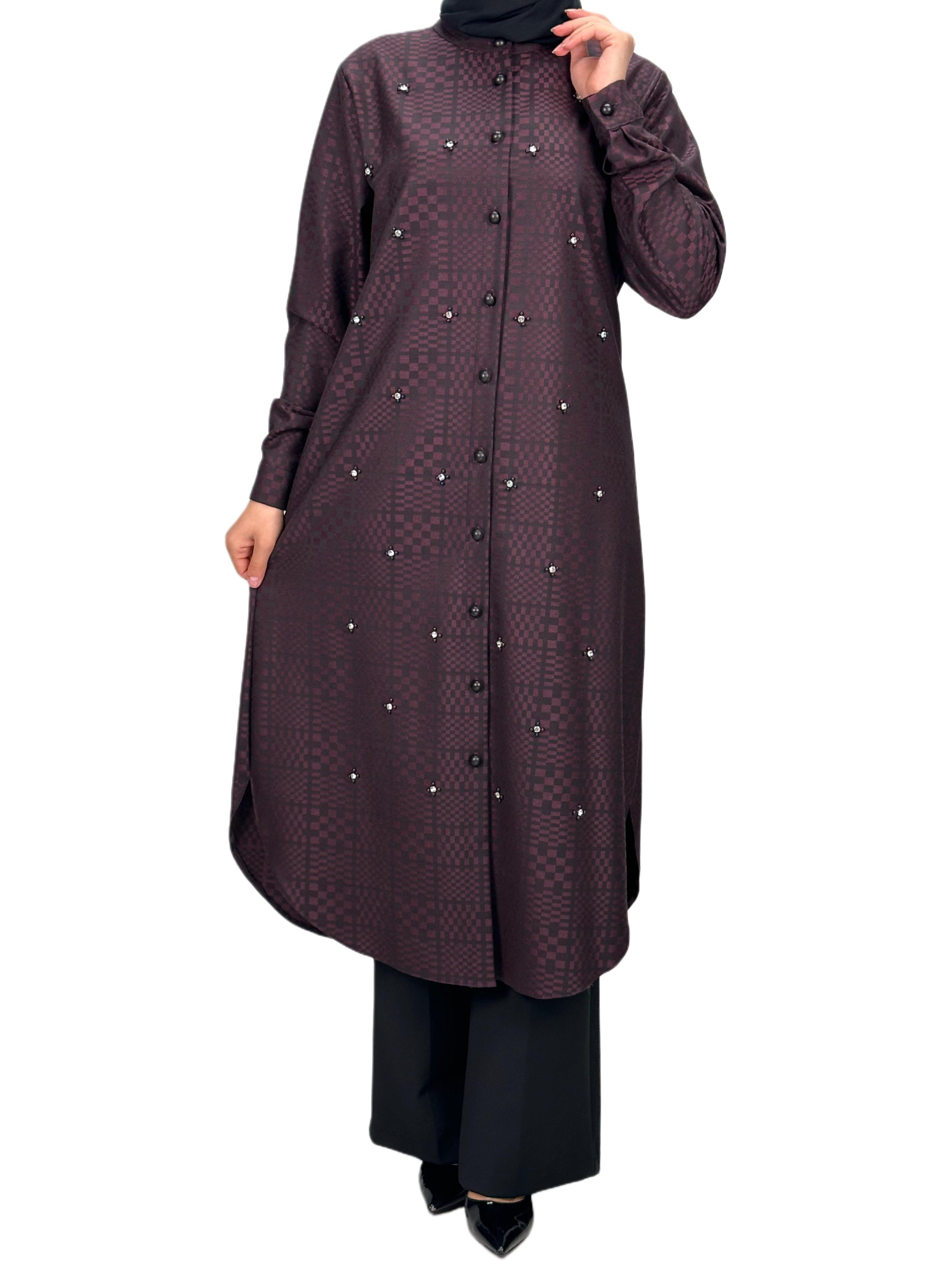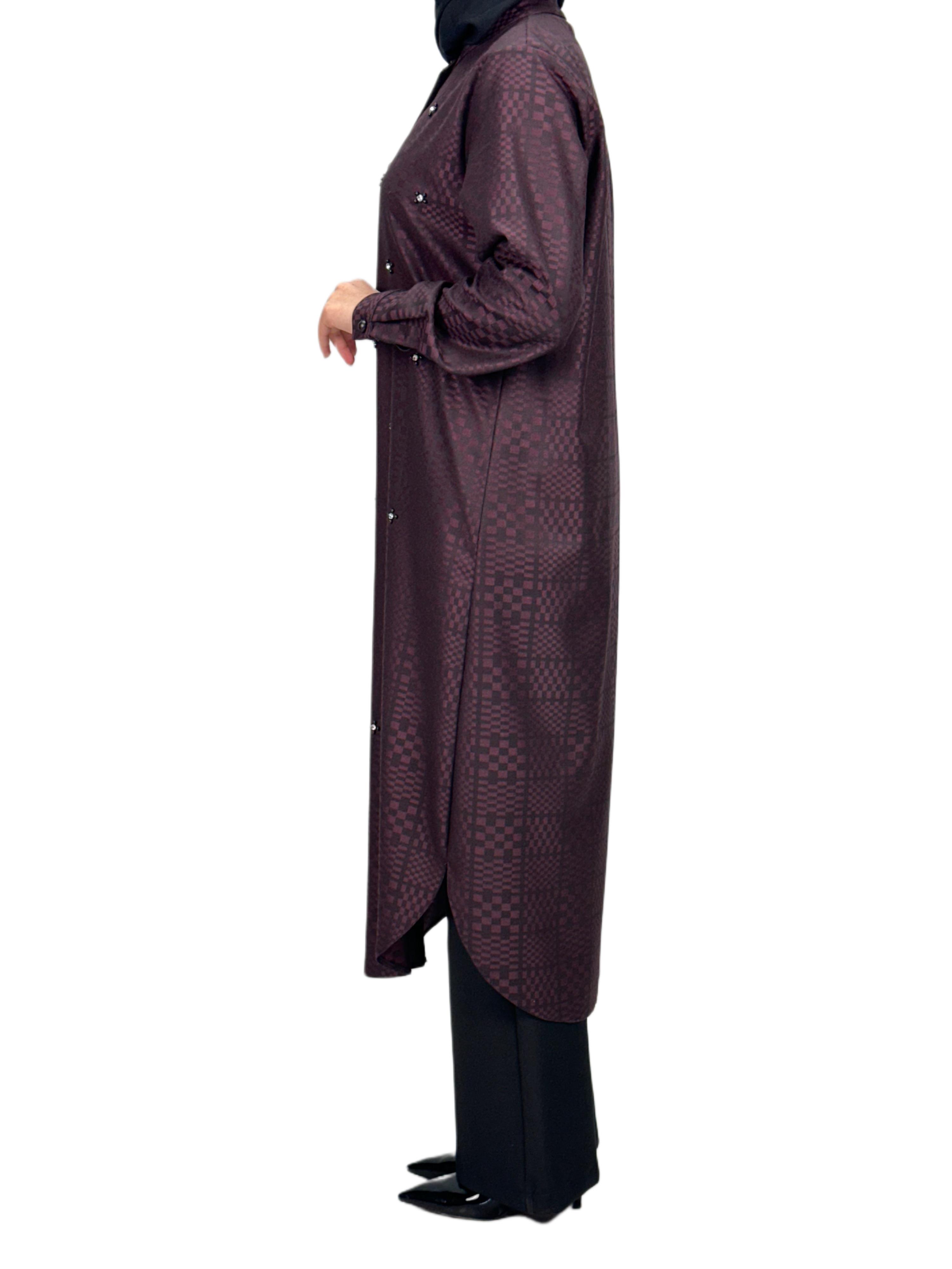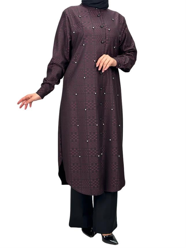 Büyük Beden Ekose Tunik Bordo OTW2103