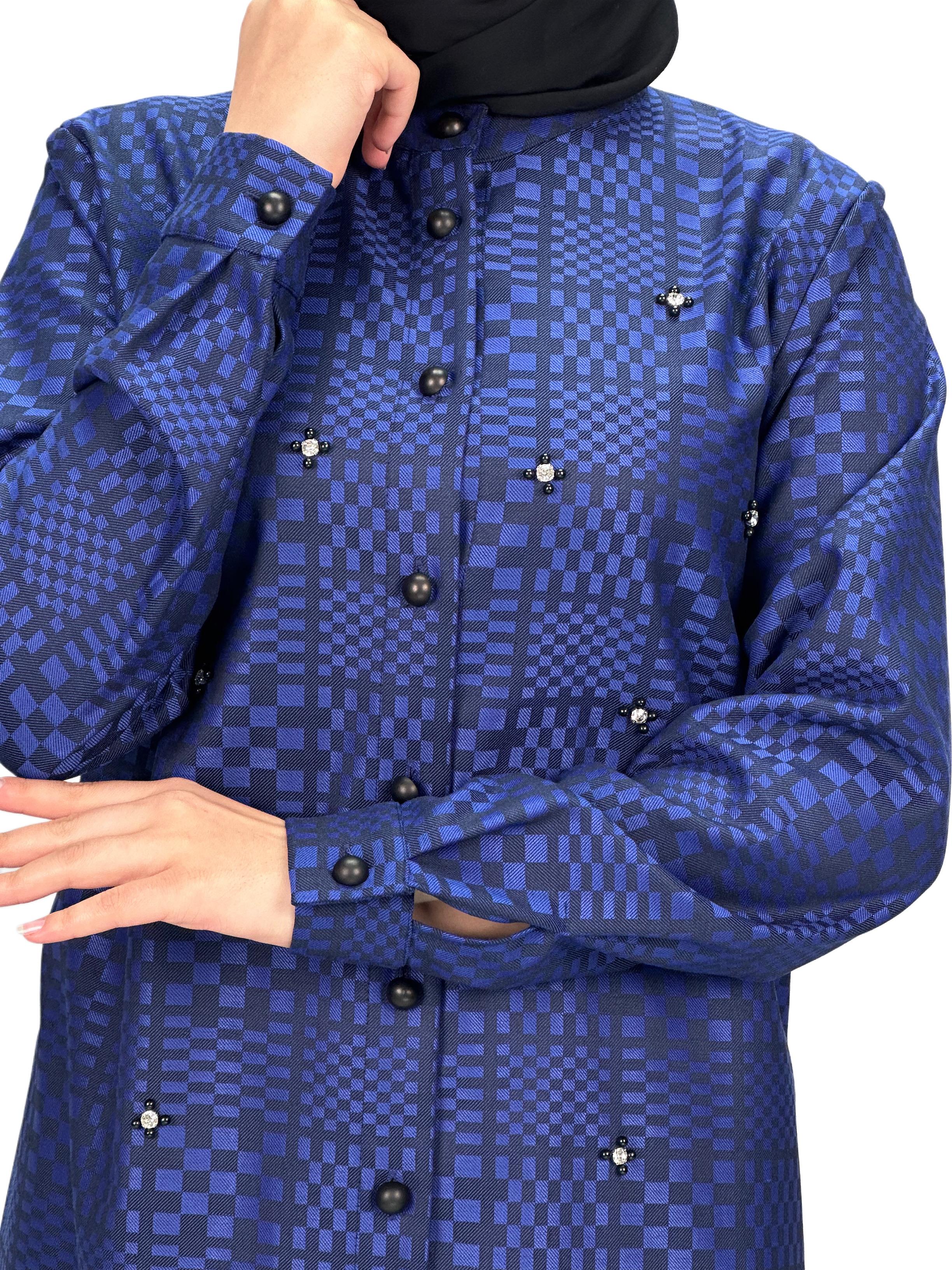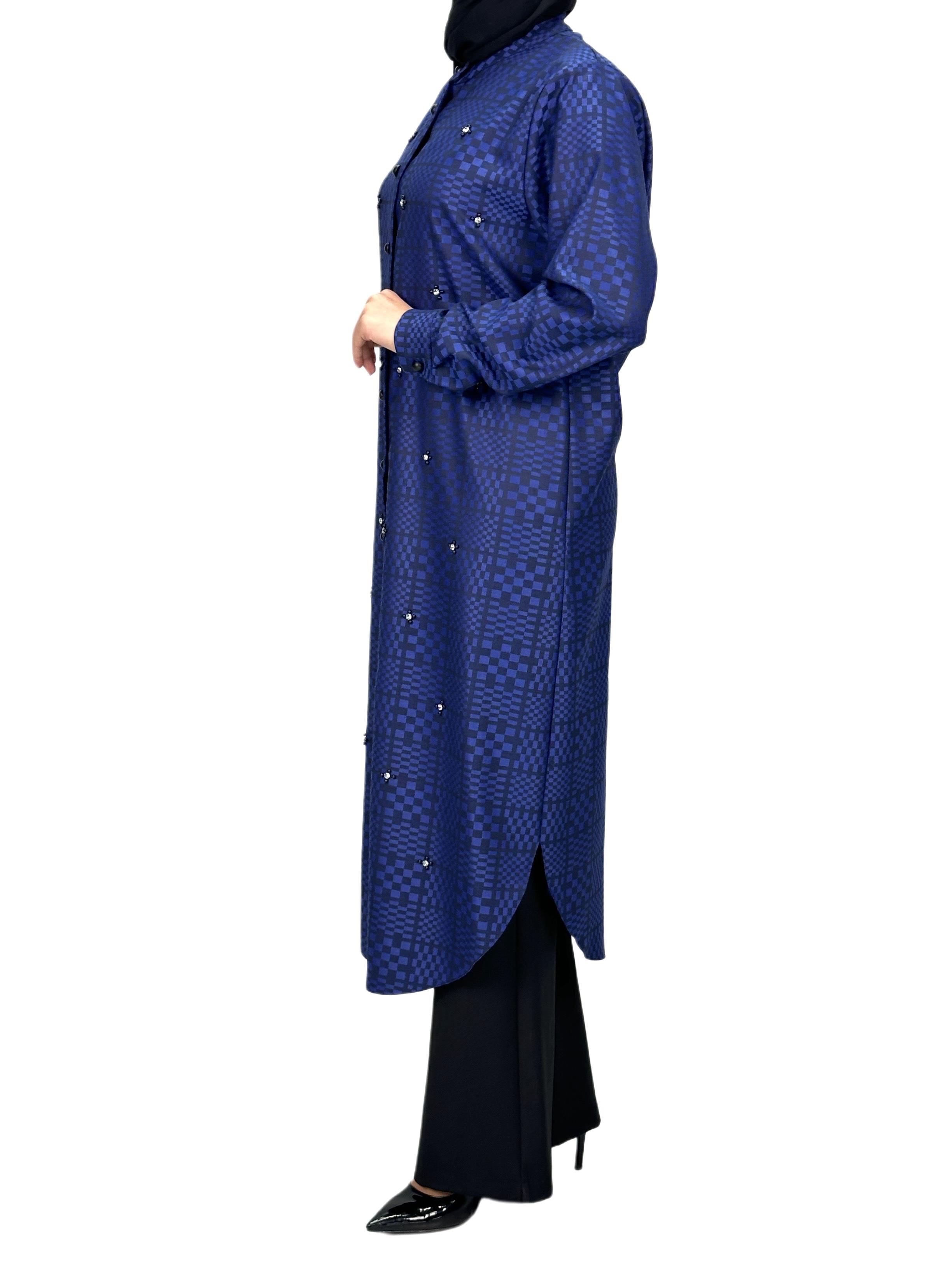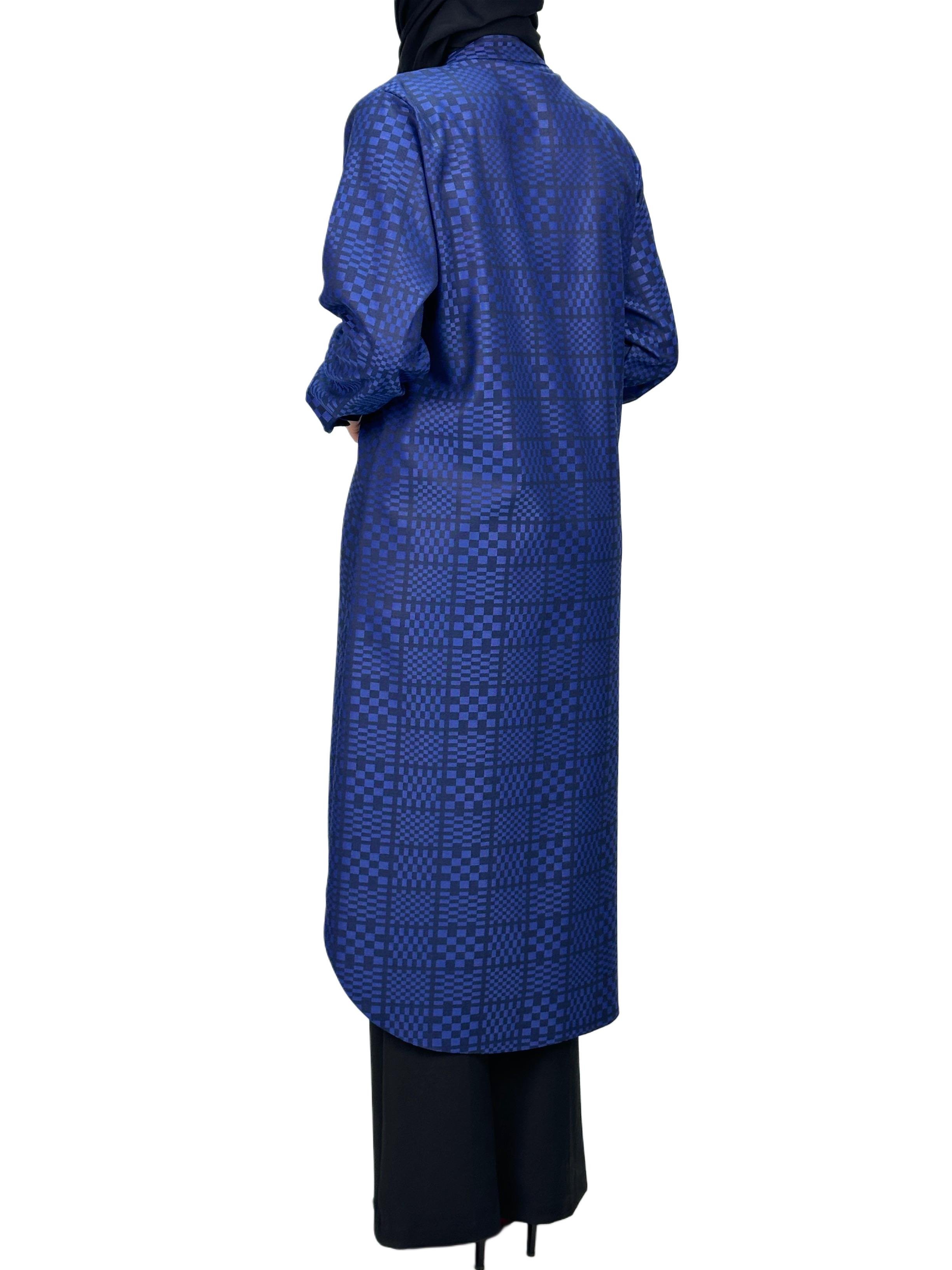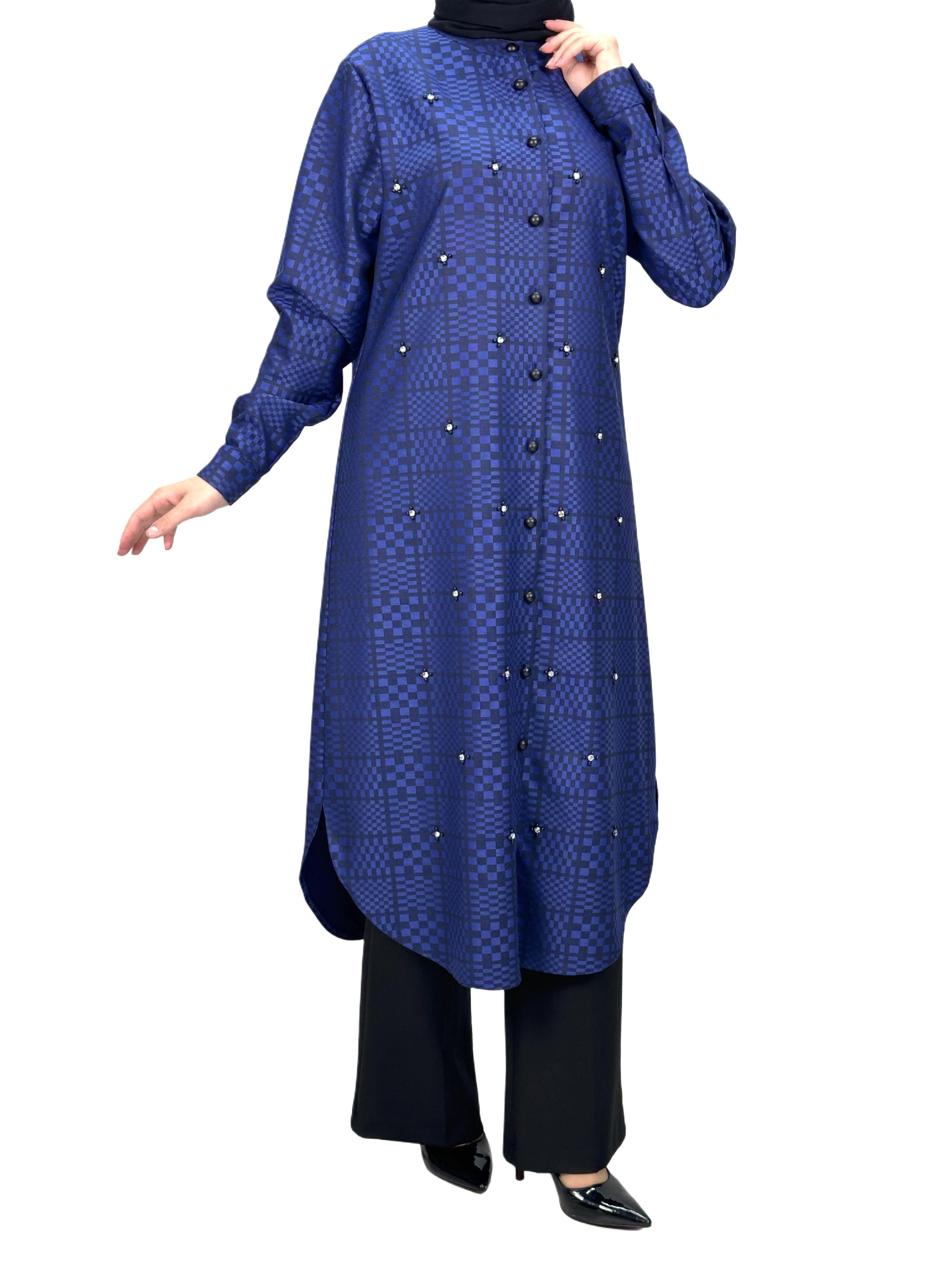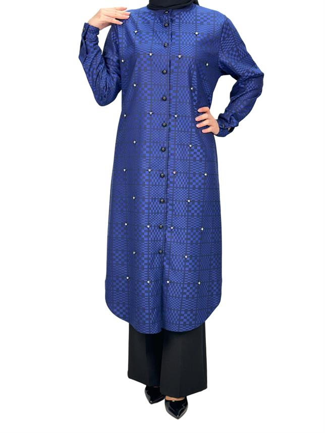 Büyük Beden Ekose Tunik Mavi OTW2103