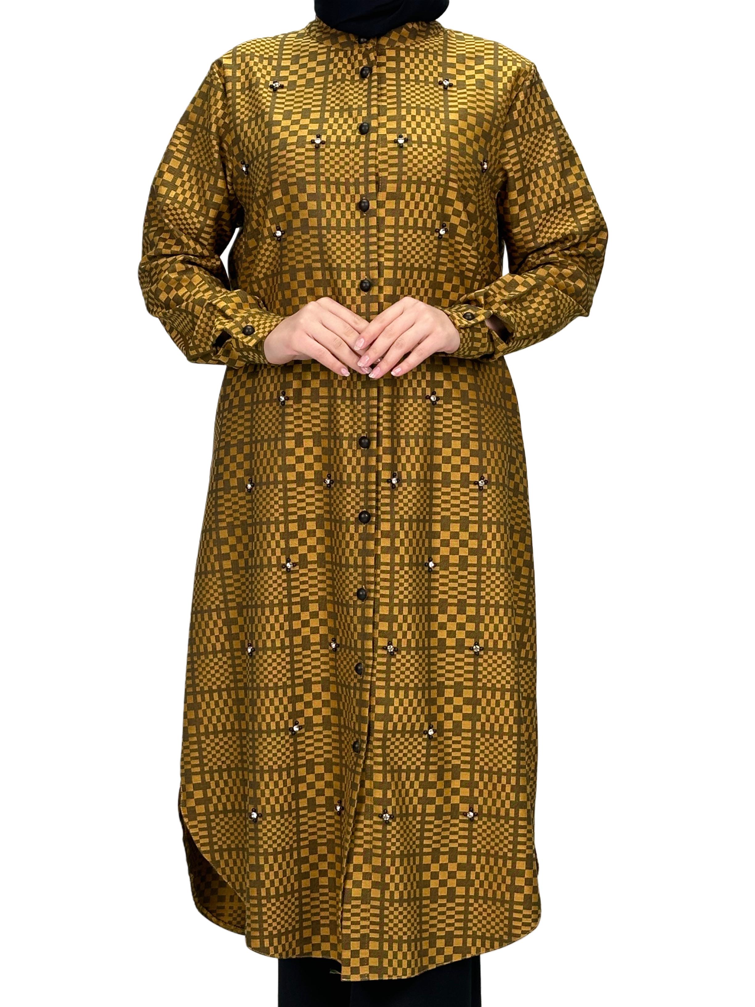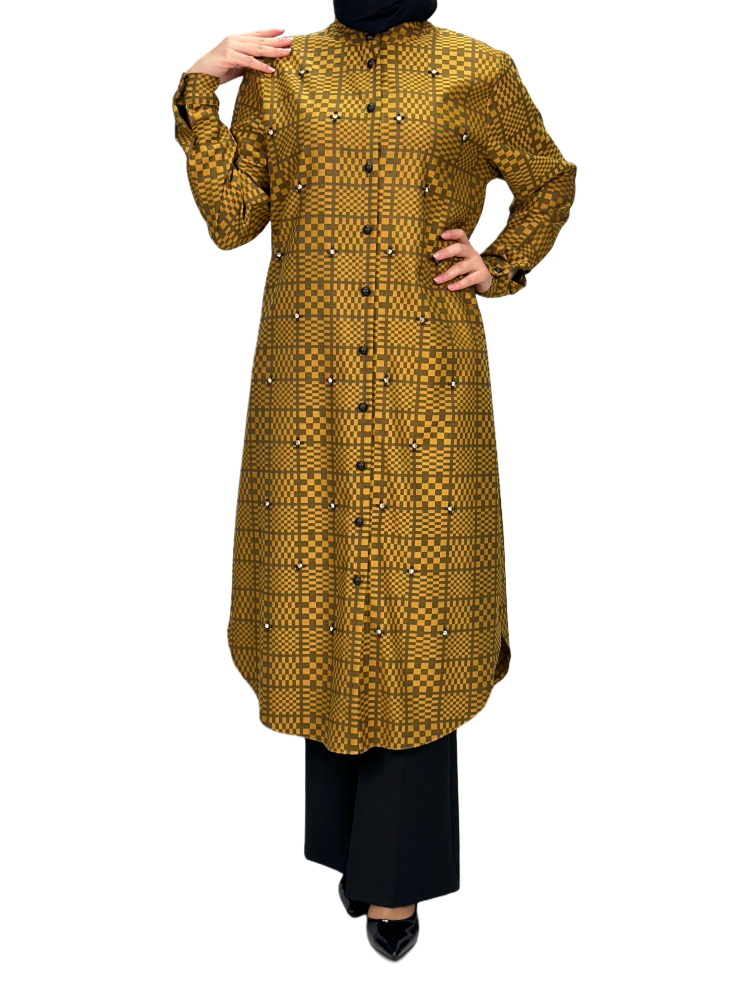 Büyük Beden Ekose Tunik Sarı OTW2103