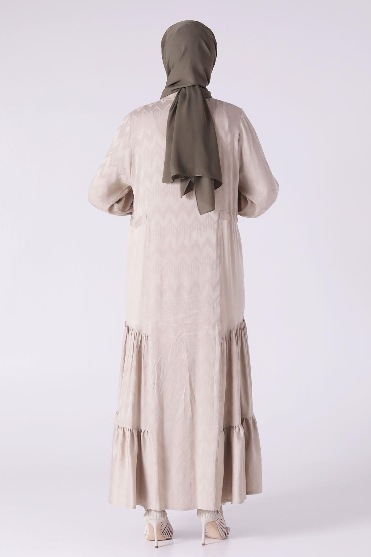 Ürün Detayları: Önden gizli pat düğmeli modelimiz sedef aksesuarlıdır. Eteği büzgü detaylıdır.