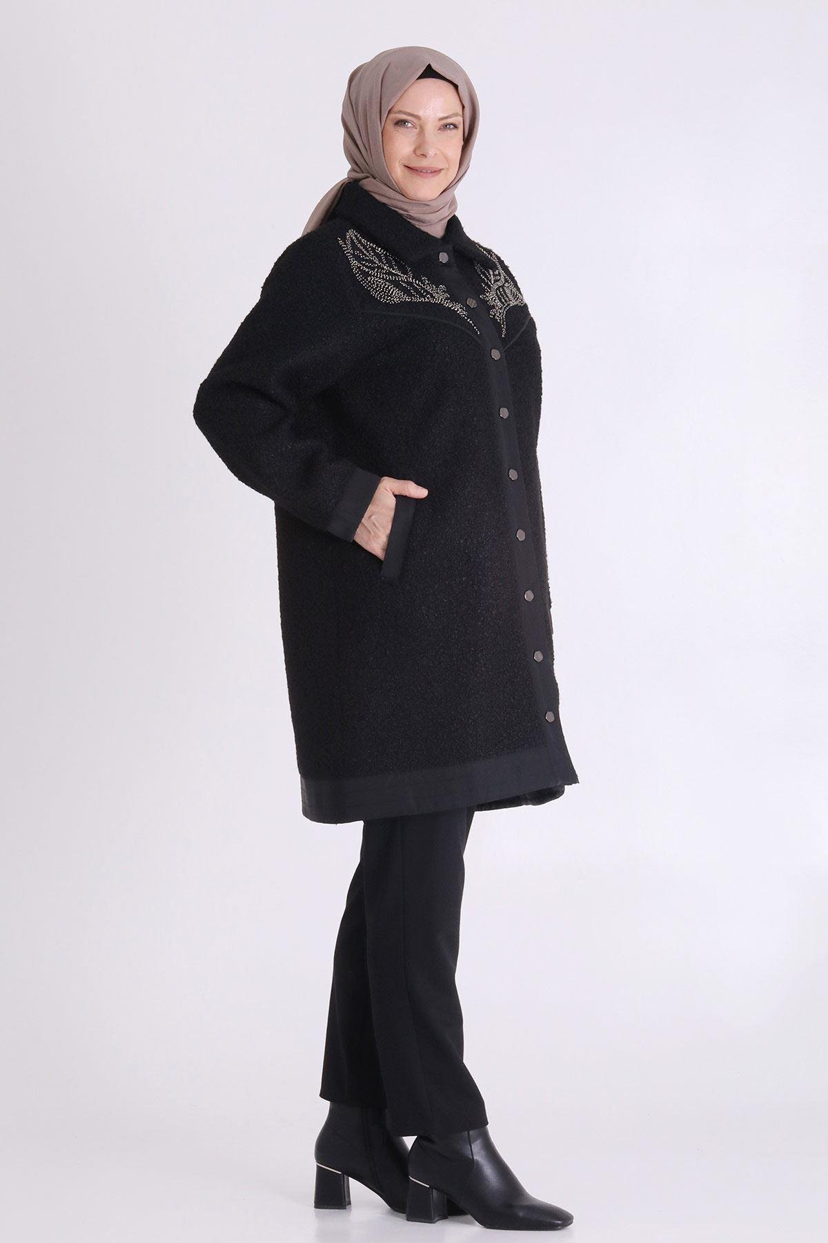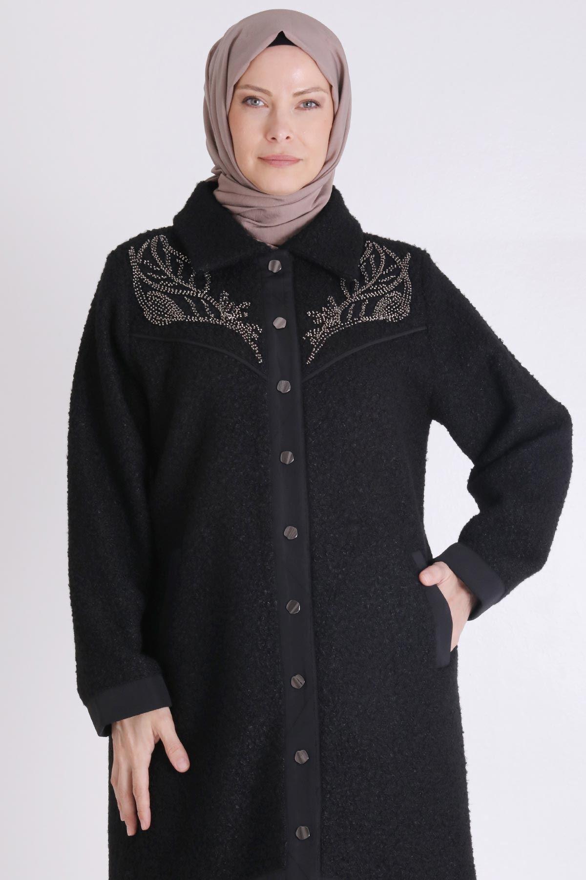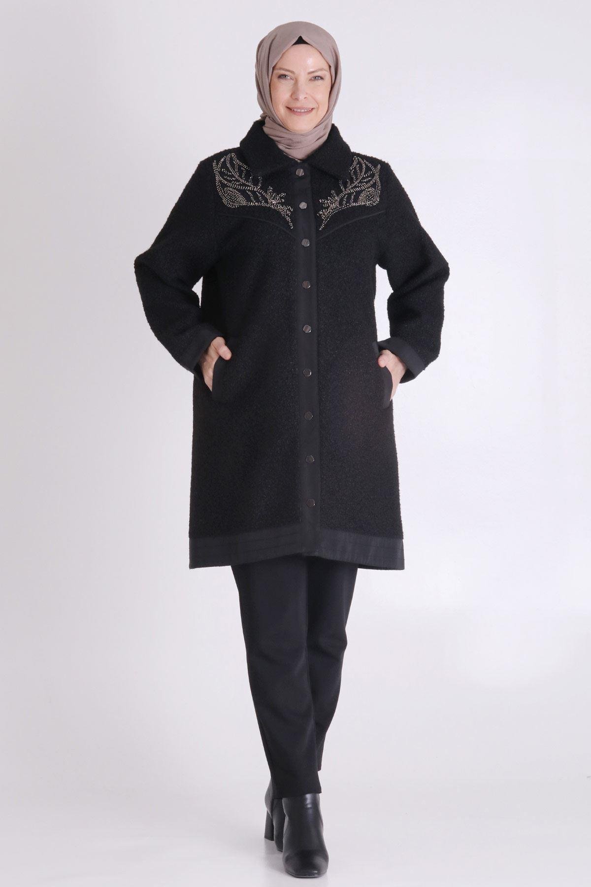 Büyük Beden Tesettür Buklet KapÜrün Detayları: Yakalı, çıtçıtlı ürünümüz işleme aplike detayı ile hareketlendirilmiştir. Cepli olup iç astarlıdır.Kumaş Türü: BukletKumaş İçeriği: %100 Polyester