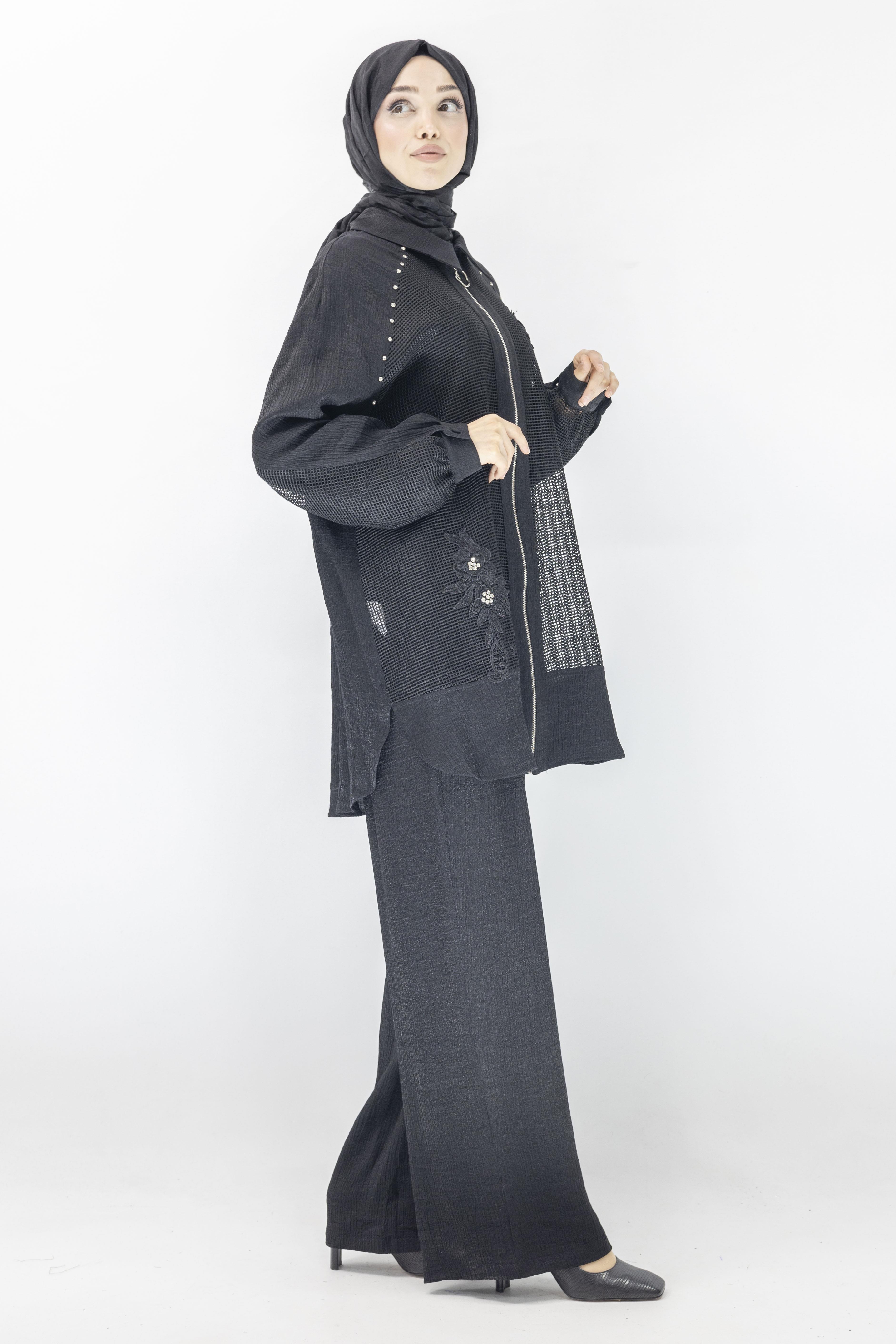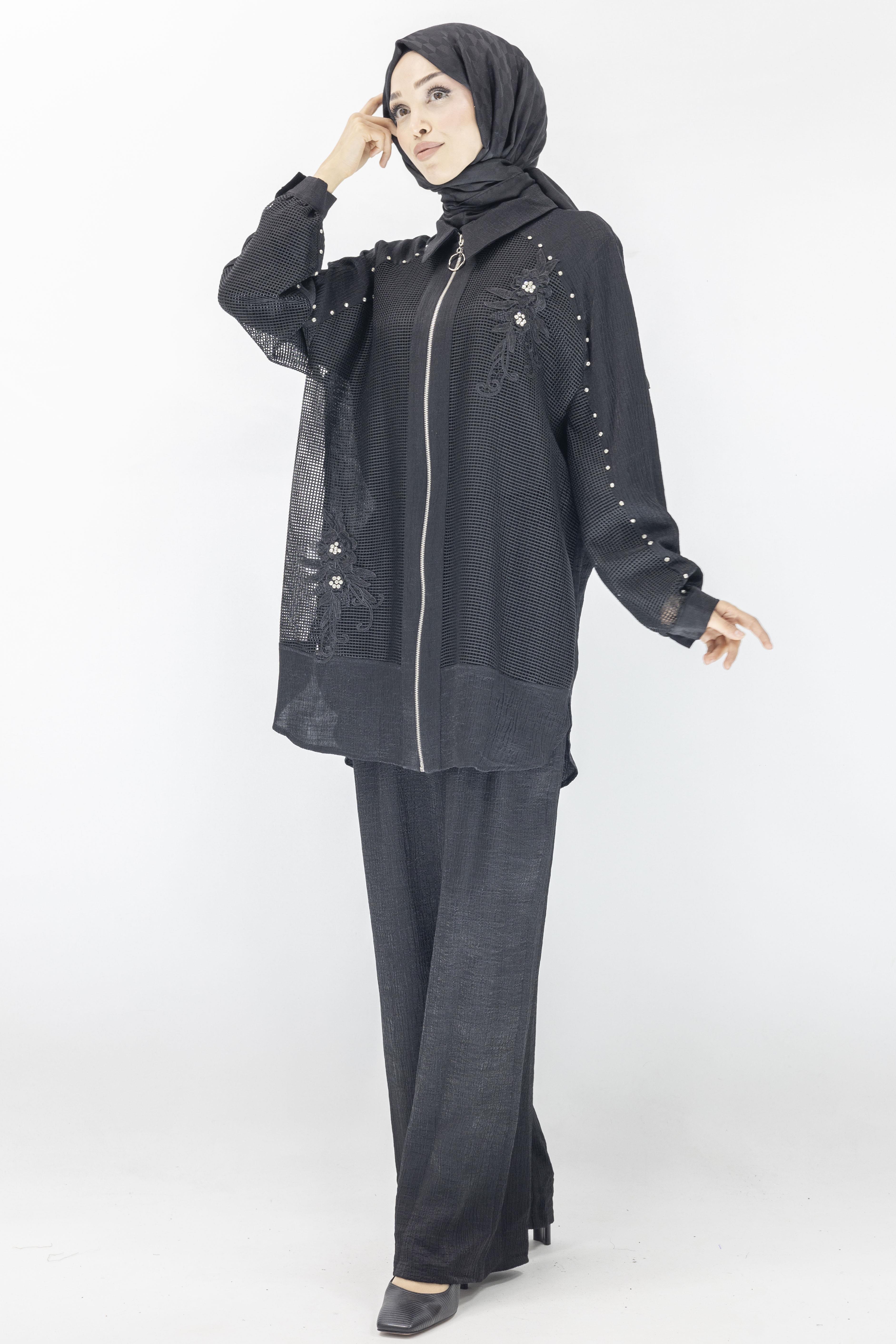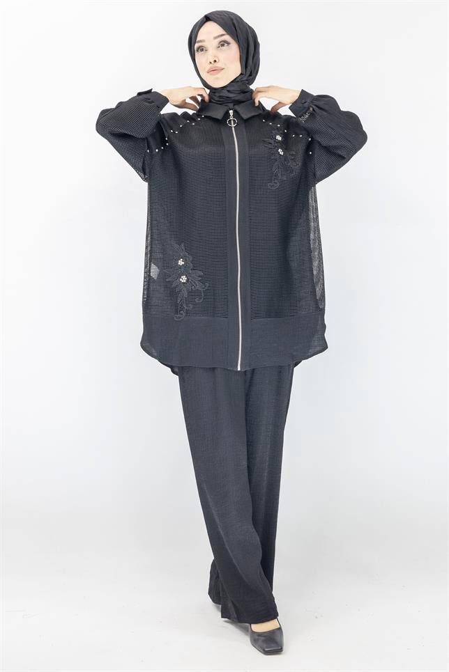 Büyük Beden Fileli Takım Siyah OTW44845