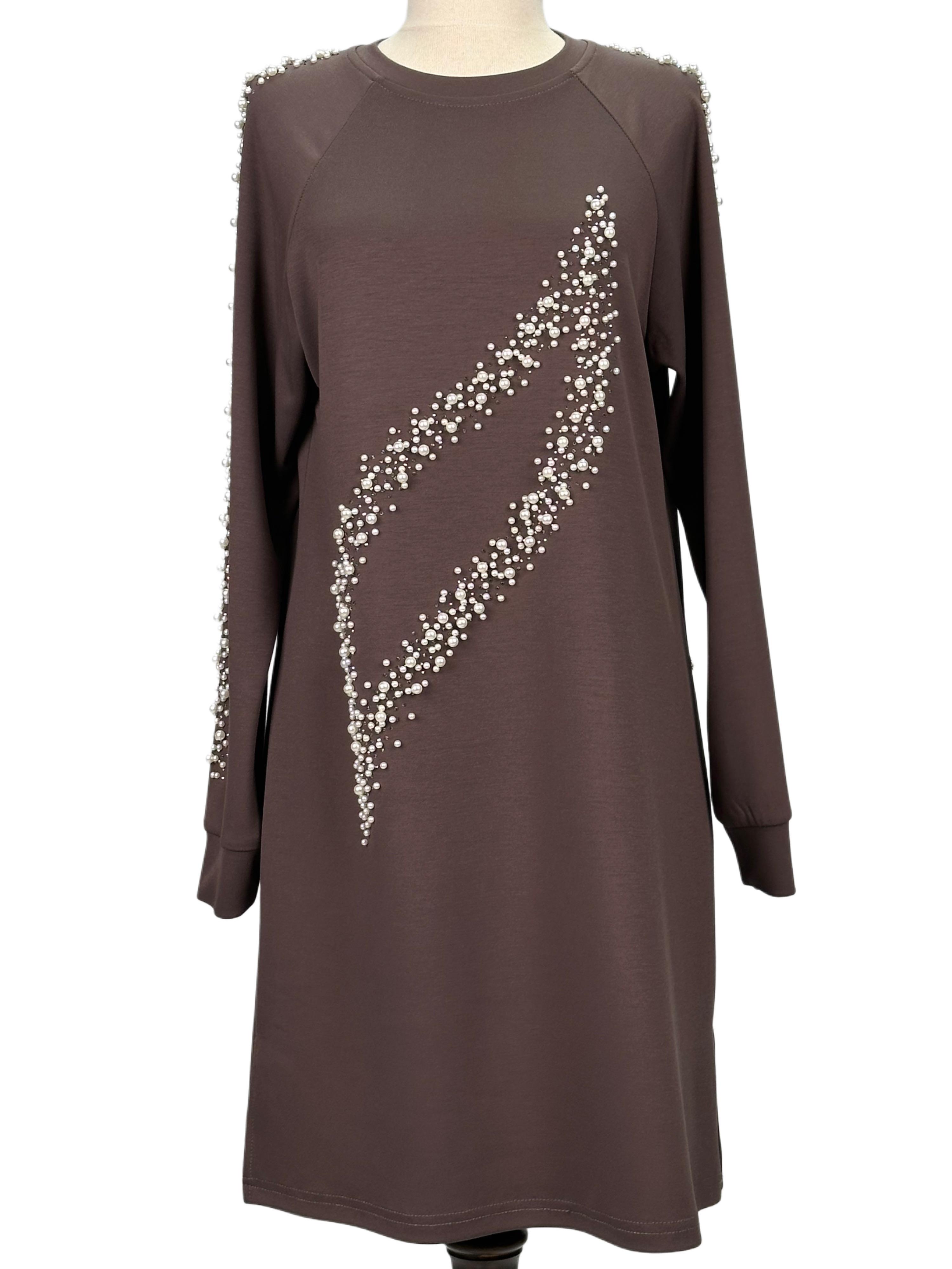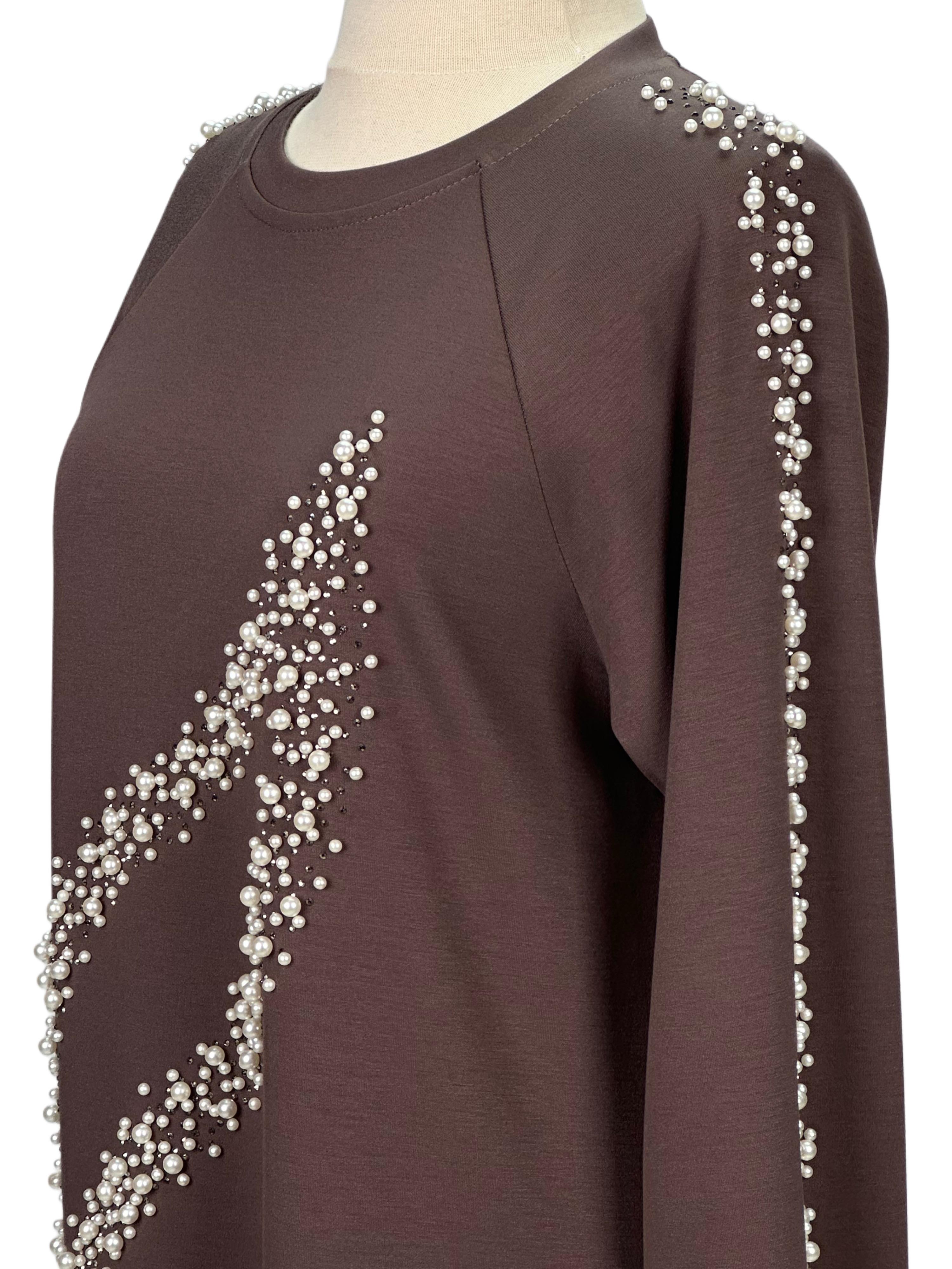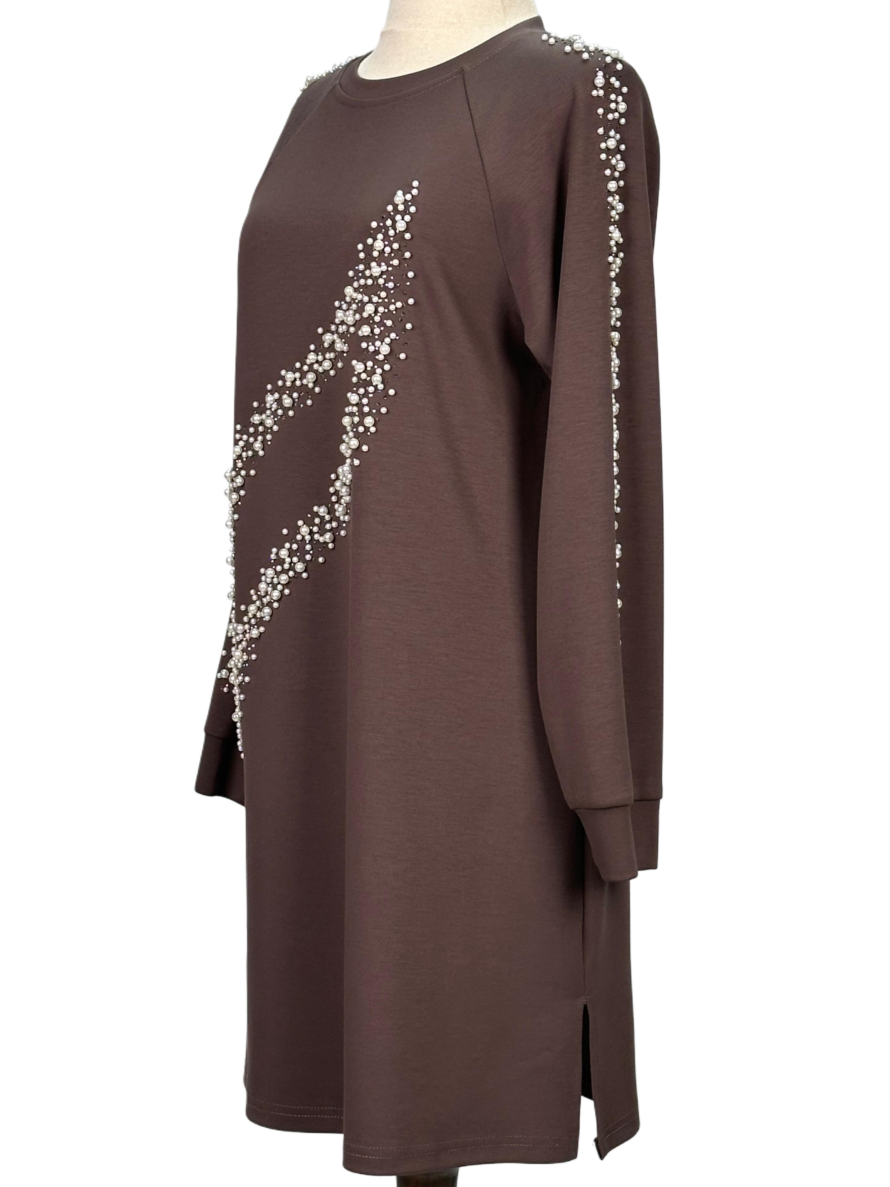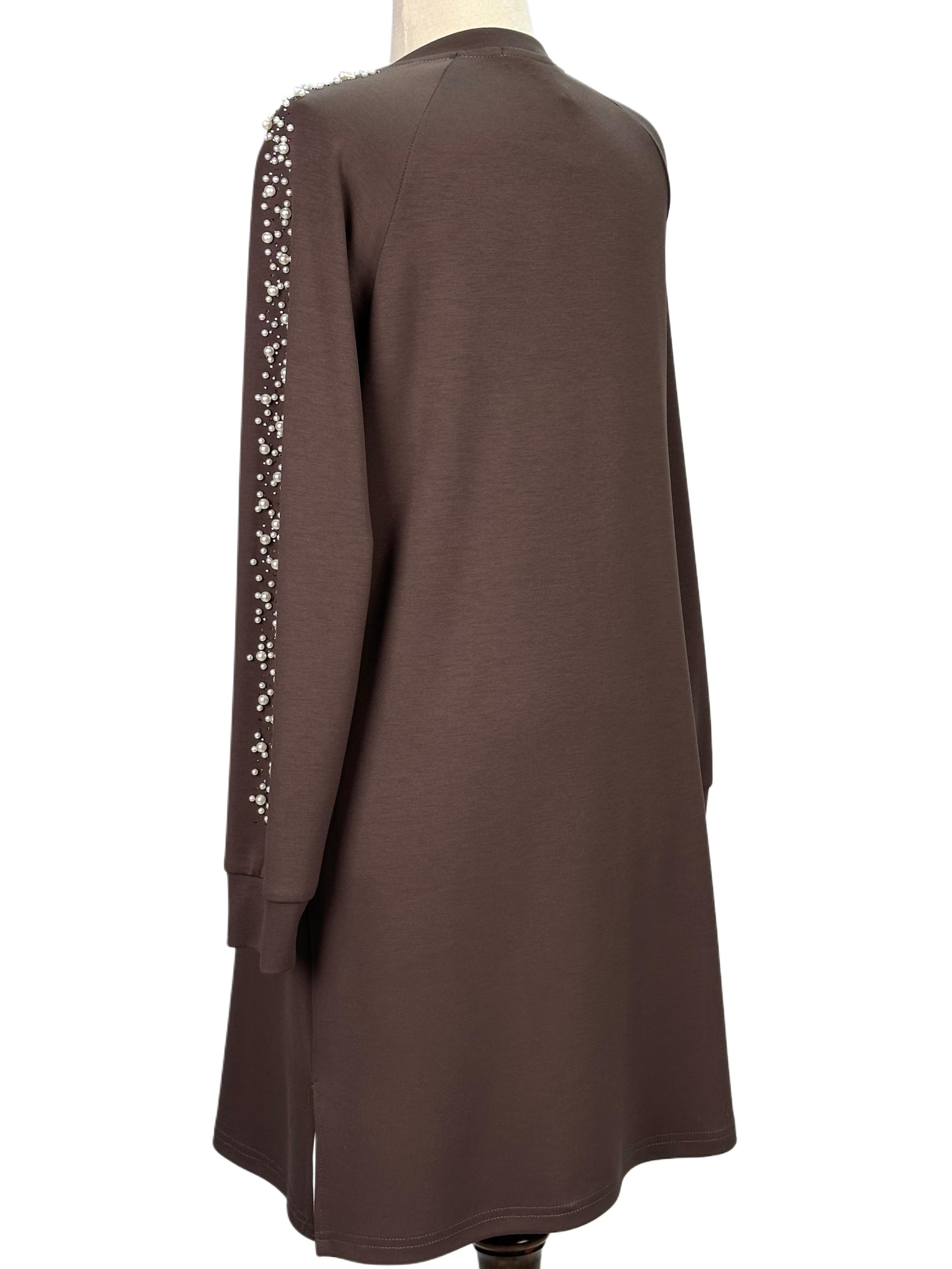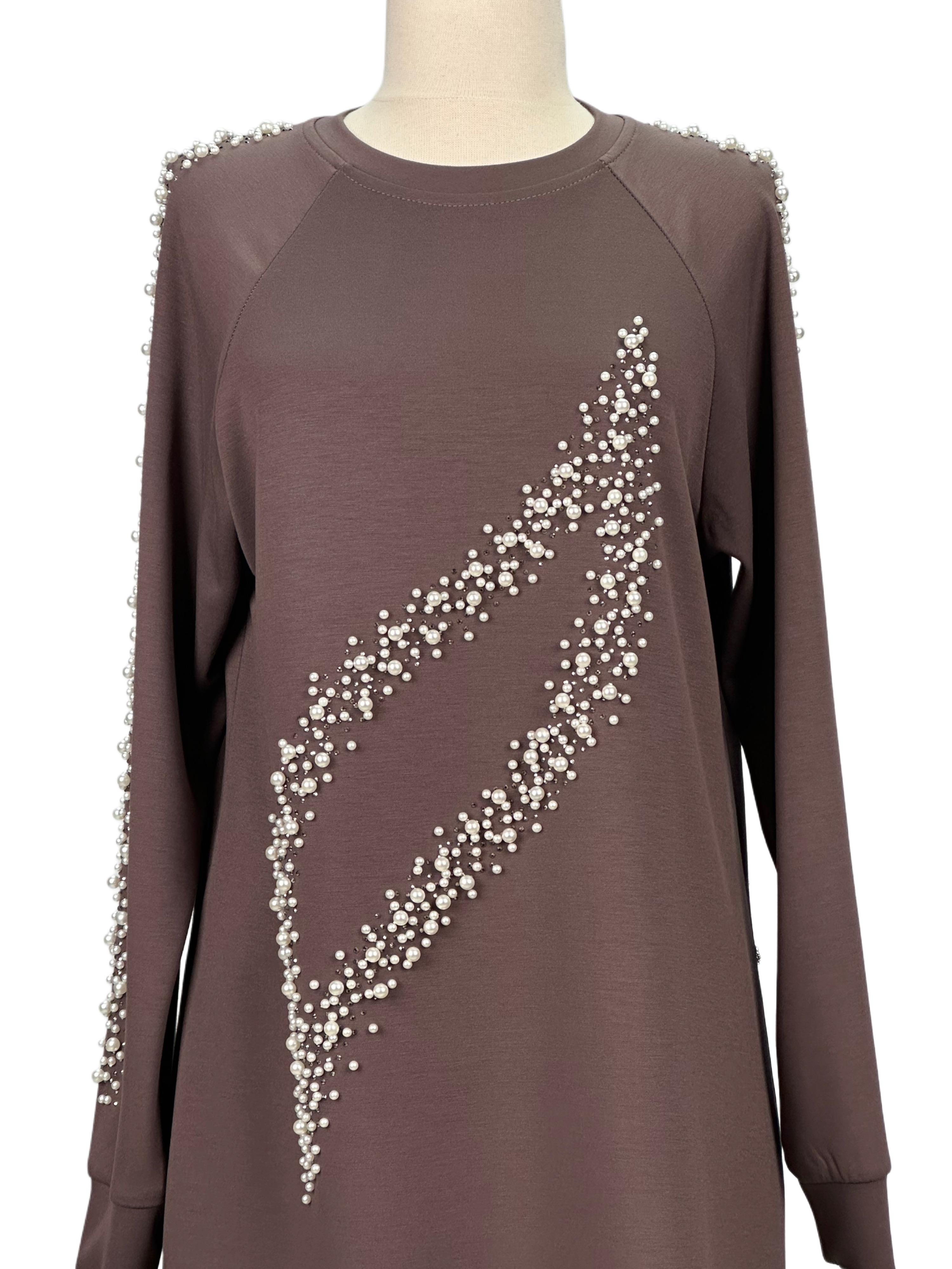 Büyük Beden İnci Detaylı Tunik Kahve OTW2131