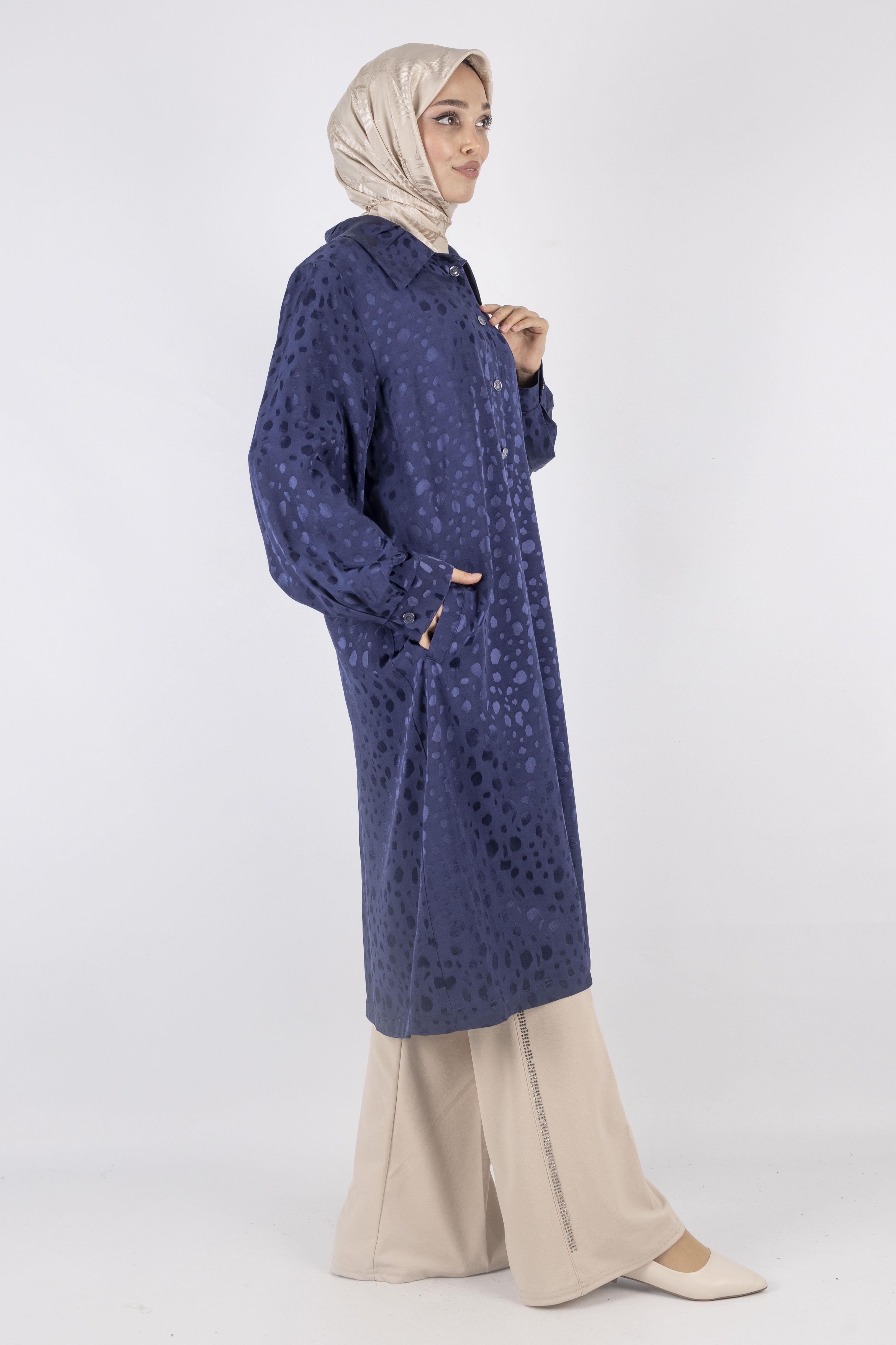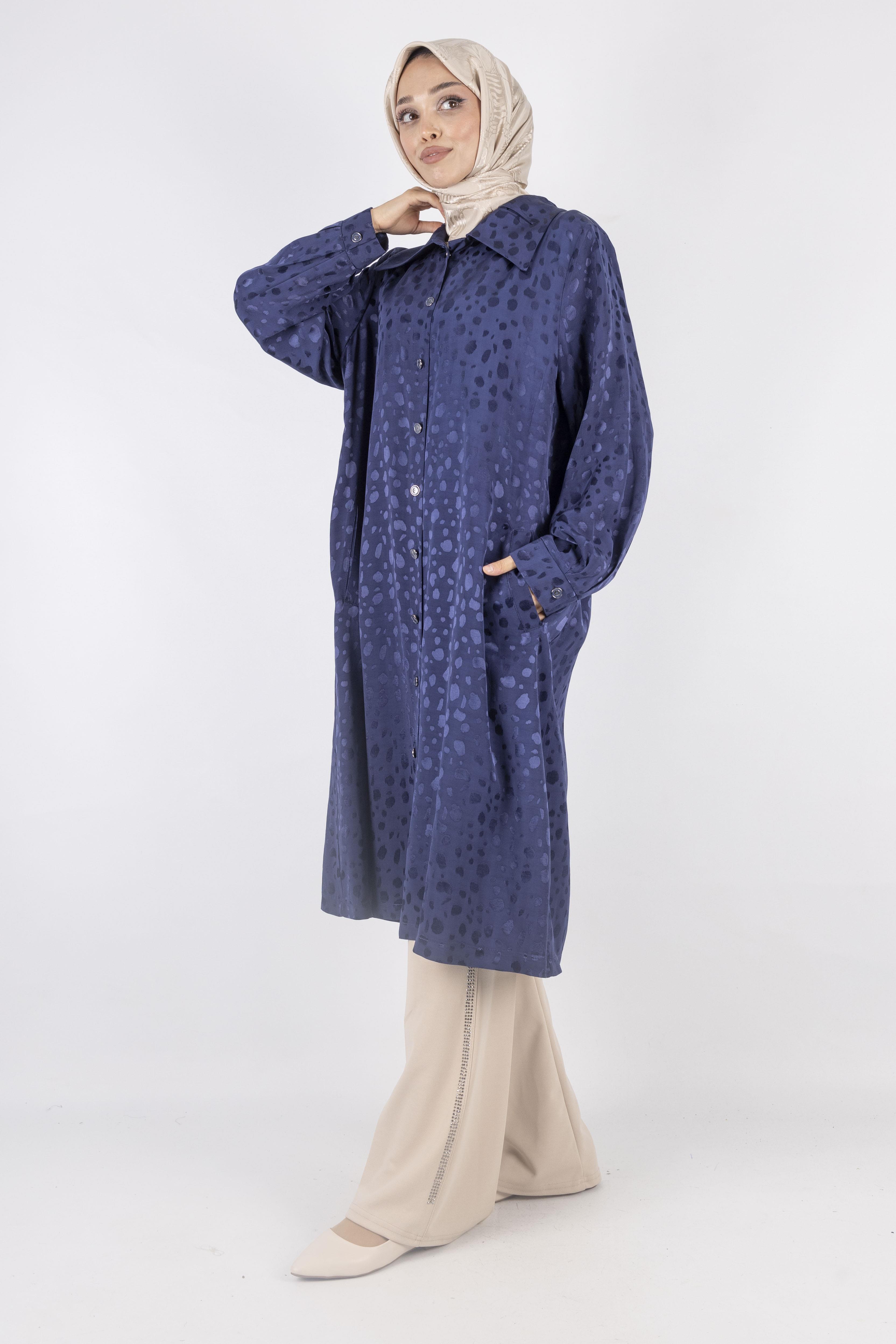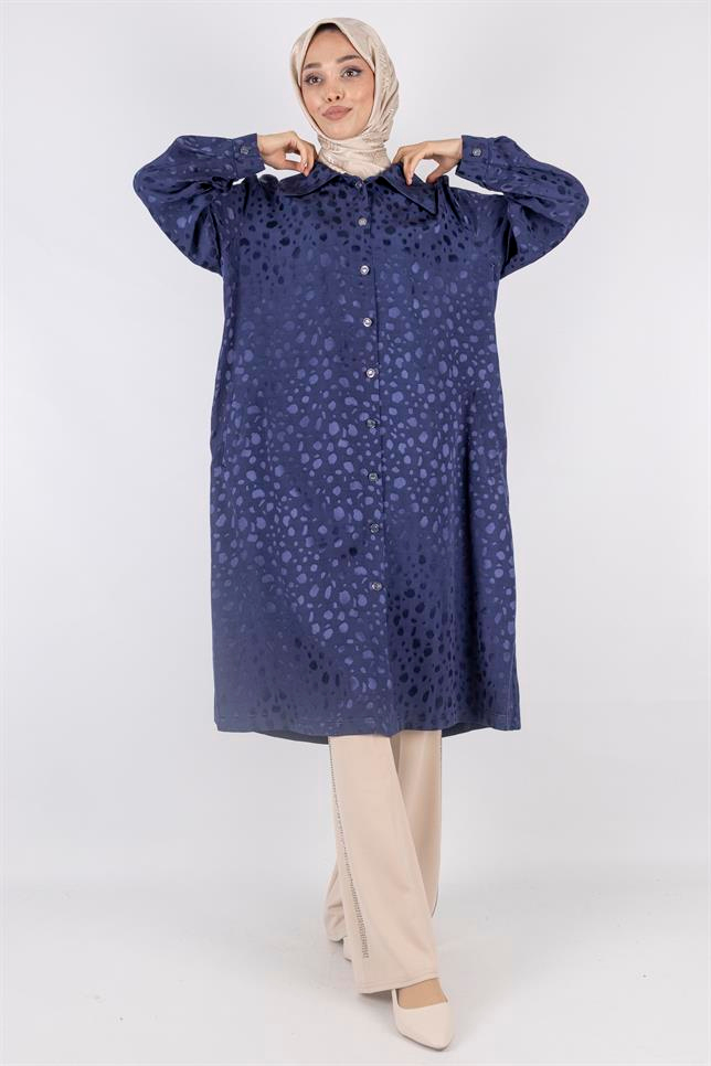 Büyük Beden Jakar Kumaş Tunik Lacivert OTW25246