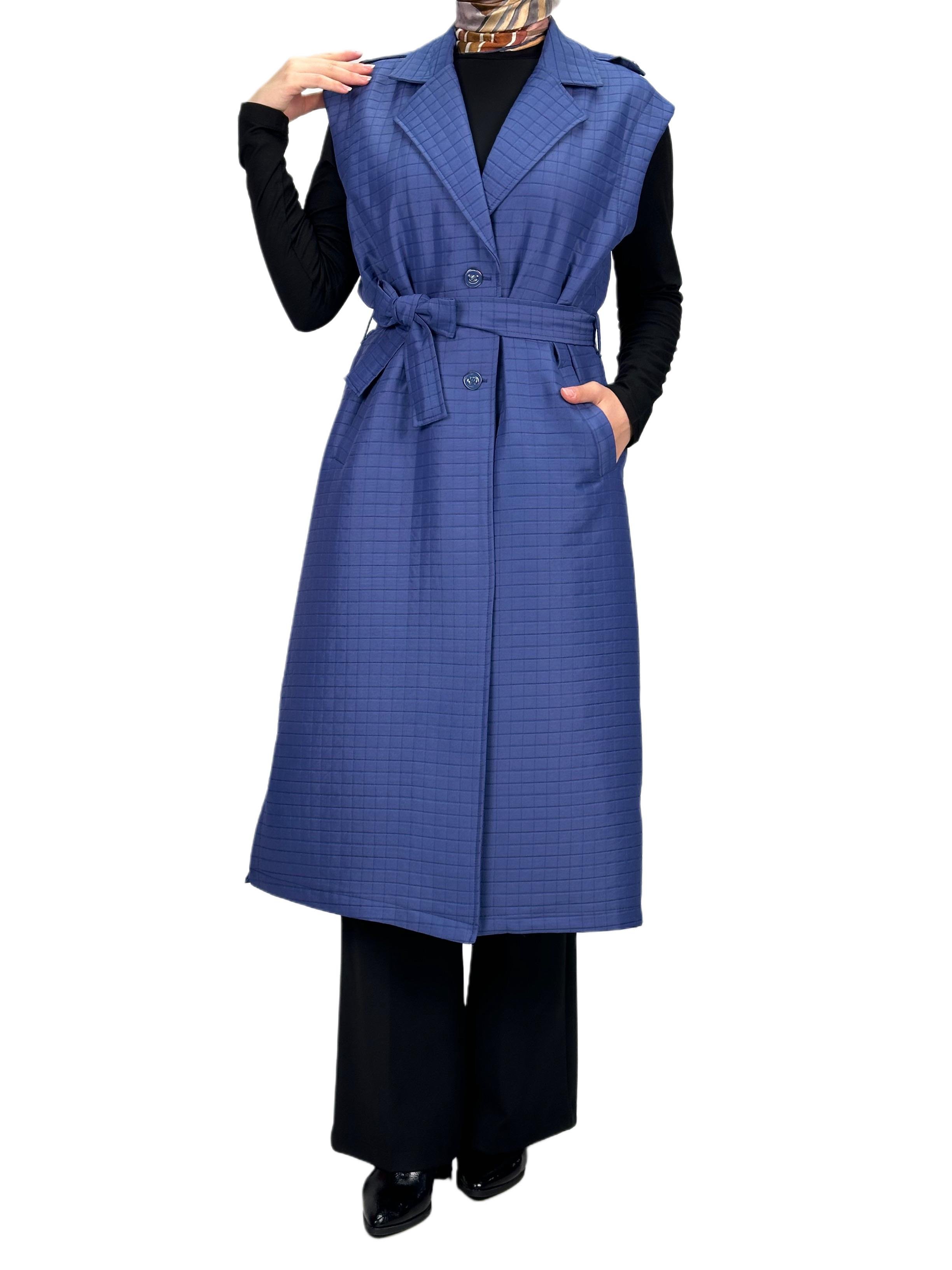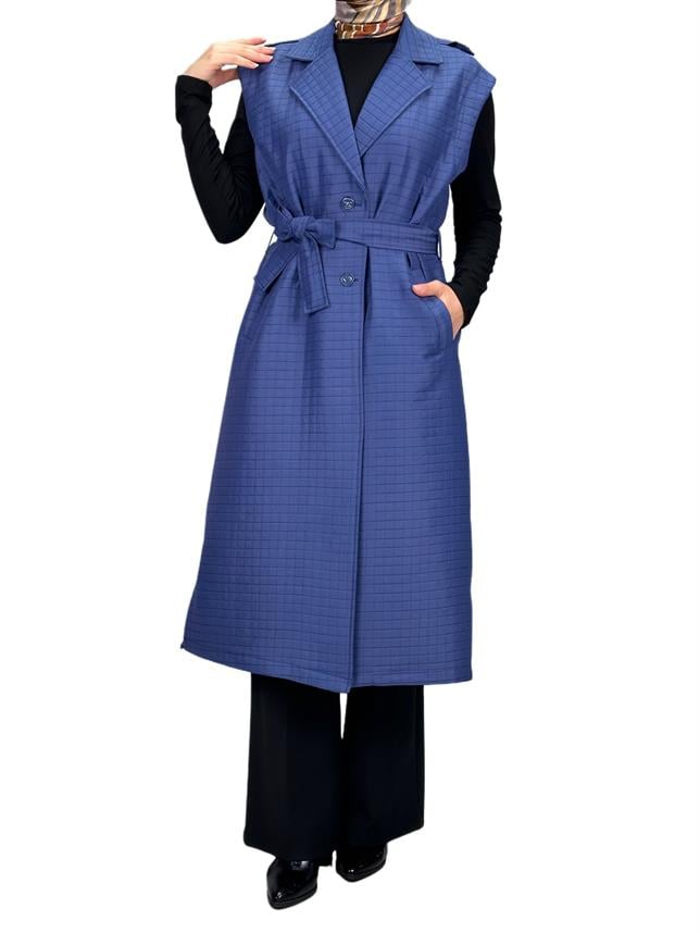 Büyük Beden Kapitone Yelek Mavi OTW4011