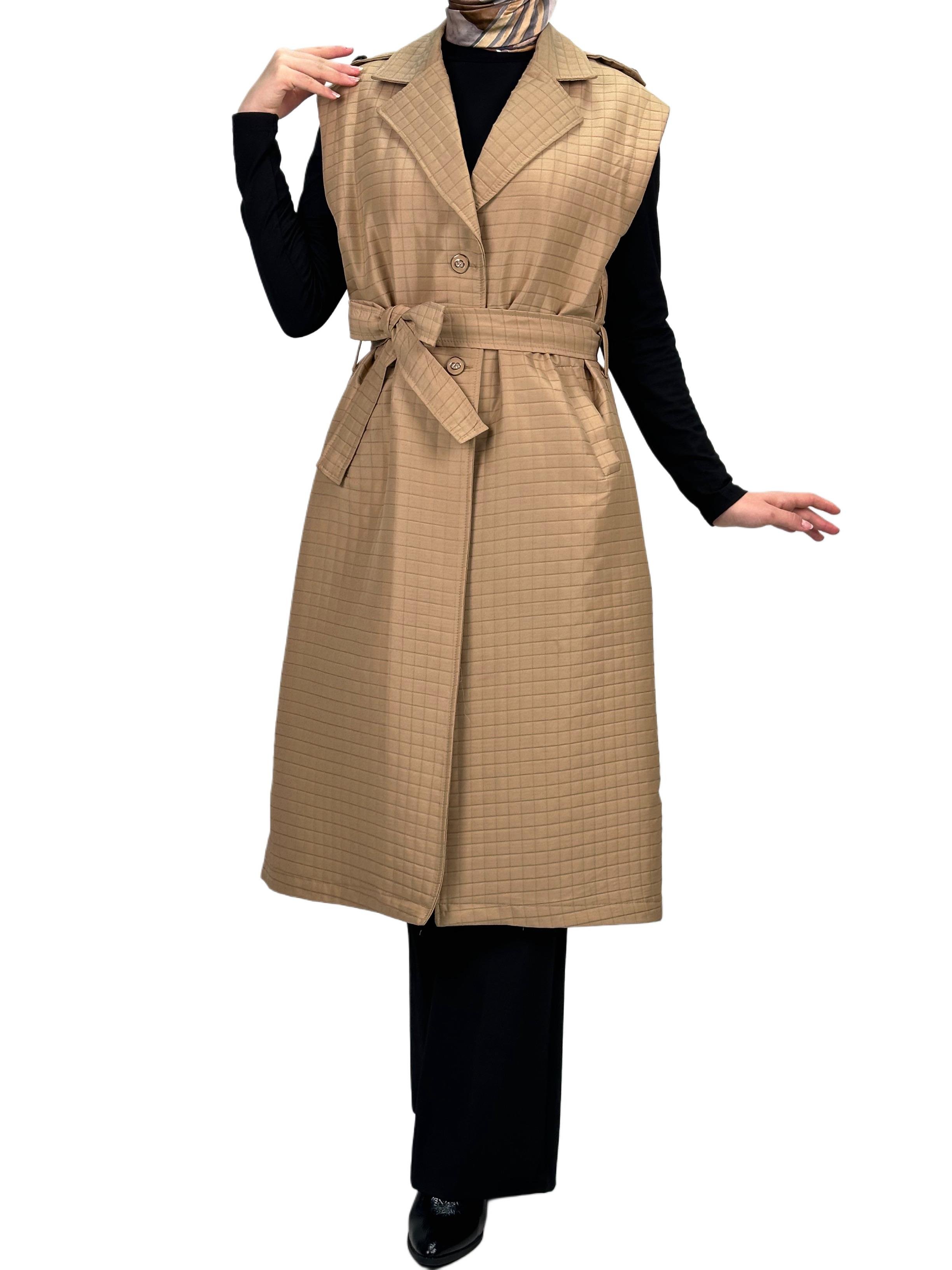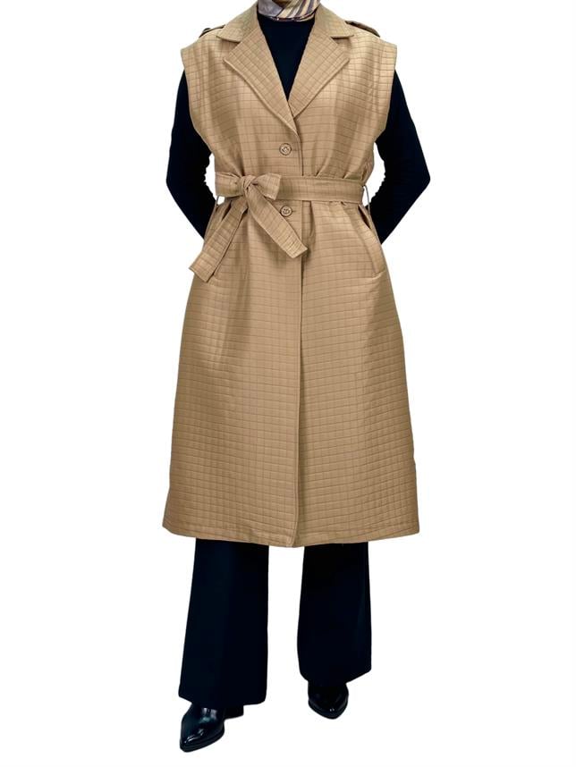 Büyük Beden Kapitone Yelek Vizon OTW4011