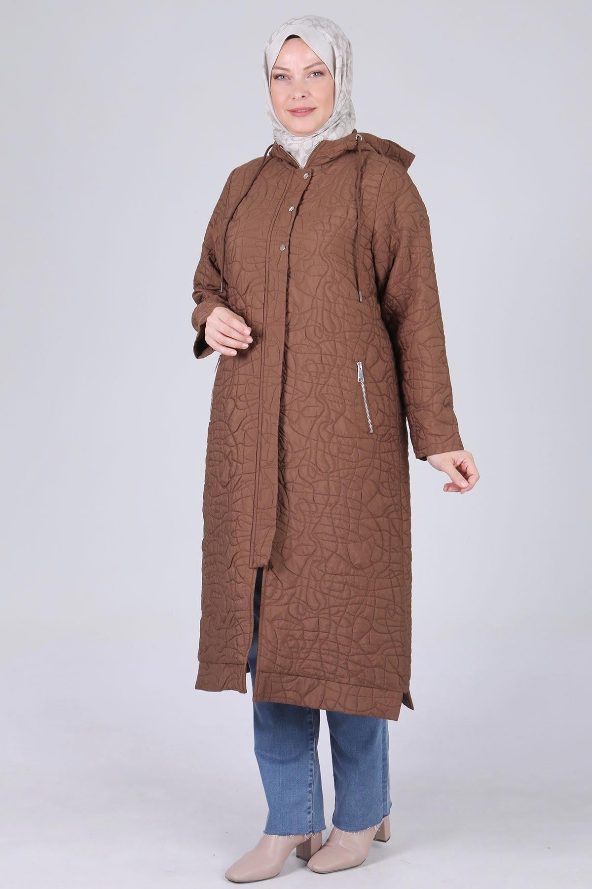 Behrem Büyük Beden Kapüşonlu Kap Kakao OTW25105