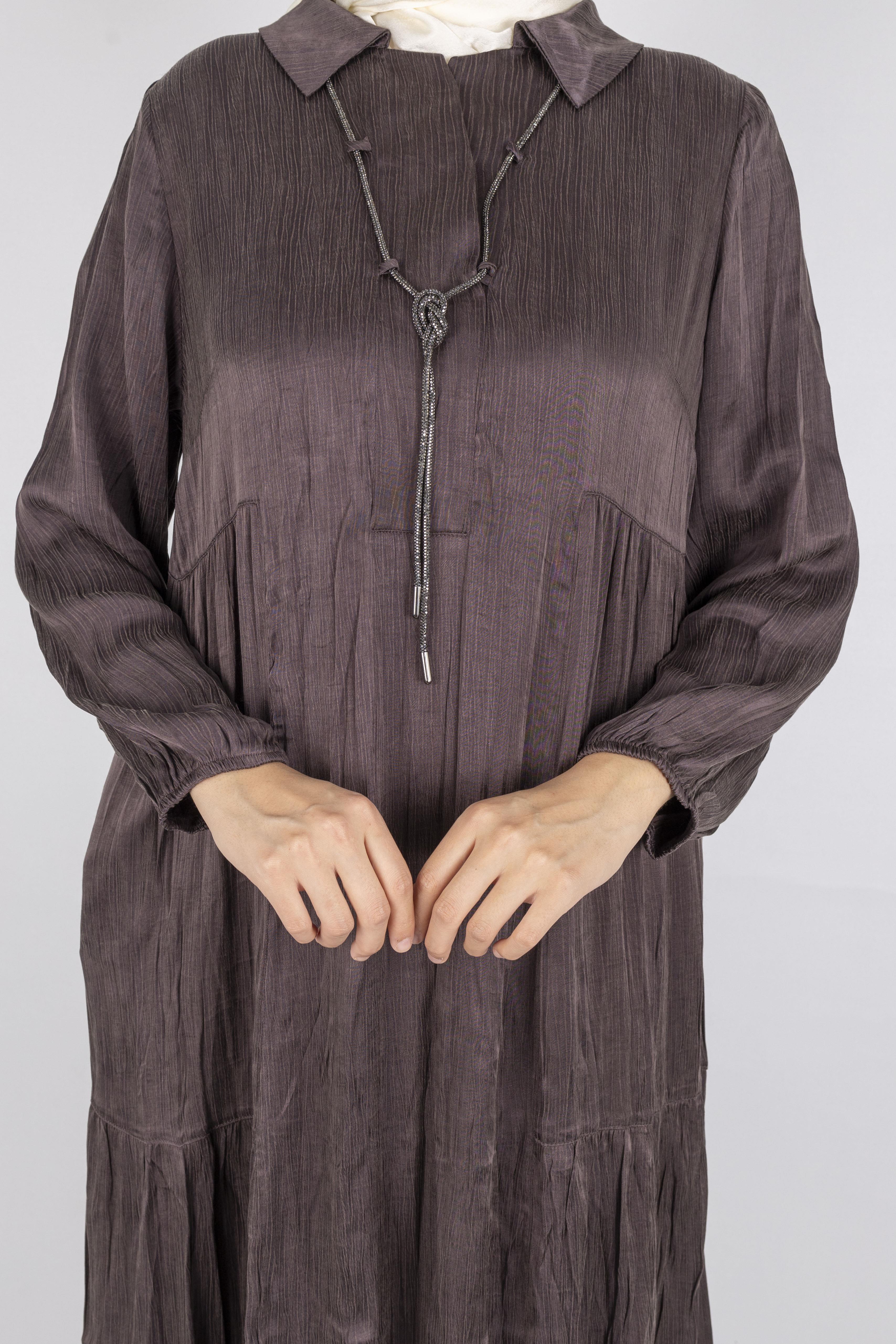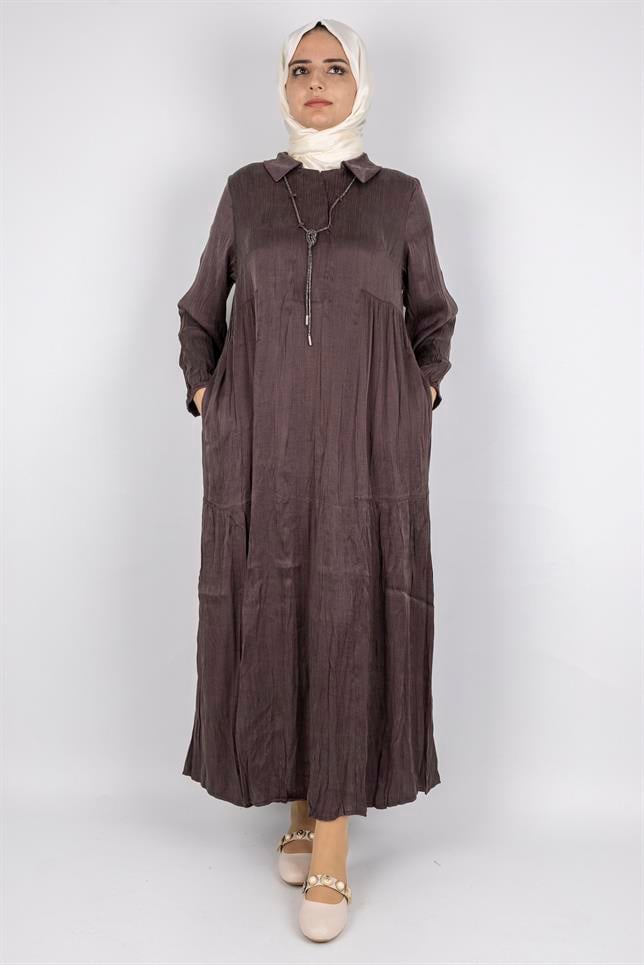 Büyük Beden Kolyeli Qupra Kumaş Elbise Bordo OTW5793 Büyük Beden Kolyeli Qupra Kumaş Elbise Brown OTW5793 Büyük Beden Kolyeli Qupra Kumaş Elbise Siyah OTW5793