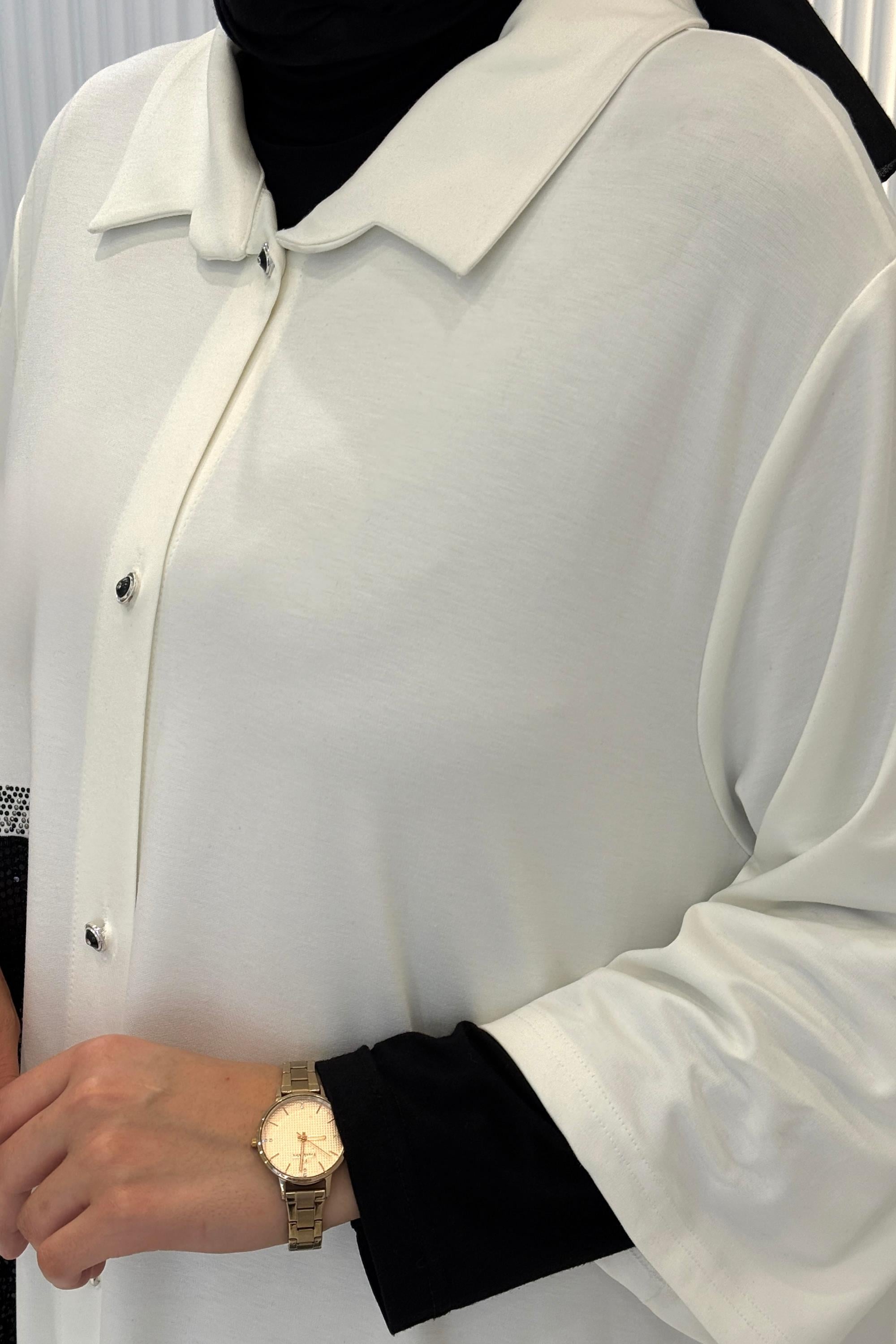Büyük Beden Kontrast Cep Detaylı Gömlek Elbise Siyah OTW5640 Büyük Beden Kontrast Cep Detaylı Gömlek Elbise Ekru OTW5640
