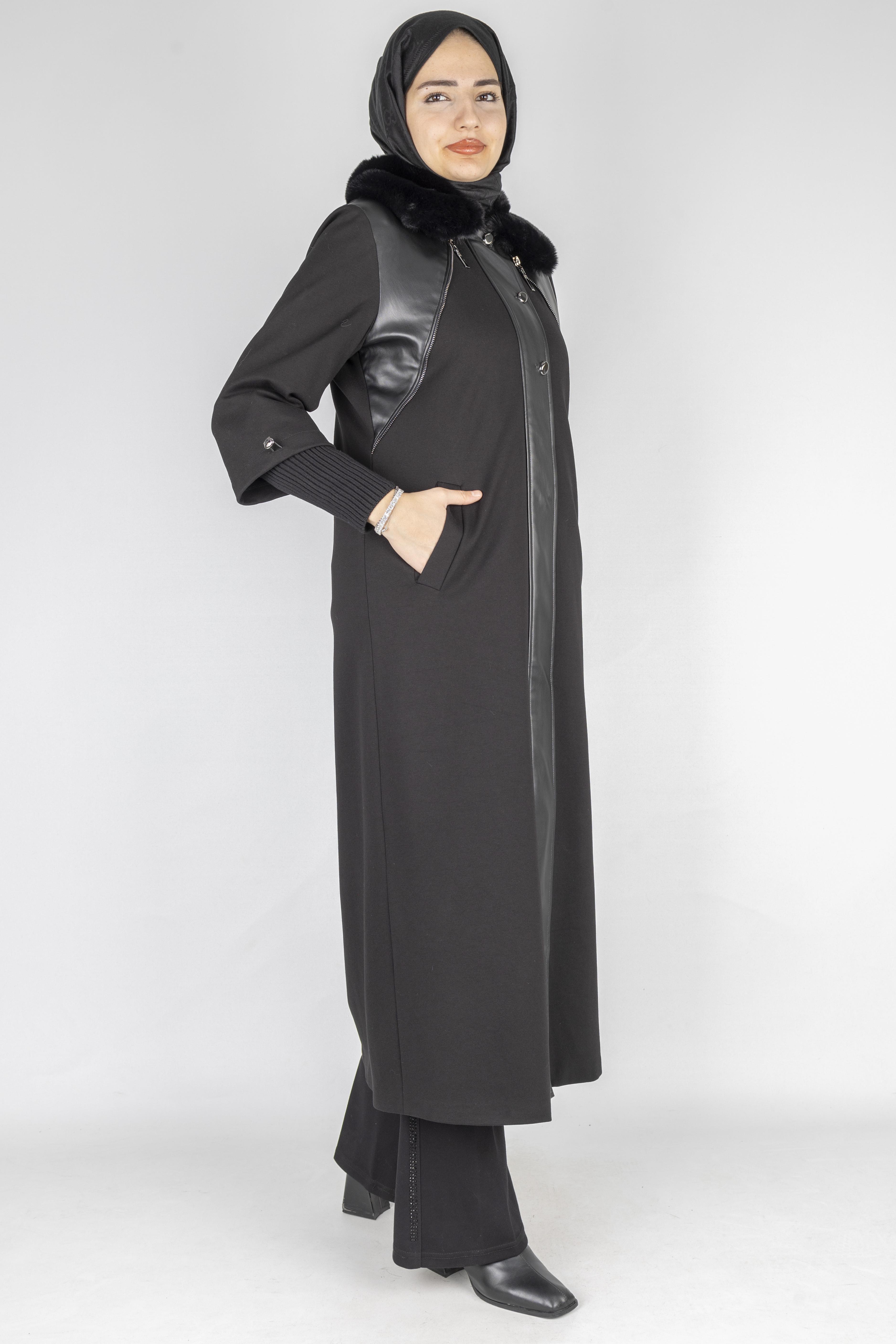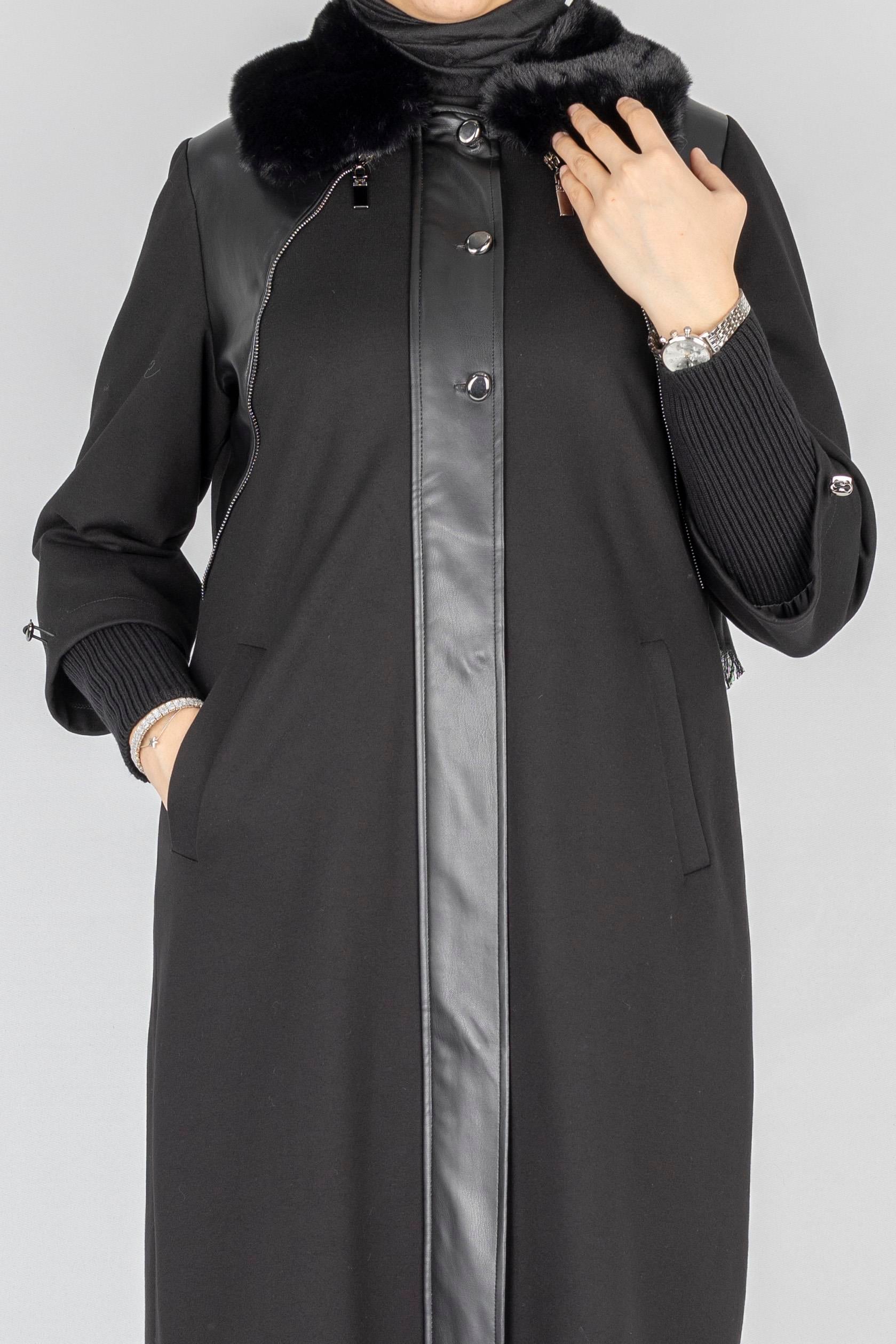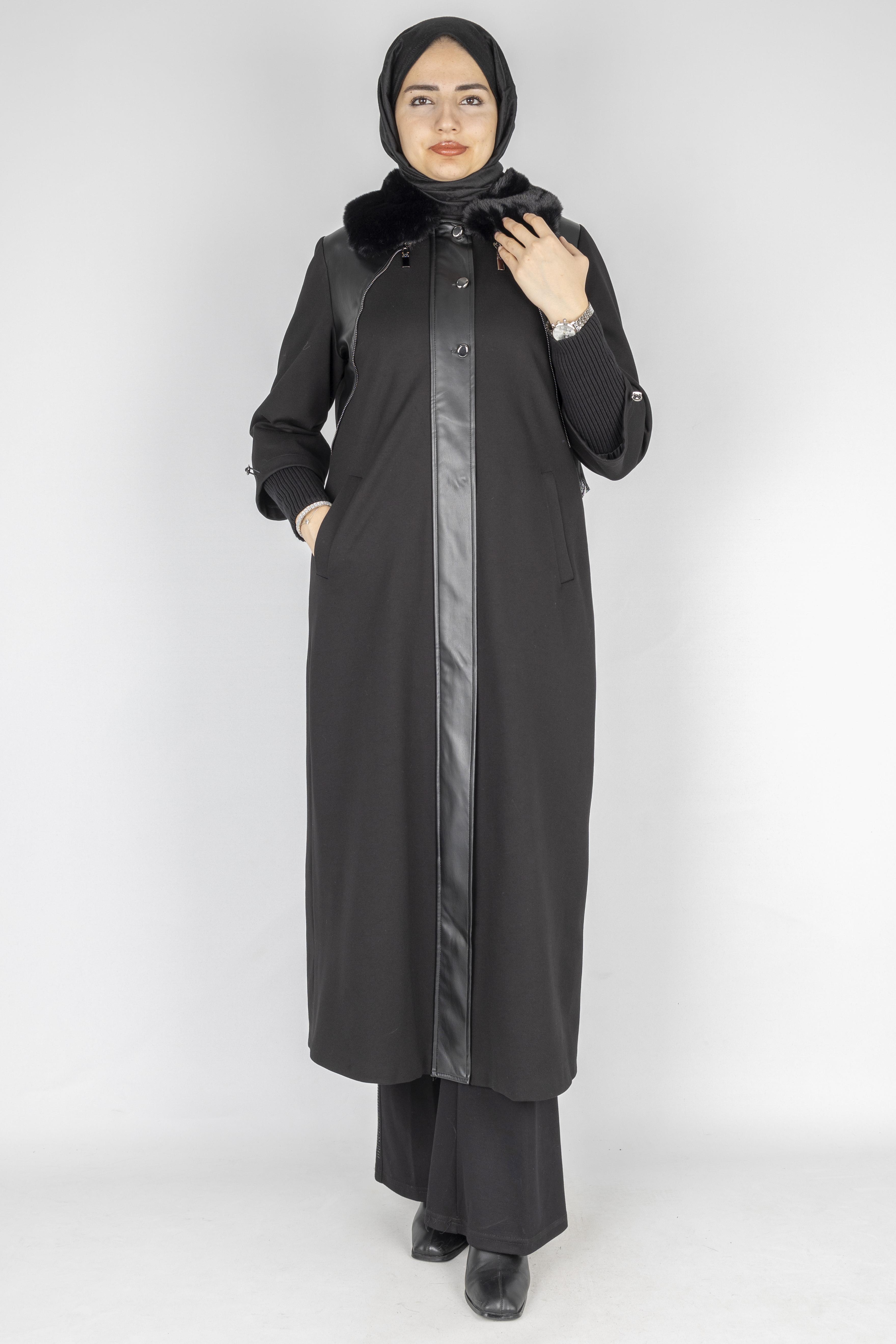 Orhan Store Kürk Yakalı Deri Detay Kap Siyah OTW1597