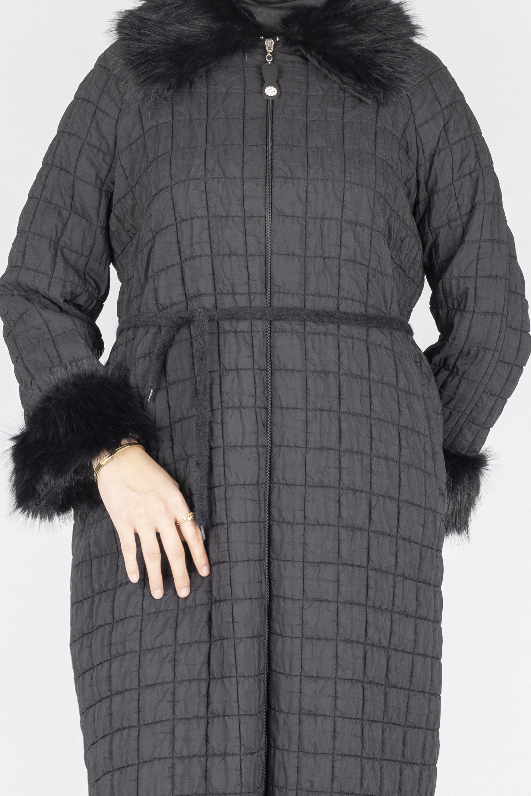 Kürk detaylı kapitone büyük beden kaban, hafif yapısı ve sıcak tutan dokusu ile kış sezonunda hem şıklığı hem konforu bir arada sunar. Fermuarlı tasarımı ve kuşak detayı sayesinde vücuda göre ayarlanabilir formda olup günlük kombinlerden özel gün stiline kadar geniş kullanım alanı sağlar. Kapitone dokusu formunu uzun süre korur ve büyük beden kadınlar için rahat hareket imkânı sunar. 44–54 beden aralığında üretilen bu model, kışlık dış giyimde aranan tüm fonksiyonelliği stil sahibi bir görünümle birleştirir.