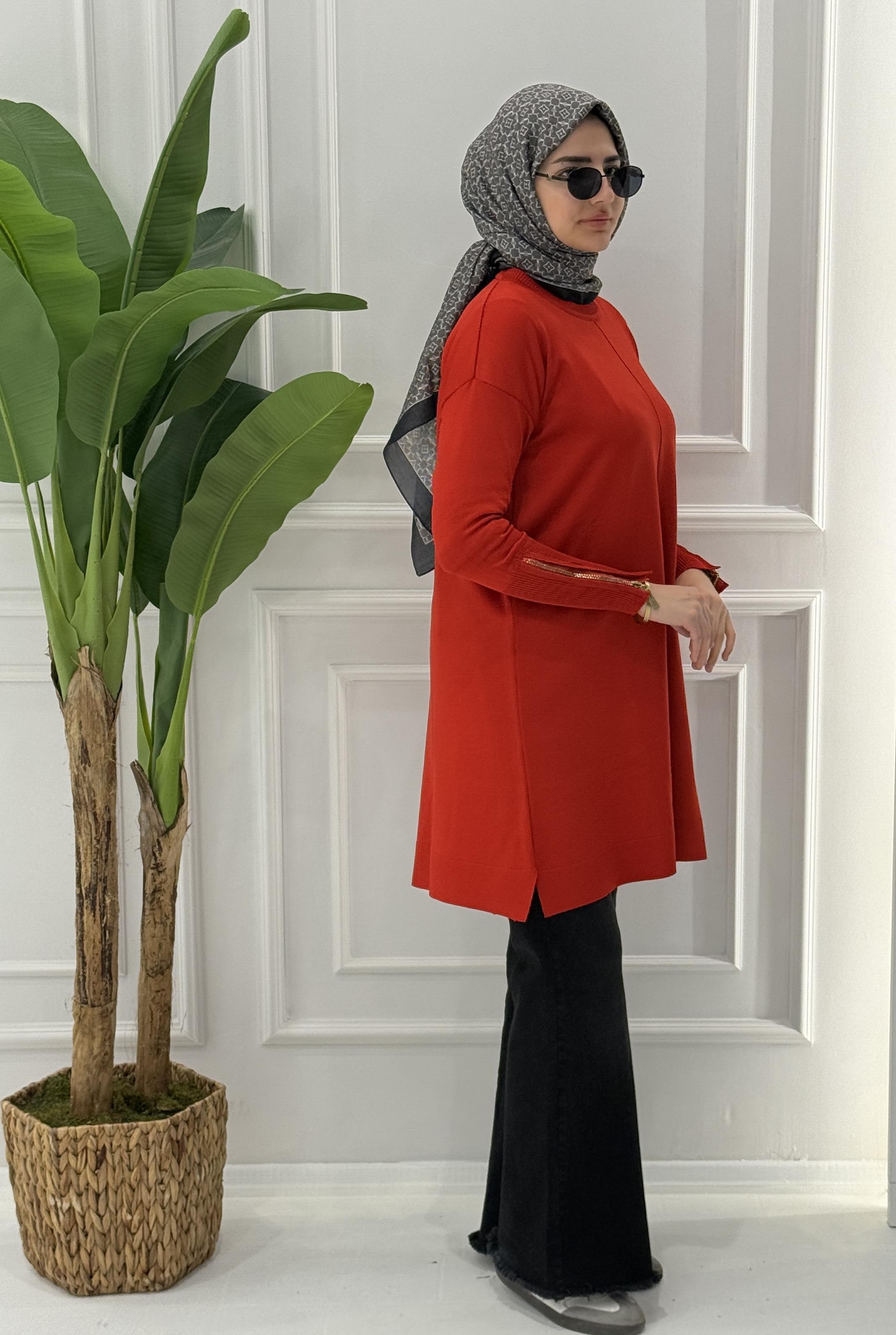 Şıklığı fonksiyonel detaylarla buluşturan büyük beden kolu fermuar detaylı merserize tunik, rahat kalıbı ve modern duruşuyla günlük kombinlerin vazgeçilmez parçasıdır.