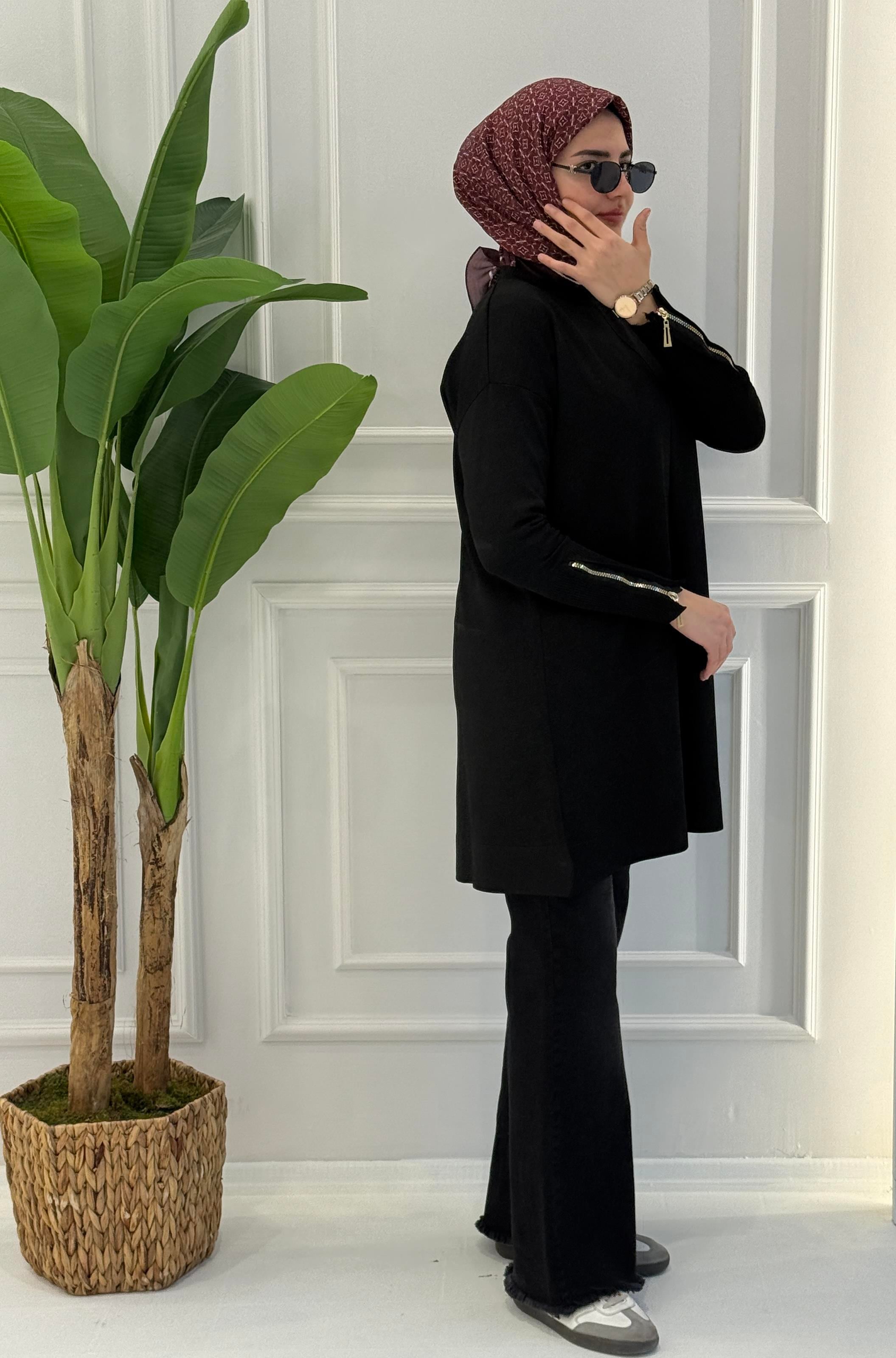 Şıklığı fonksiyonel detaylarla buluşturan büyük beden kolu fermuar detaylı merserize tunik, rahat kalıbı ve modern duruşuyla günlük kombinlerin vazgeçilmez parçasıdır.