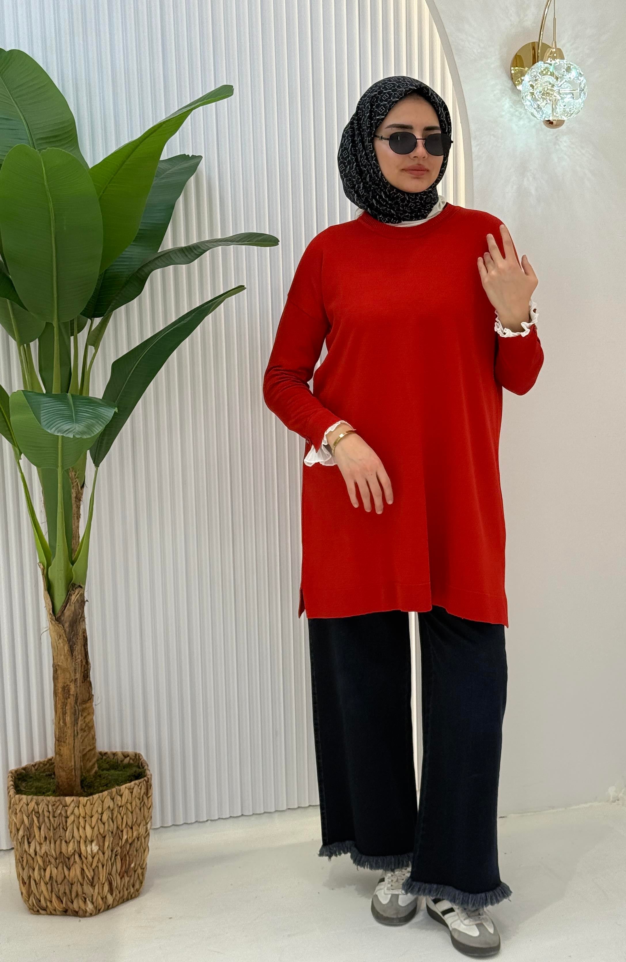 Büyük Beden Merserize Piliseli Kol Tunik Gri OTW1041 Büyük Beden Merserize Piliseli Kol Tunik Bordo OTW1041 Büyük Beden Merserize Piliseli Kol Tunik Mercan OTW1041