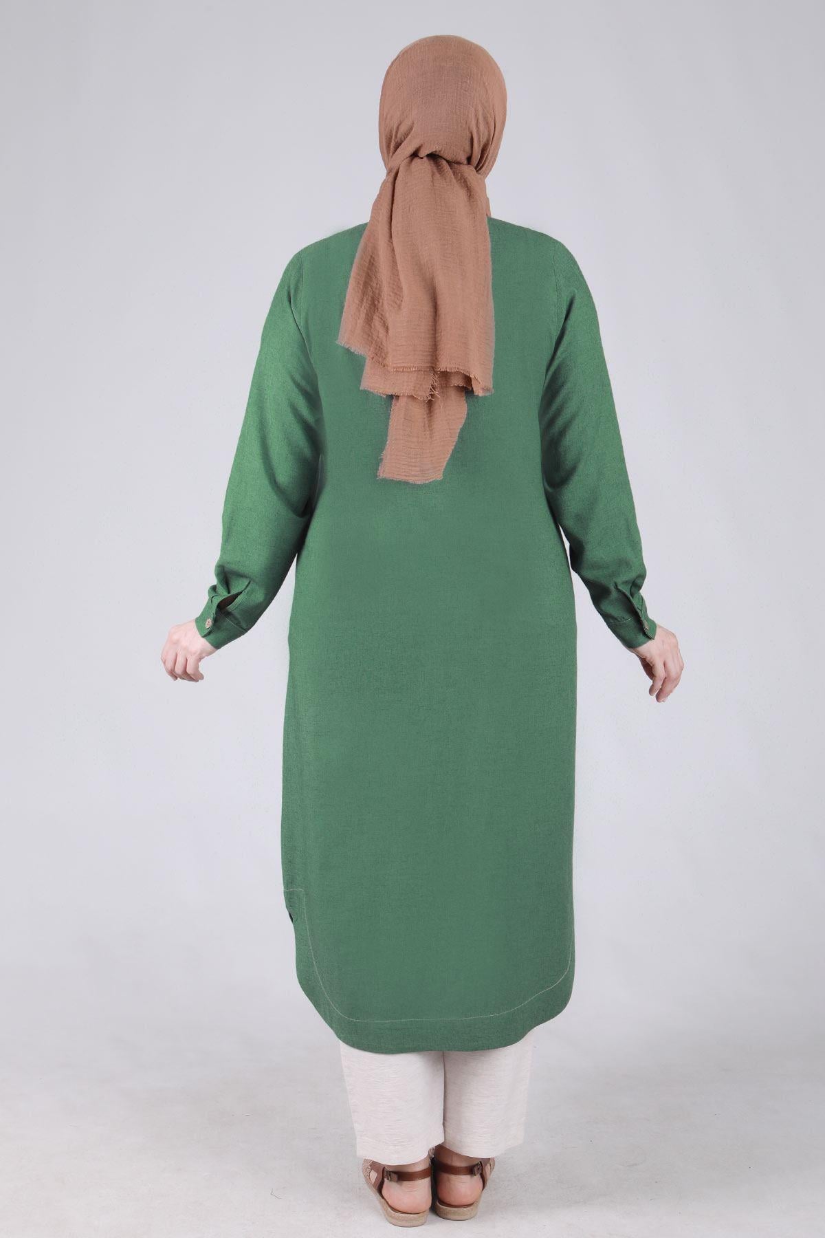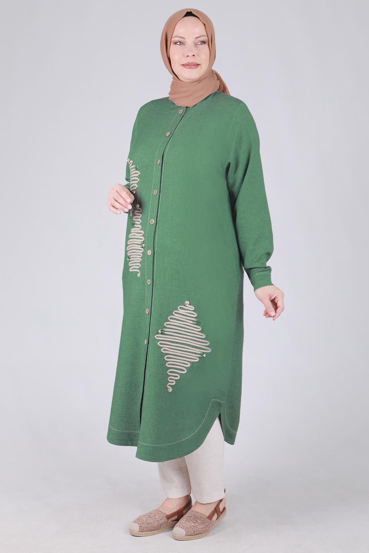 Behrem Büyük Beden Nakış İşlemeli Kap Yeşil OTW25096