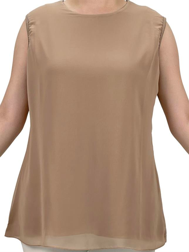 Büyük Beden Önü Şifon Kolsuz İçlik Bej OTW869