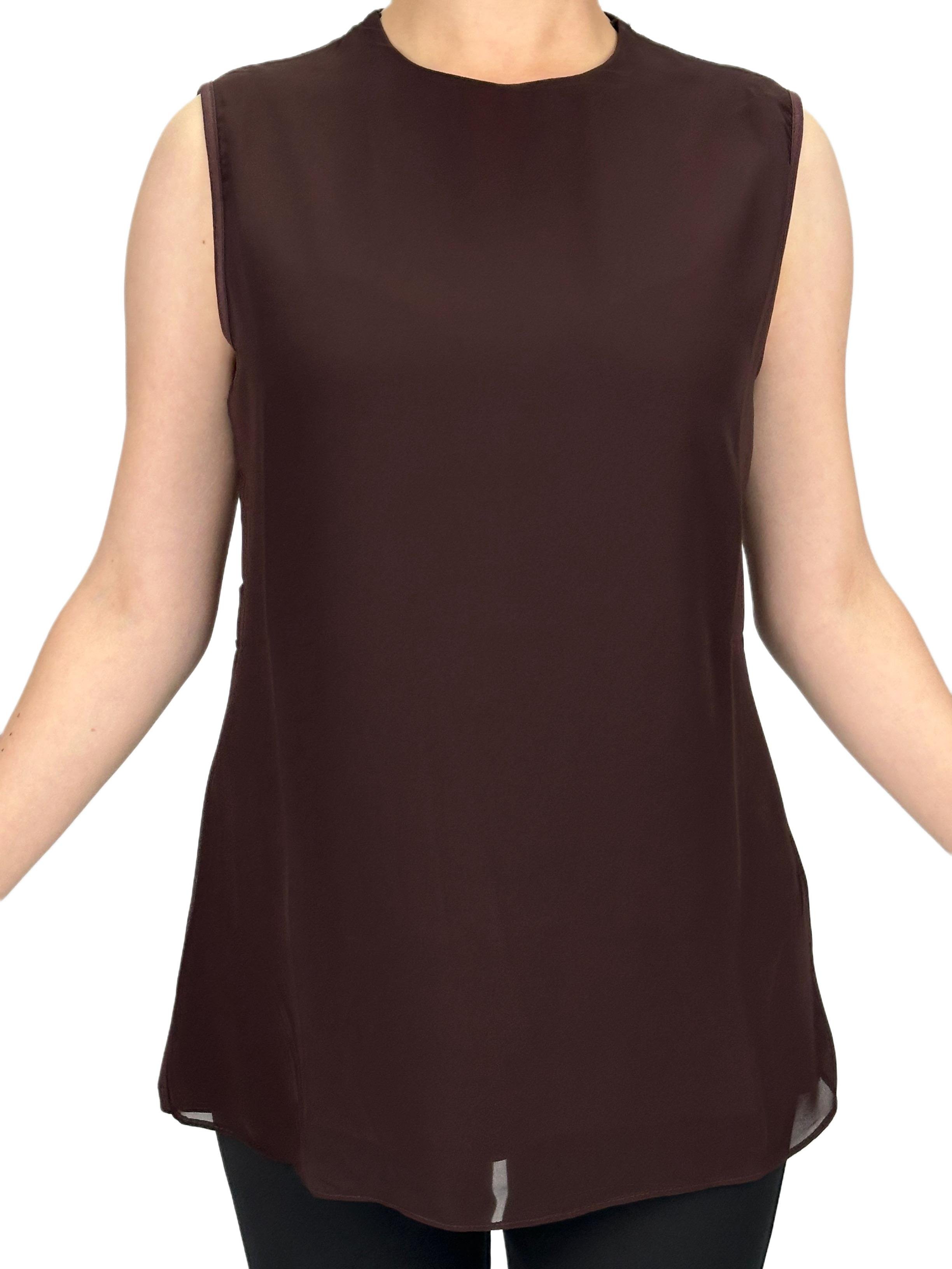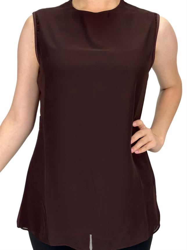 Büyük Beden Önü Şifon Kolsuz İçlik Kahve OTW869