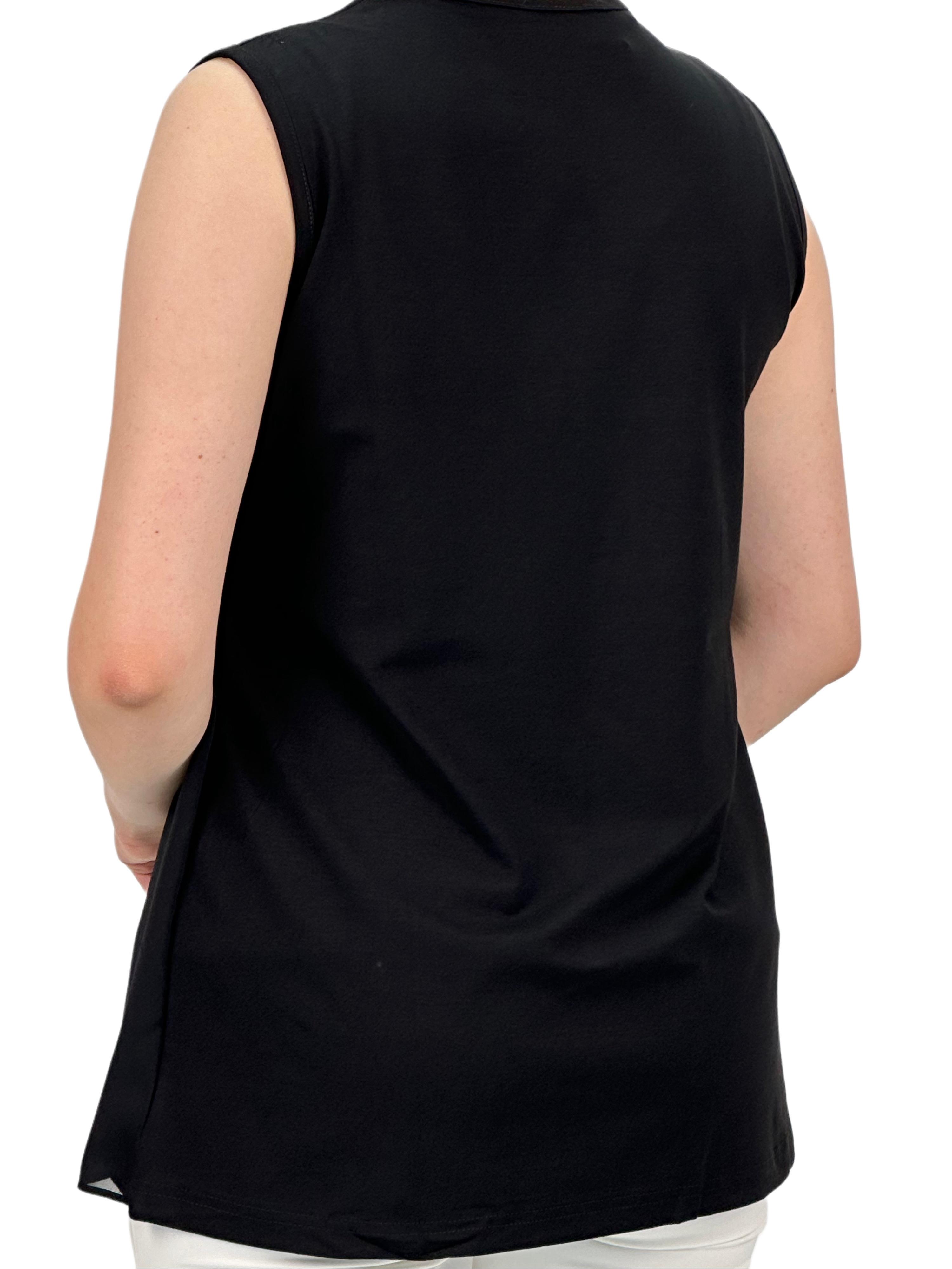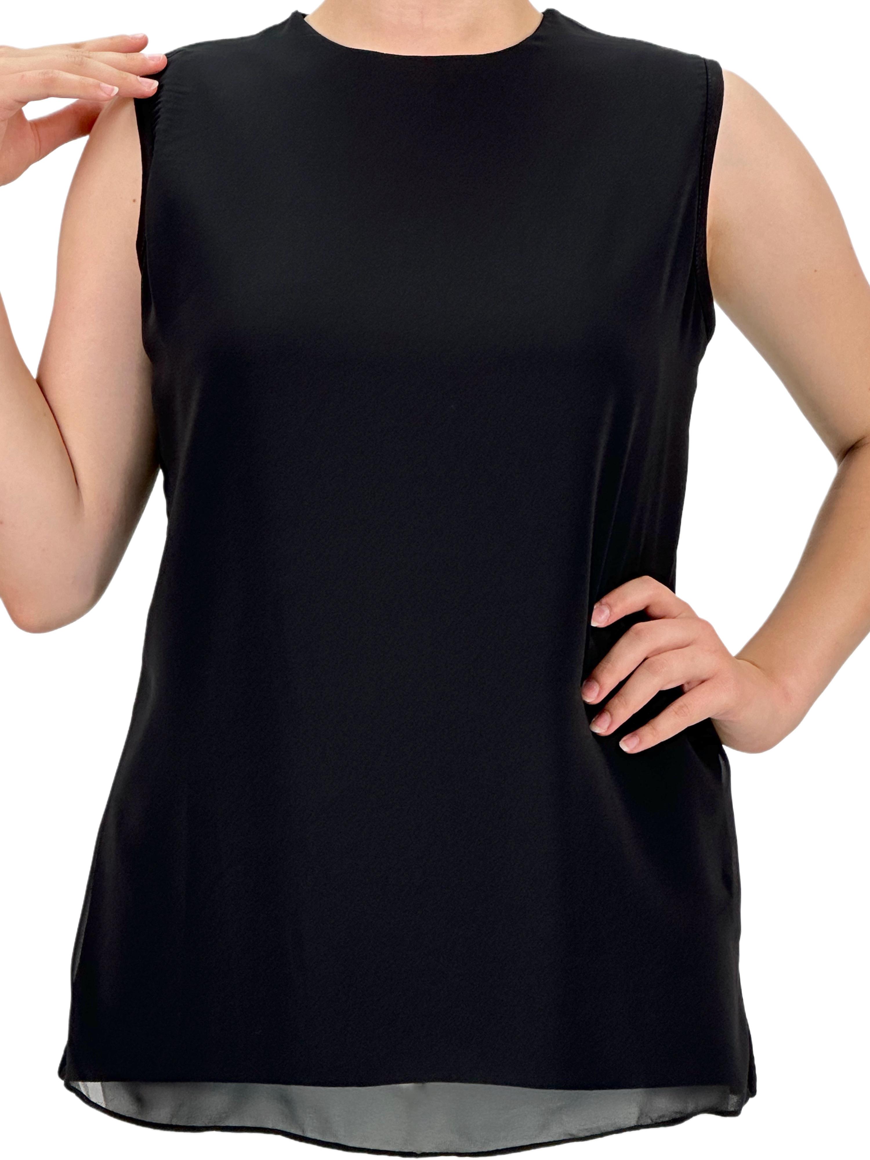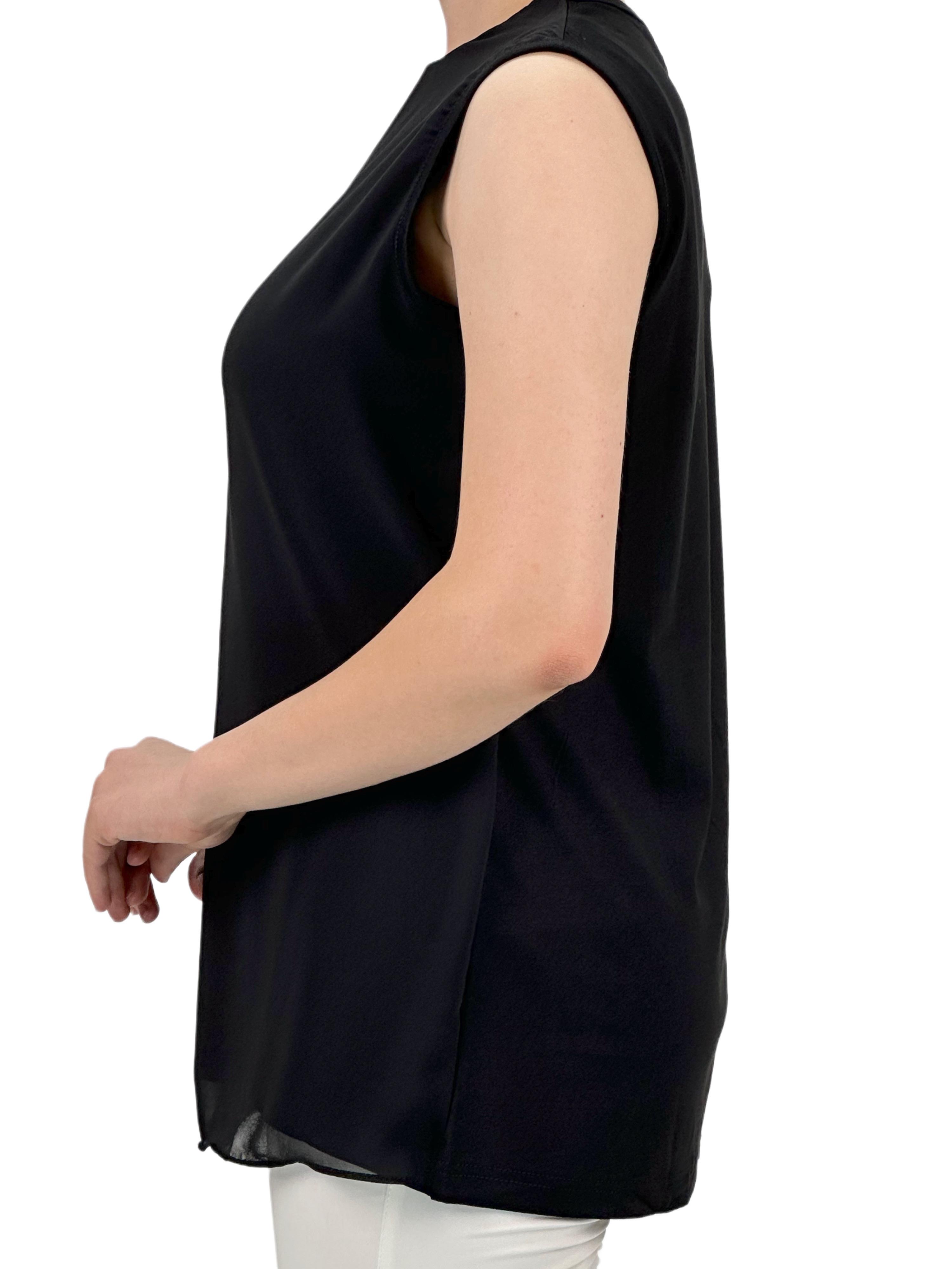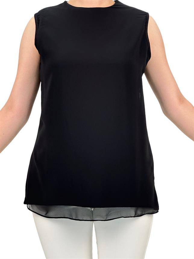 Büyük Beden Önü Şifon Kolsuz İçlik Siyah OTW869