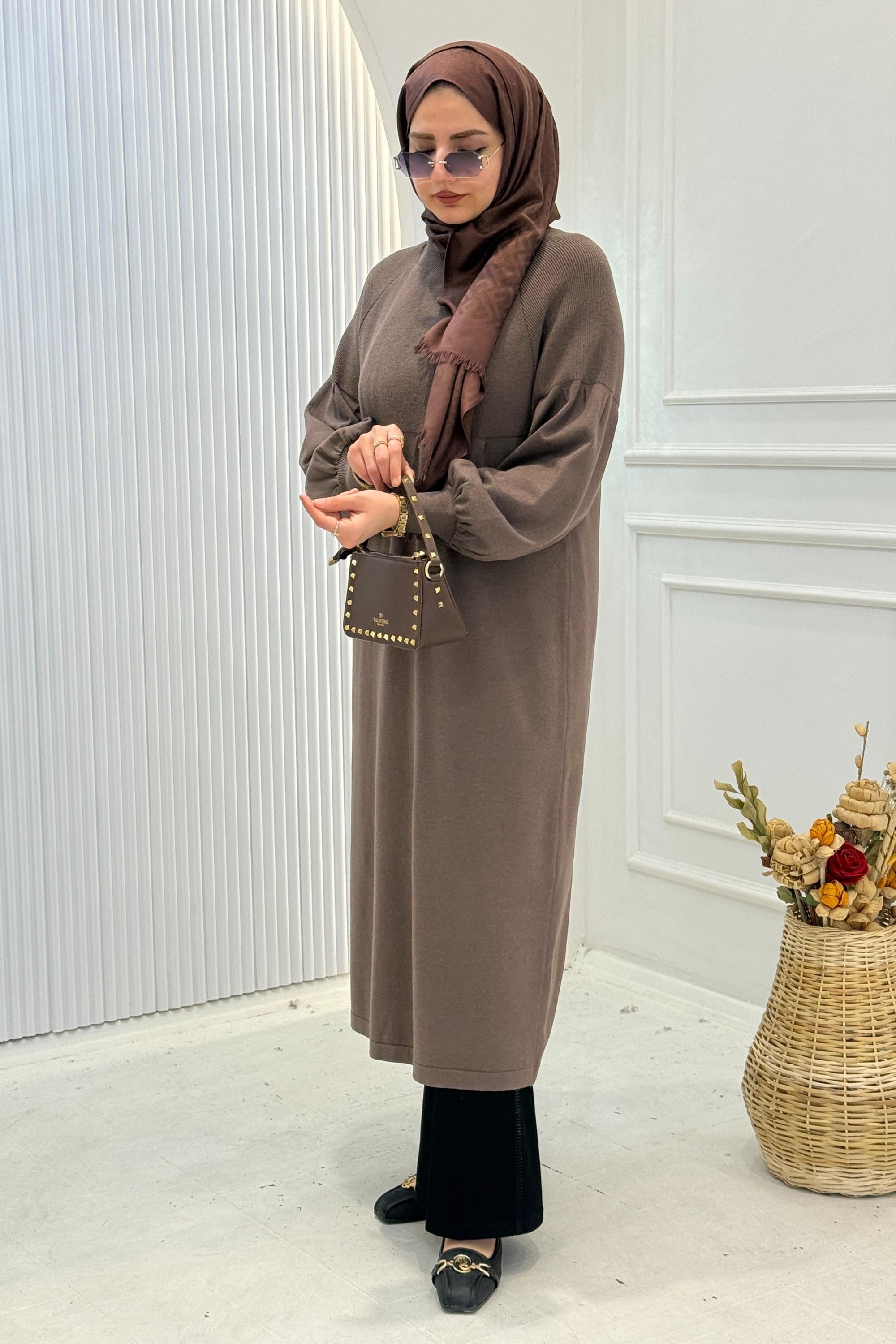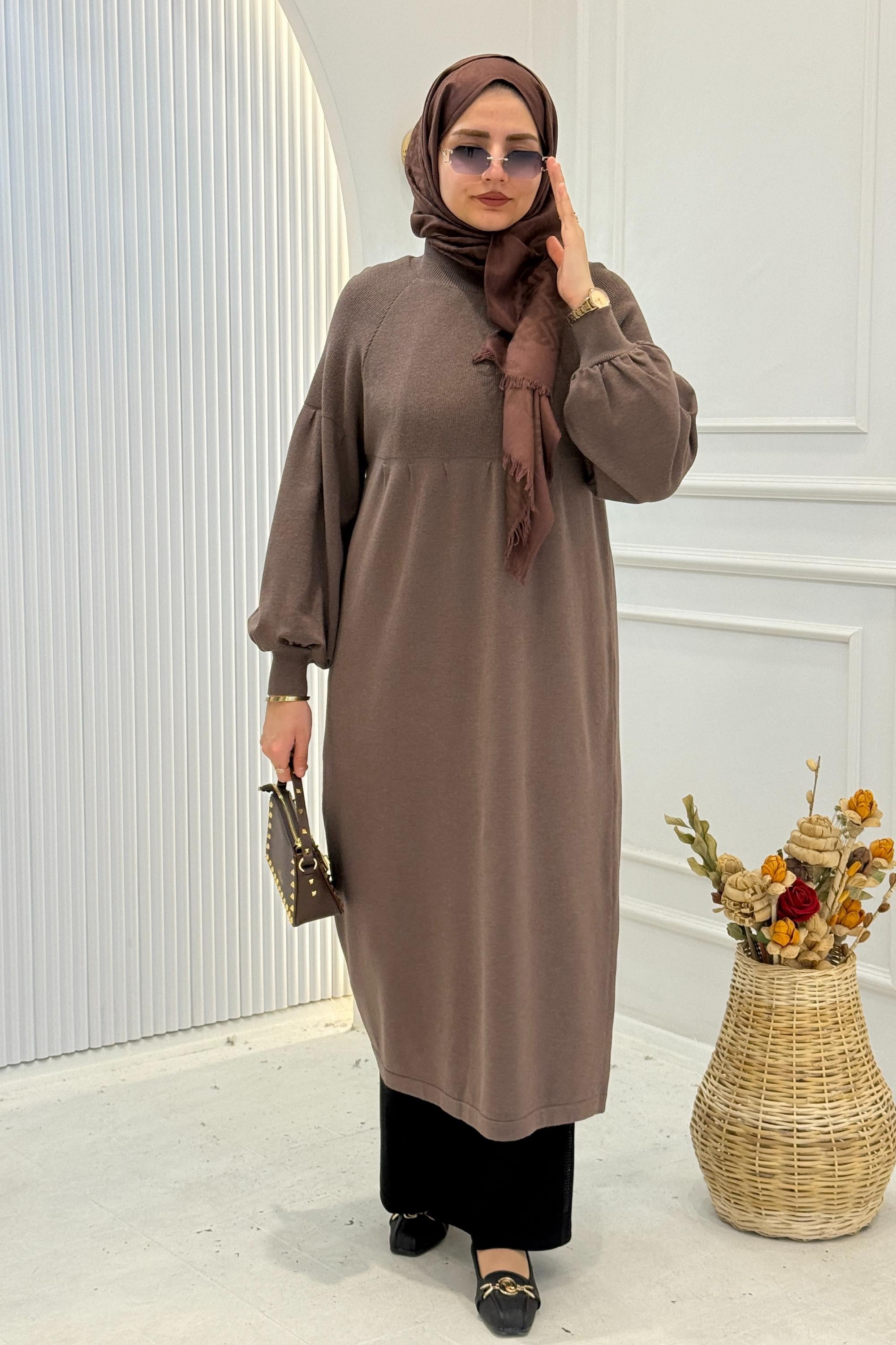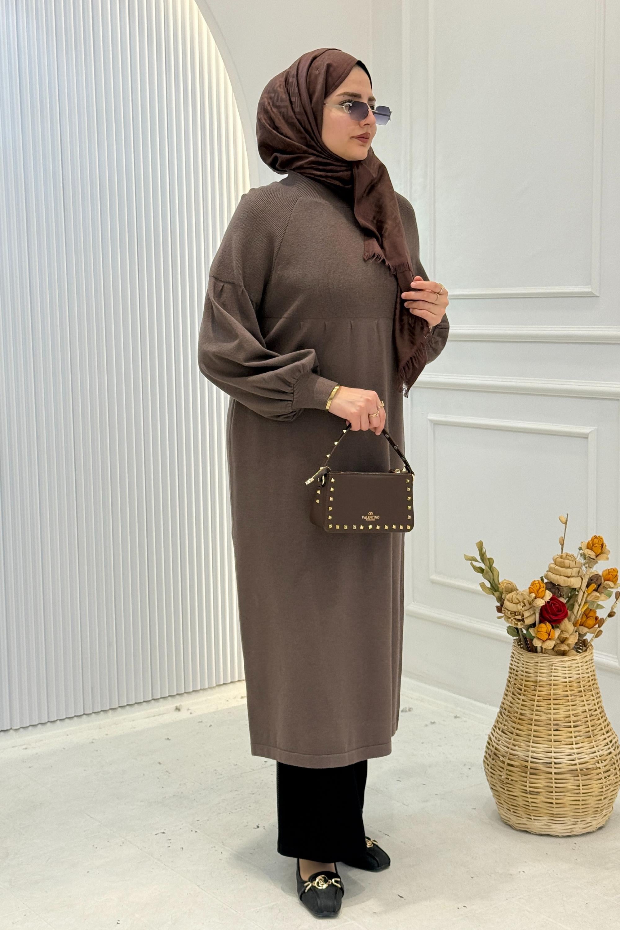Örme triko kumaştan üretilmiş bu model, hem elbise hem tunik olarak kullanıma uygundur.